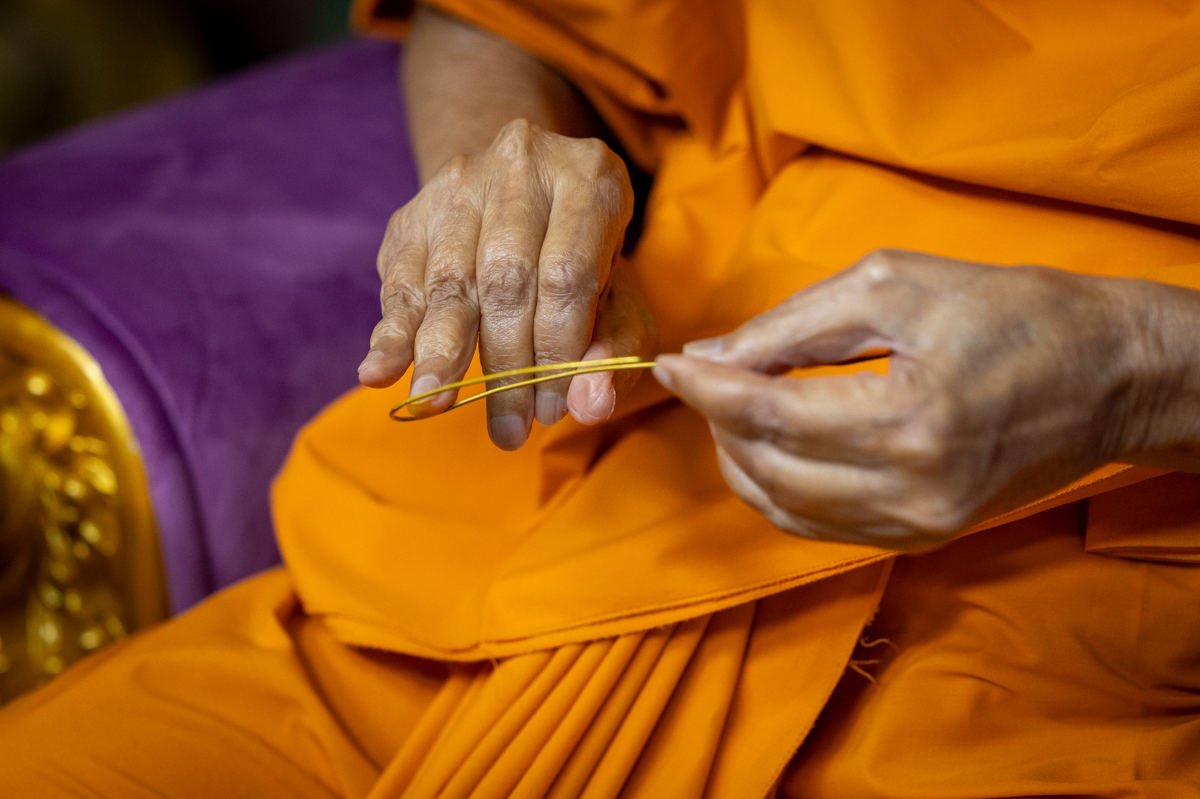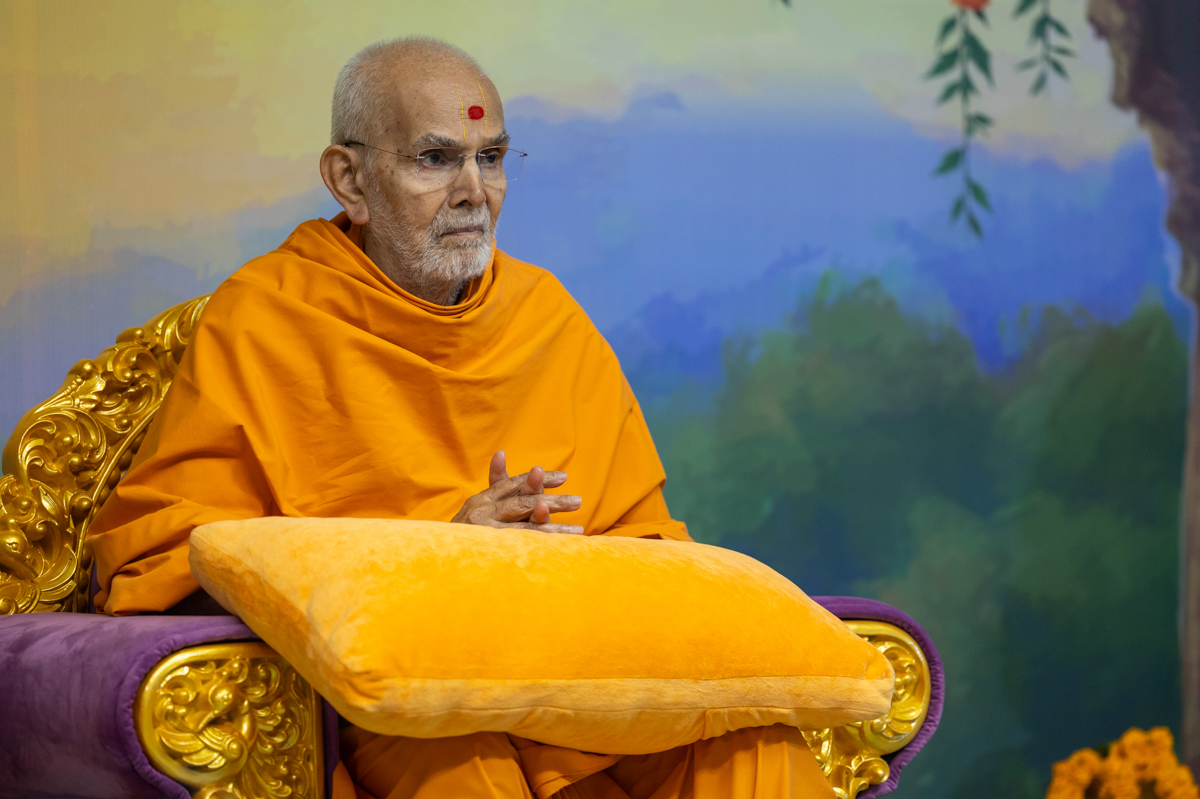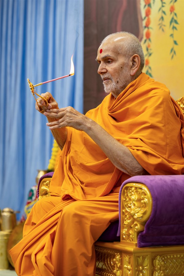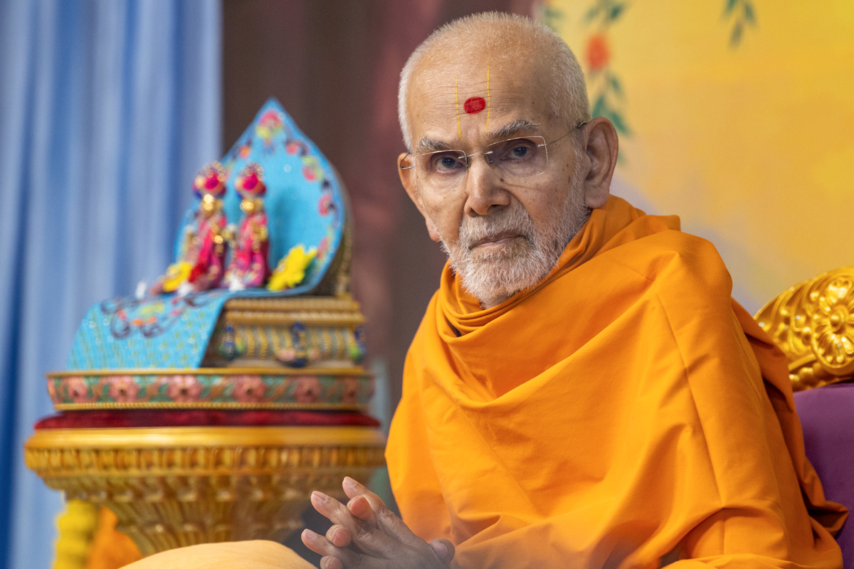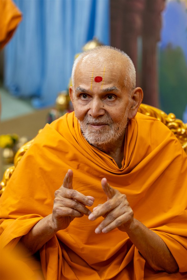Param Pujya Mahant Swami Maharaj applies a tilak on his forehead