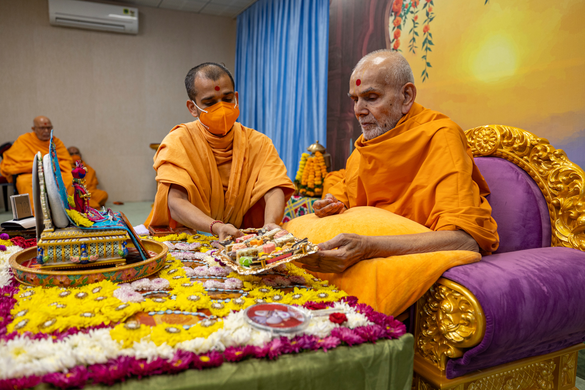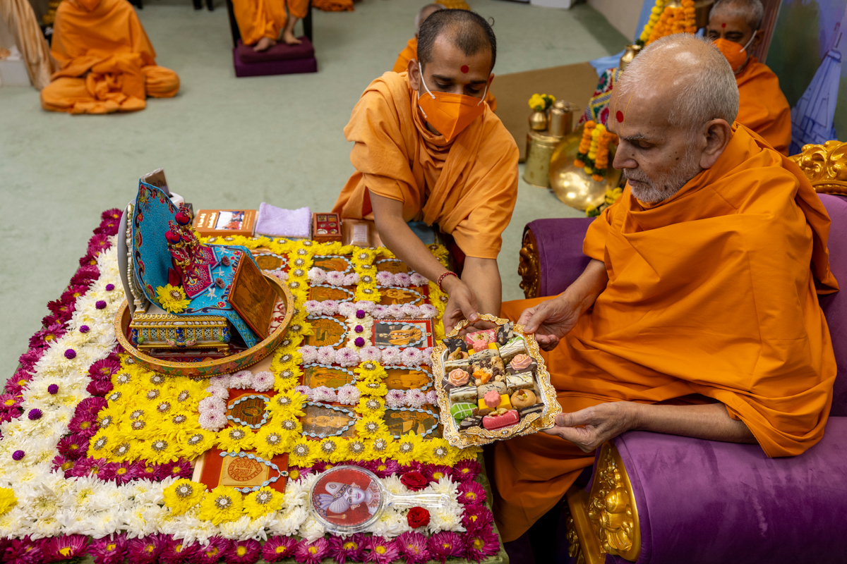 Thal is offered to Shri Harikrishna Maharaj and Shri Gunatitanand Swami Maharaj