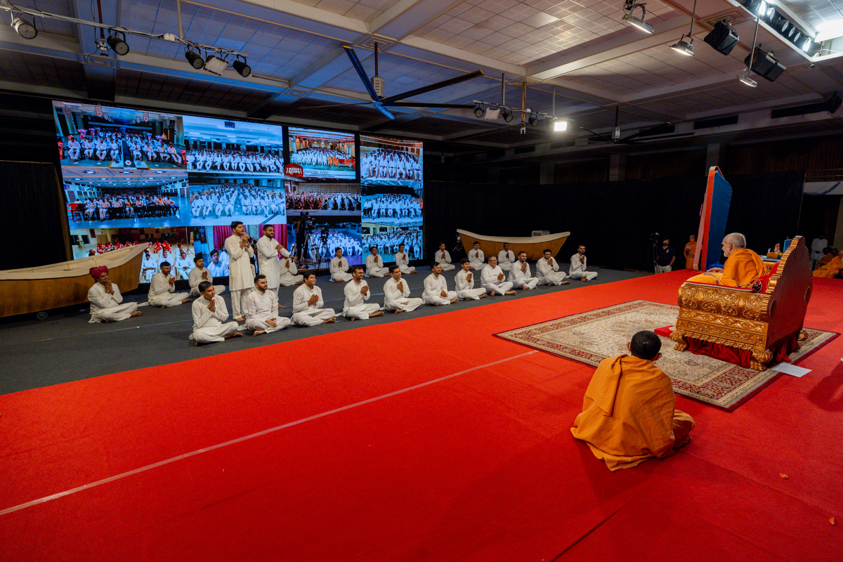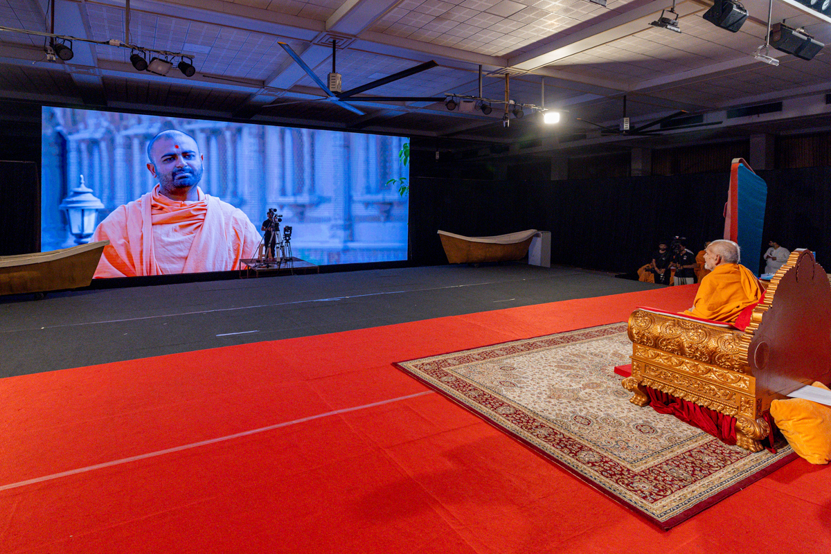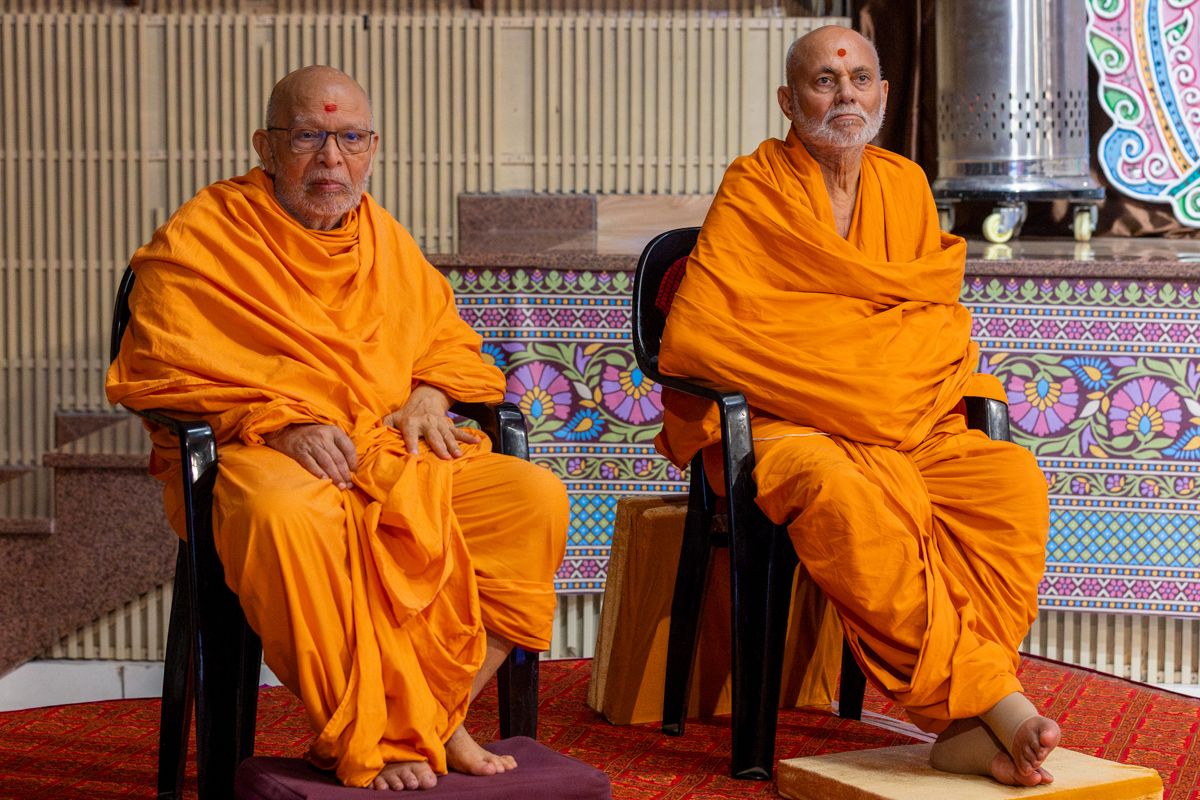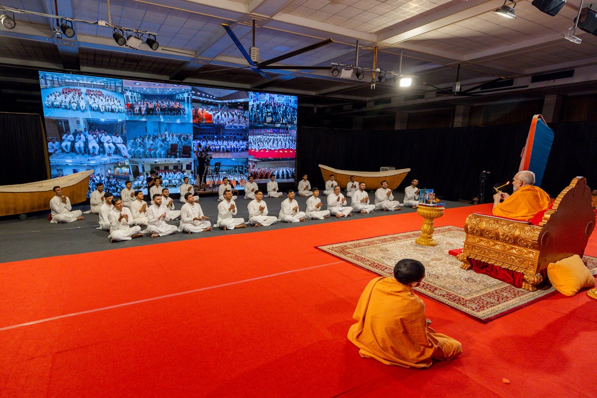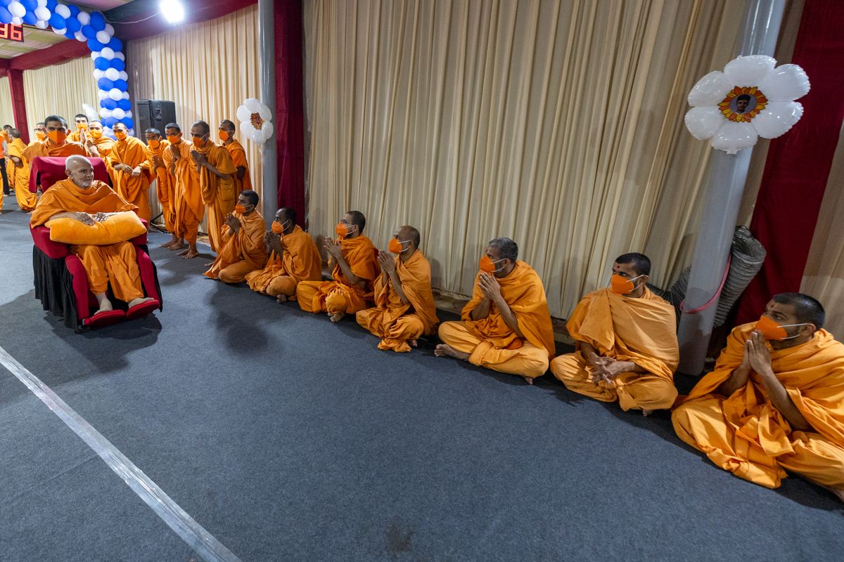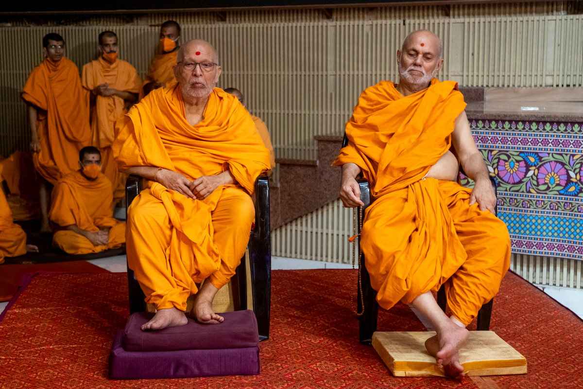 Swamis doing darshan of Param Pujya Mahant Swami Maharaj