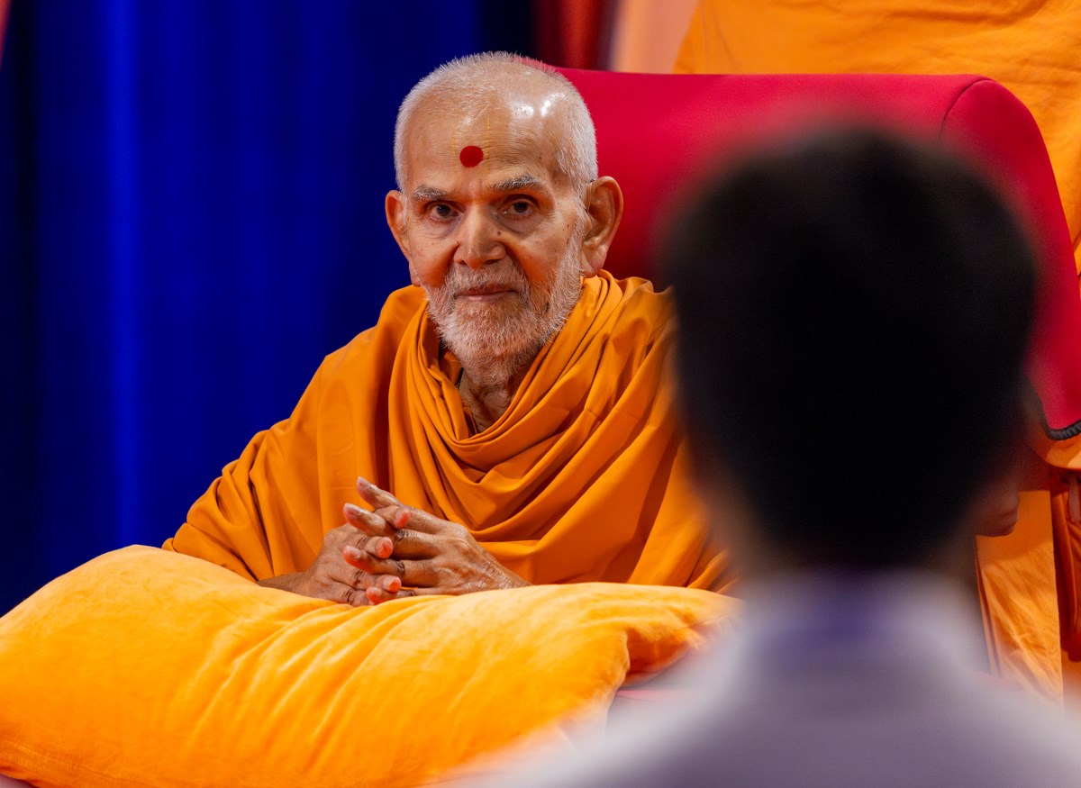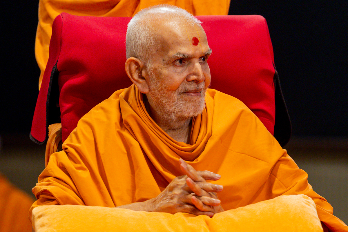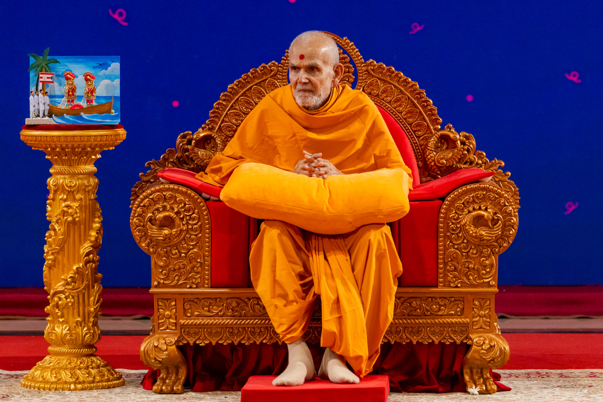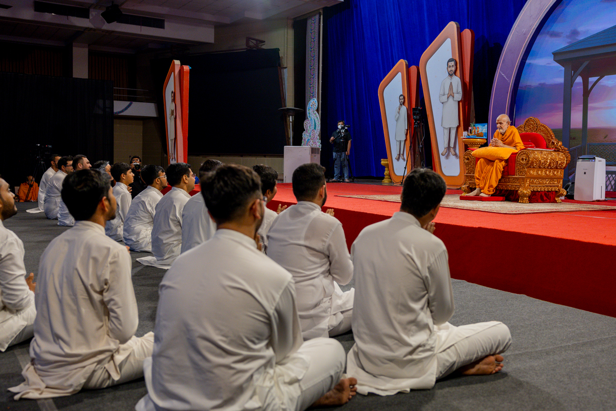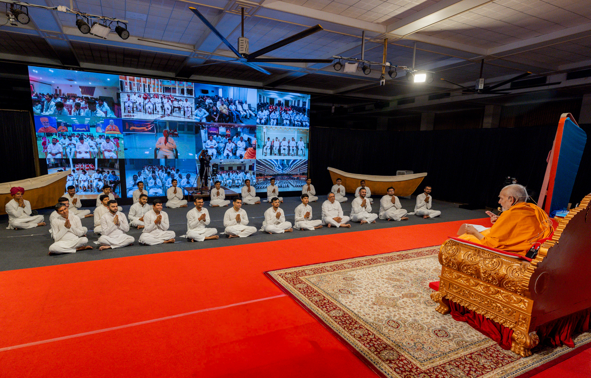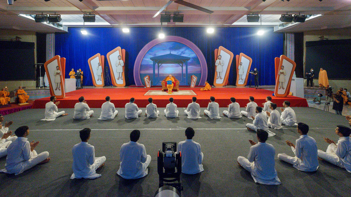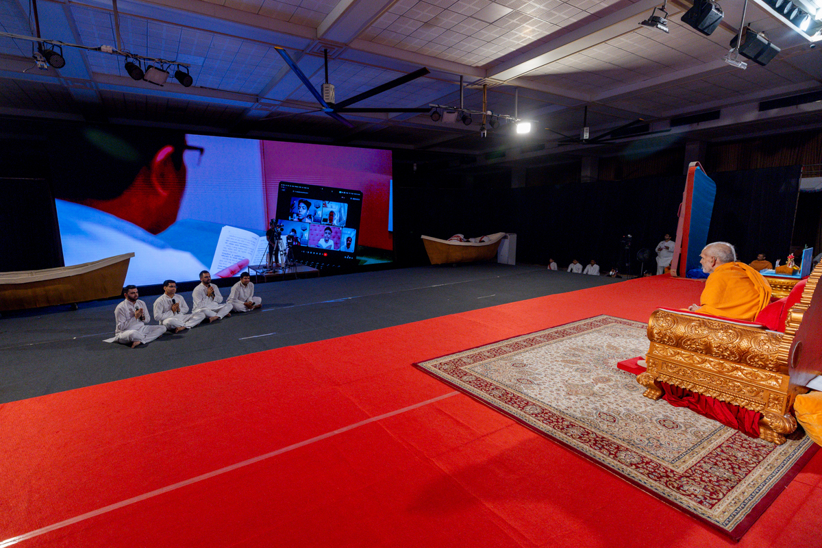Swamis doing darshan of Param Pujya Mahant Swami Maharaj
