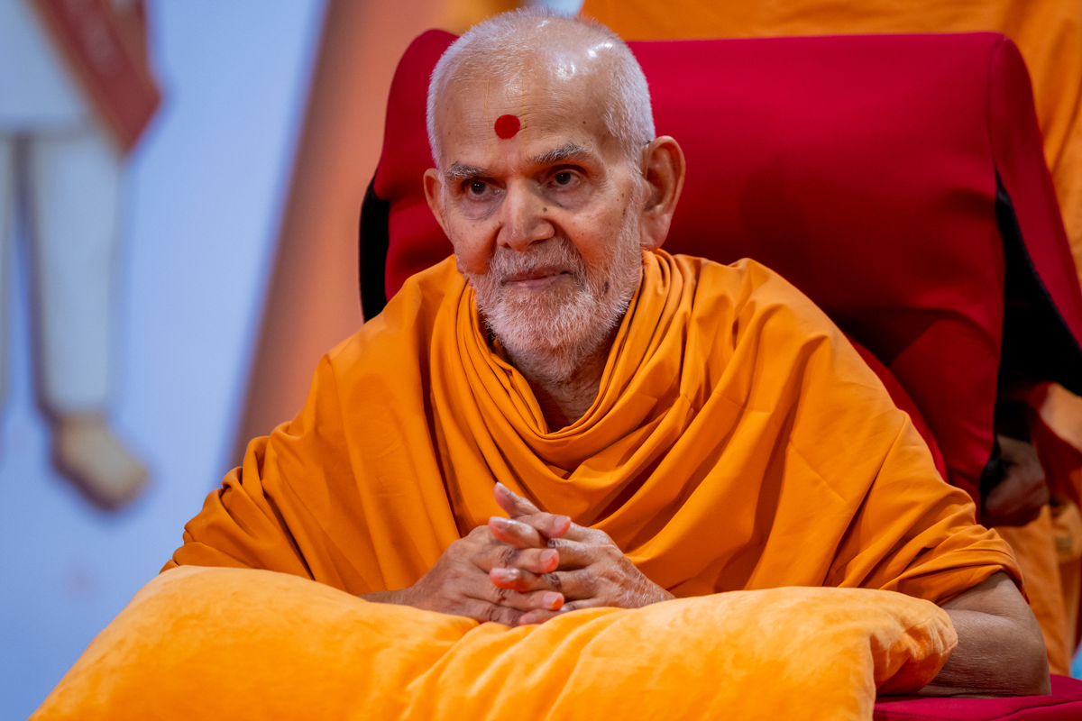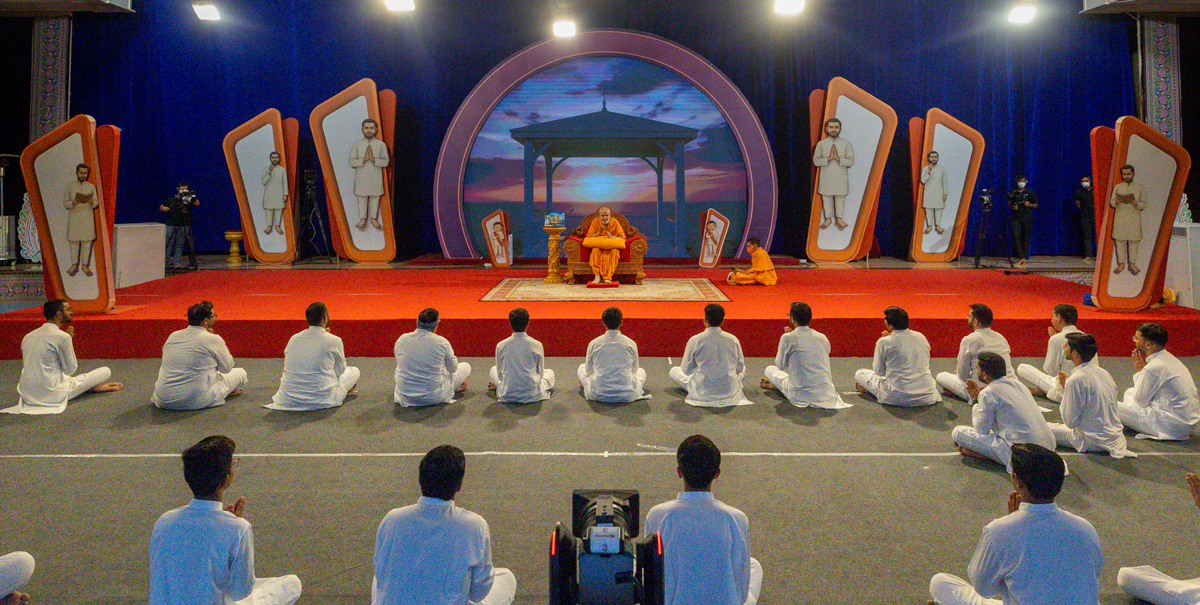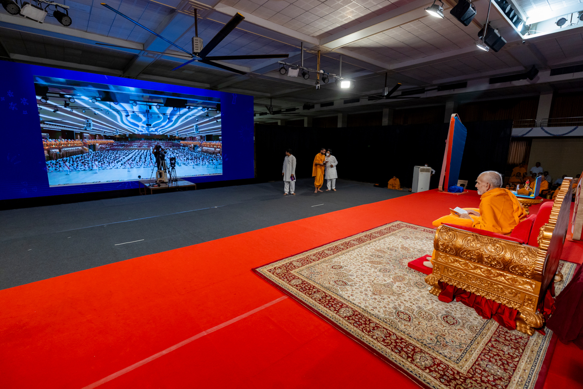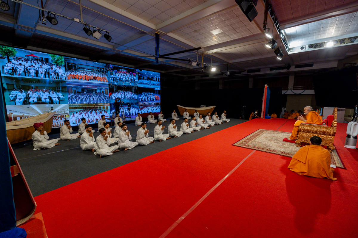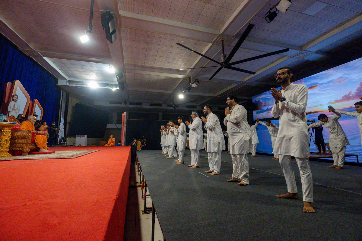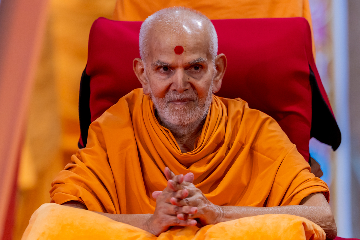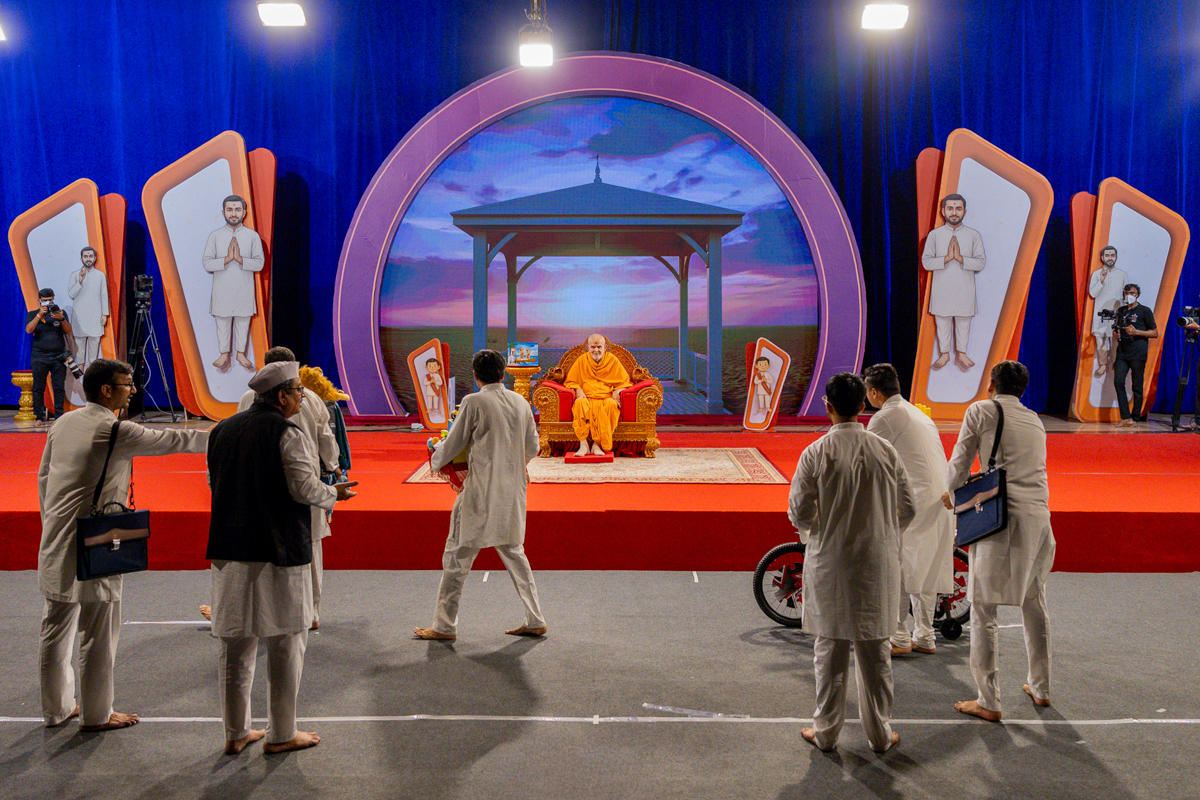 Swamis doing darshan of Param Pujya Mahant Swami Maharaj