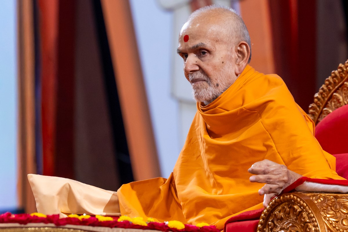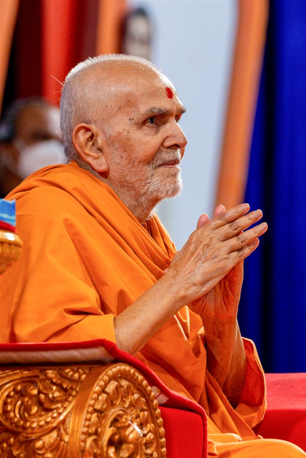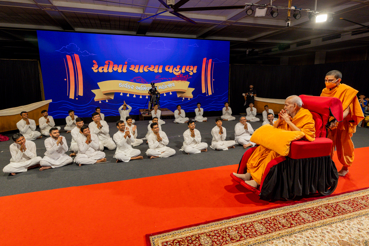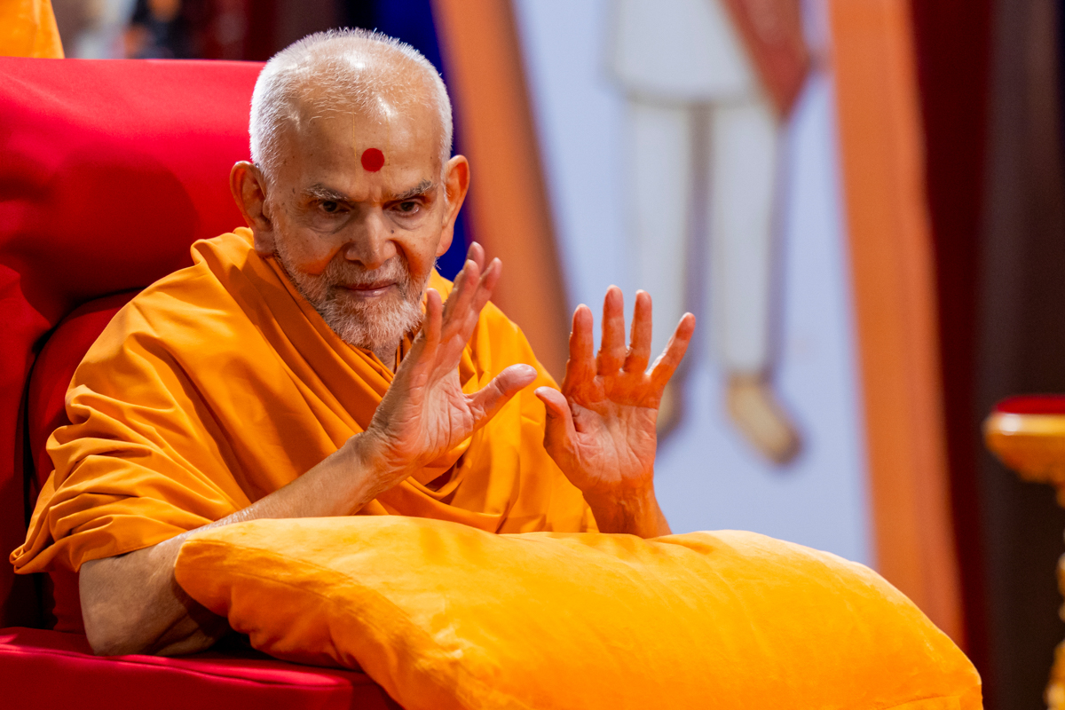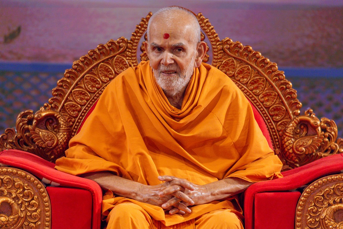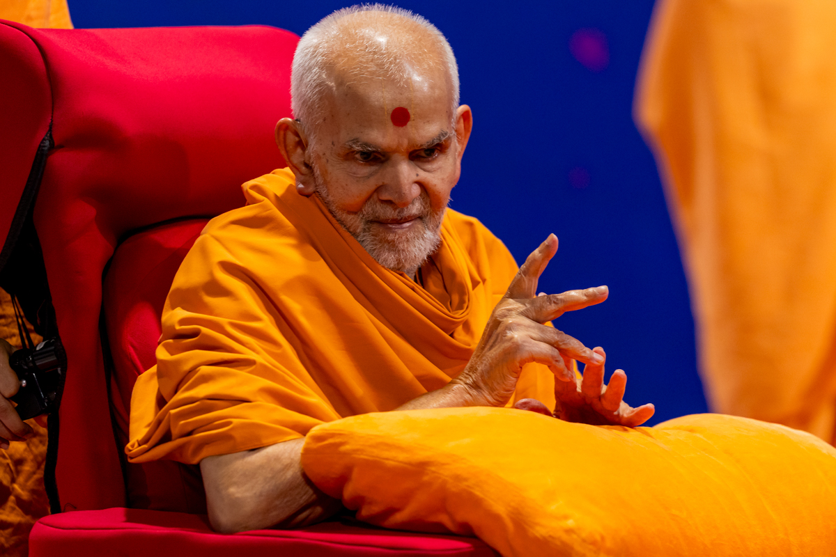 Swamis doing darshan of Param Pujya Mahant Swami Maharaj