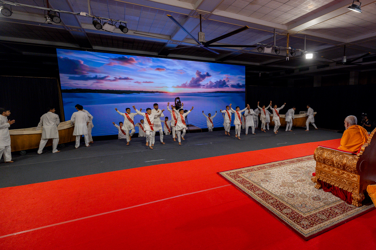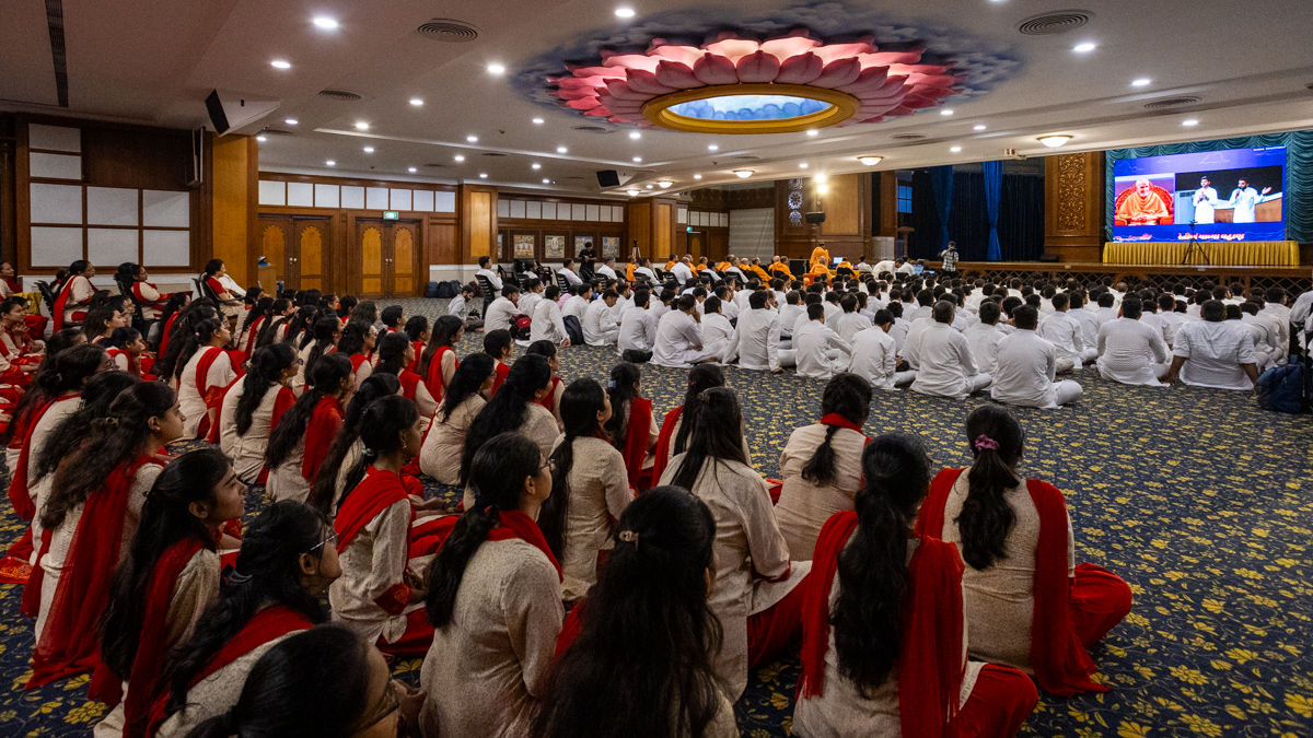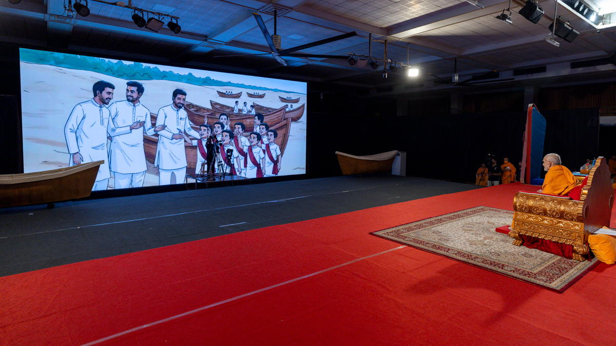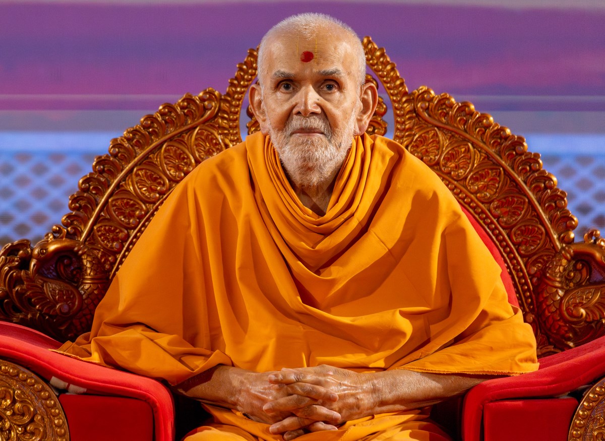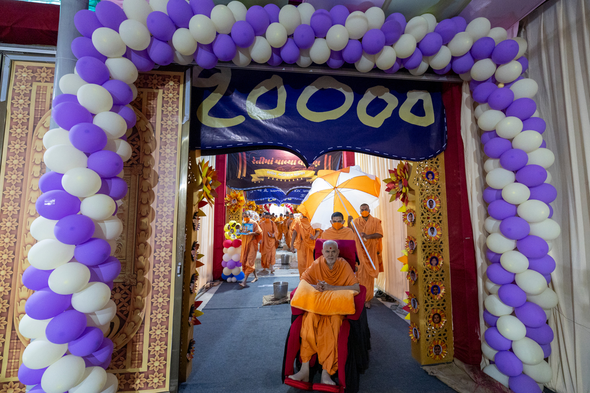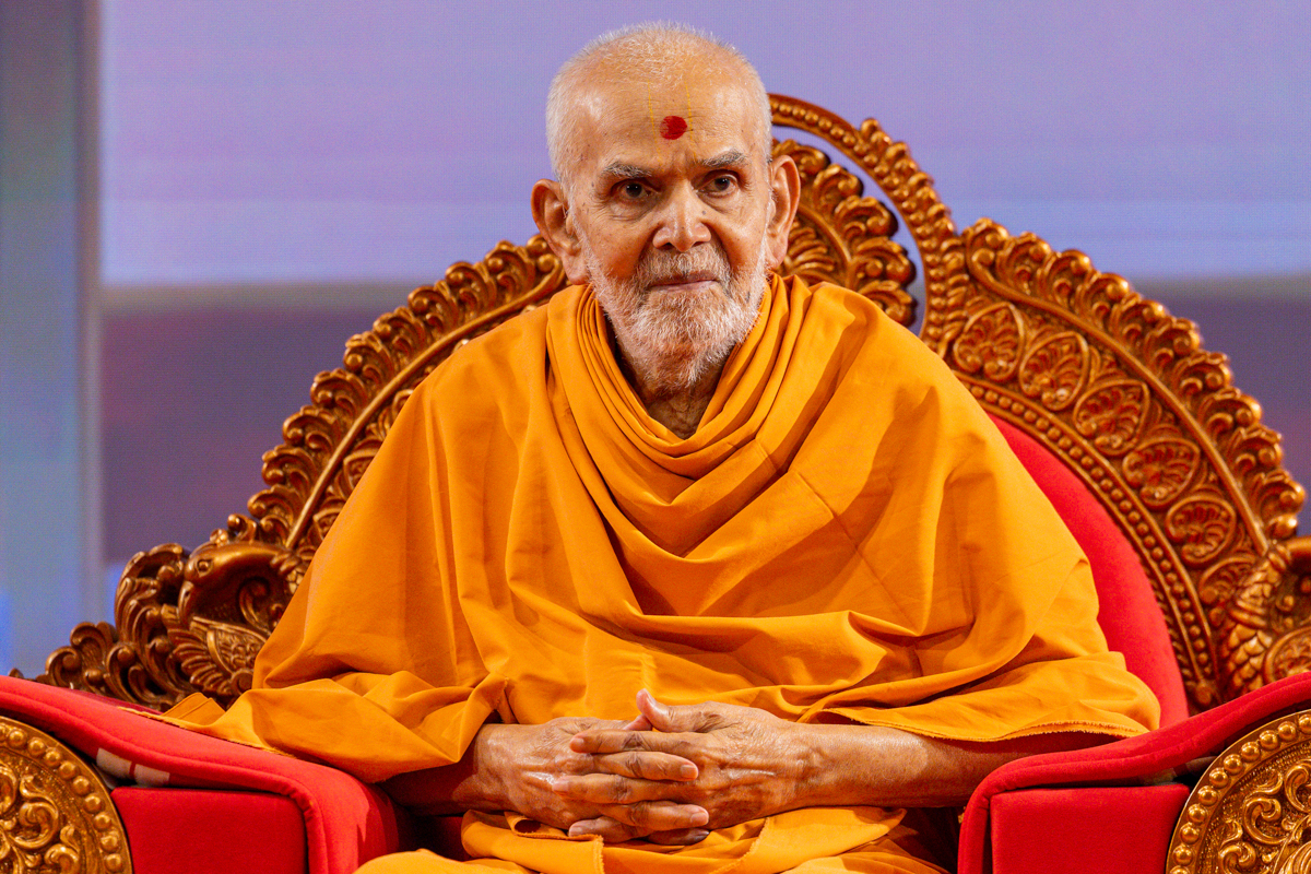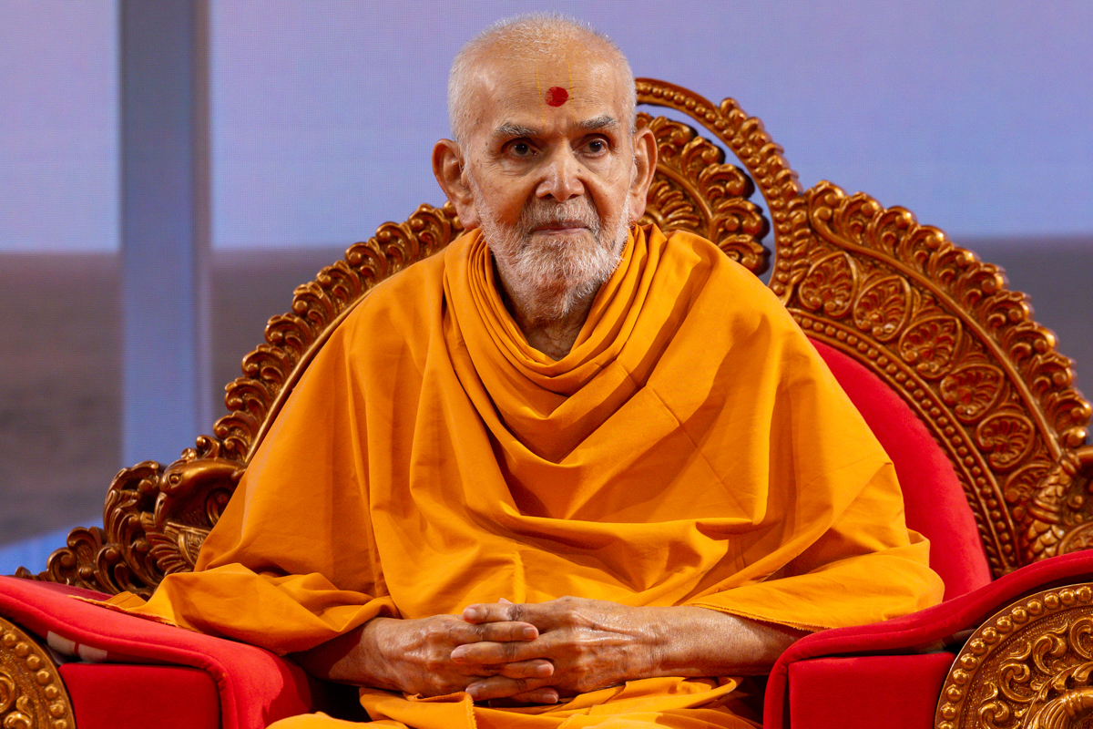 Swamis doing darshan of Param Pujya Mahant Swami Maharaj