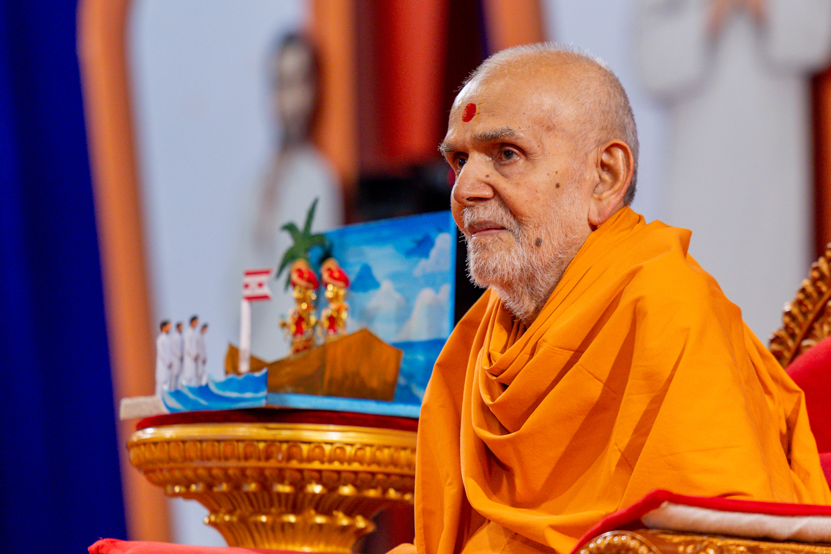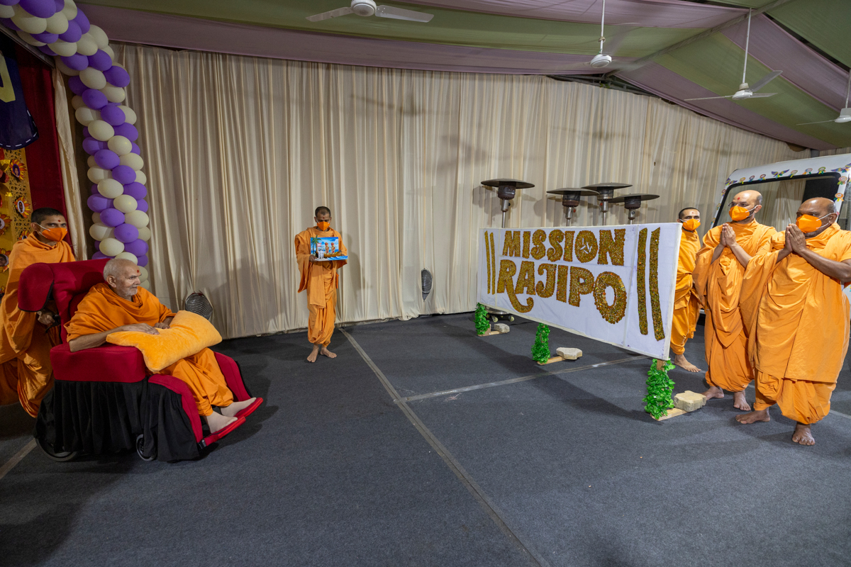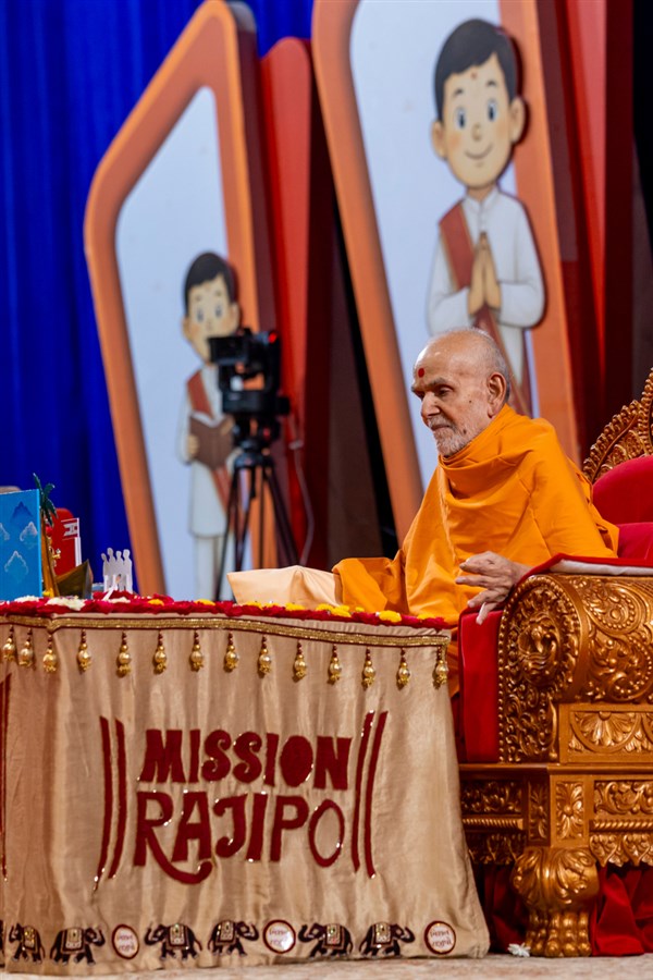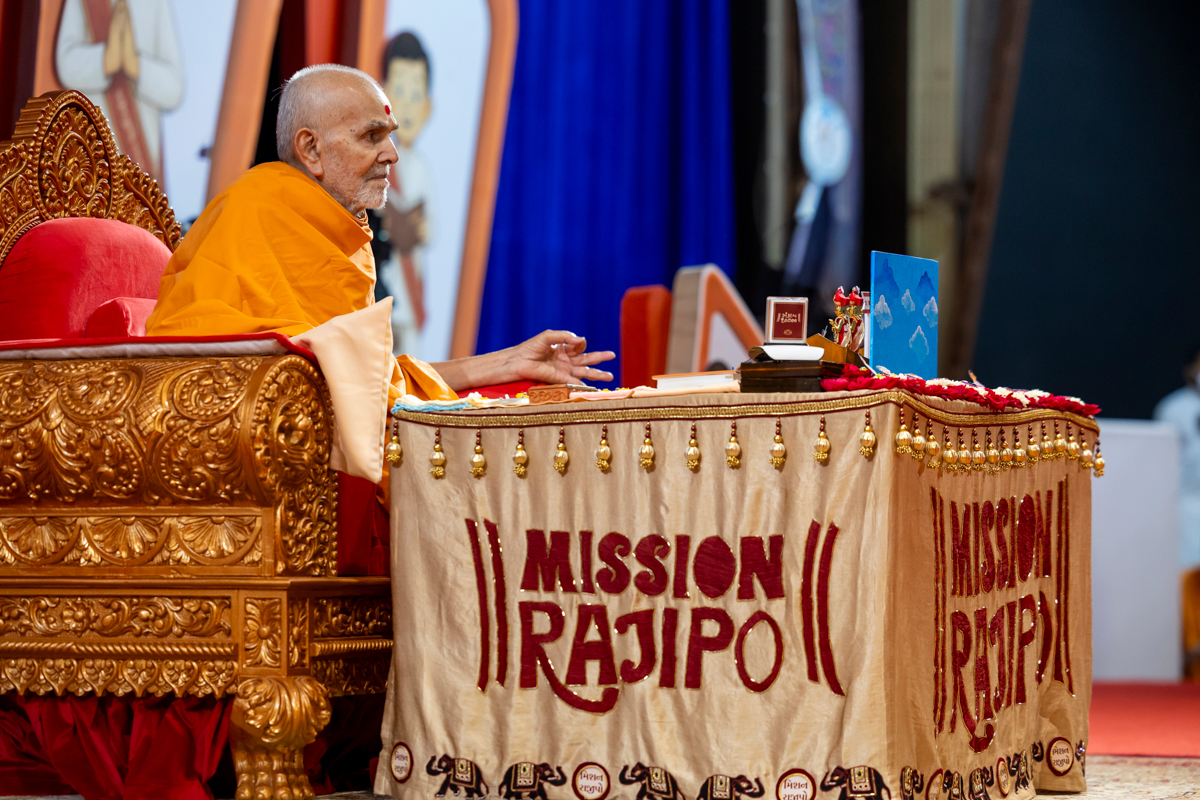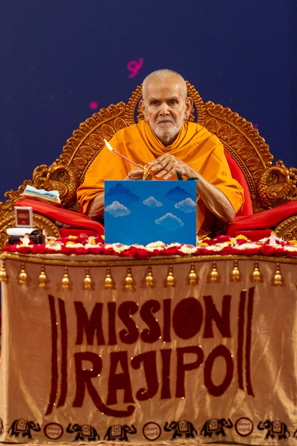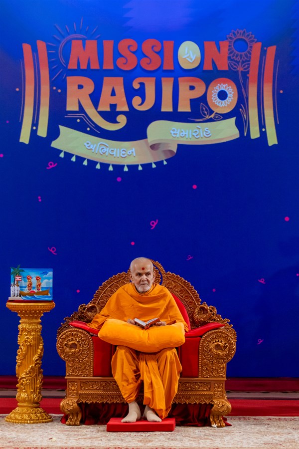Swamishri indicates that the success of Mission Rajipo is due to the grace of God