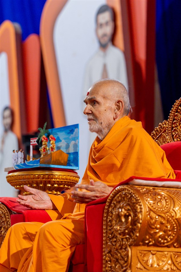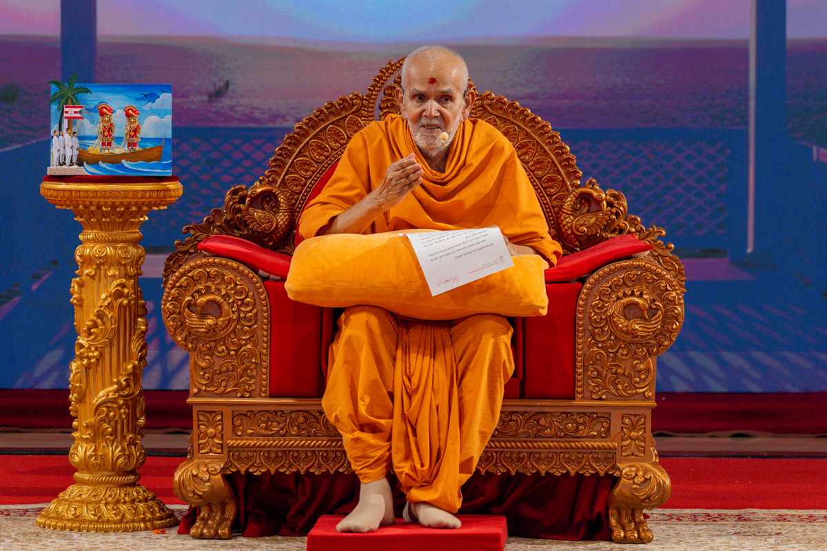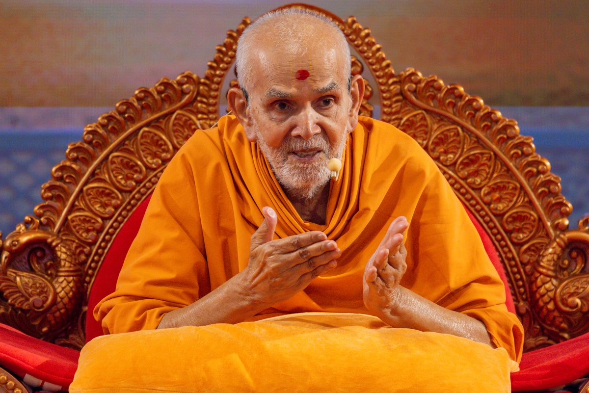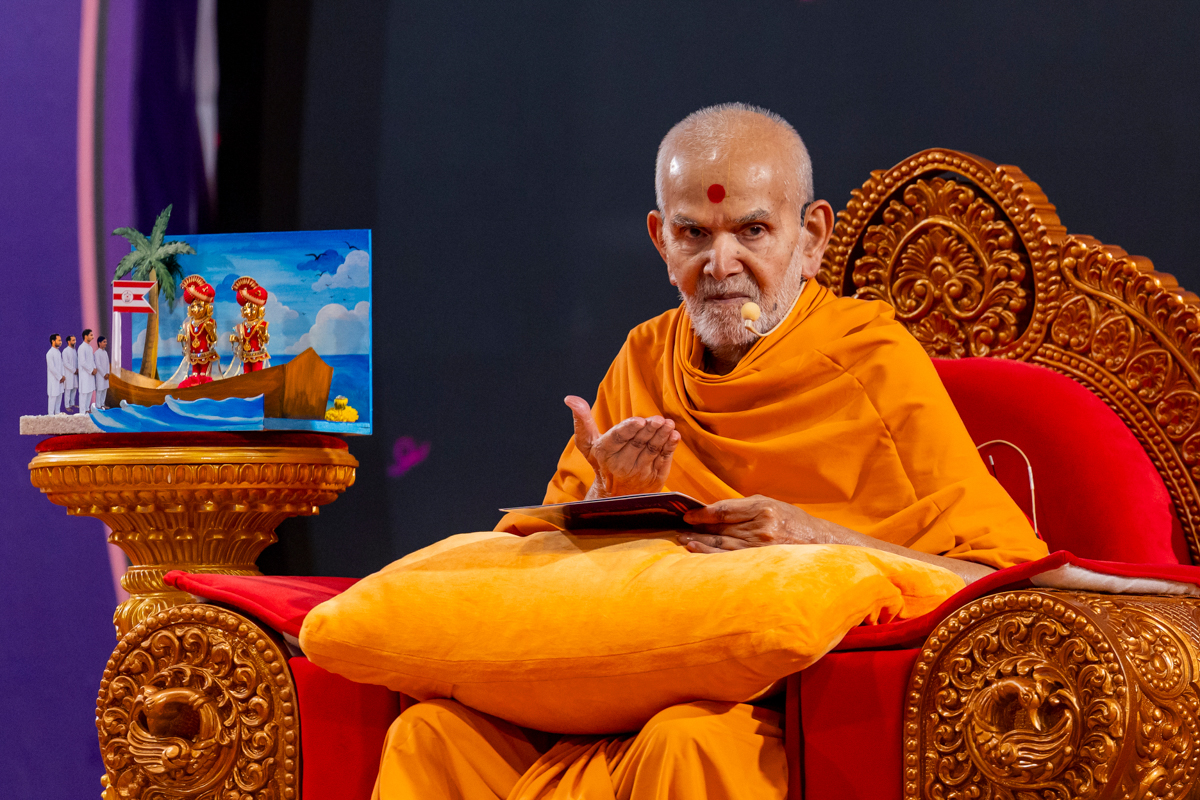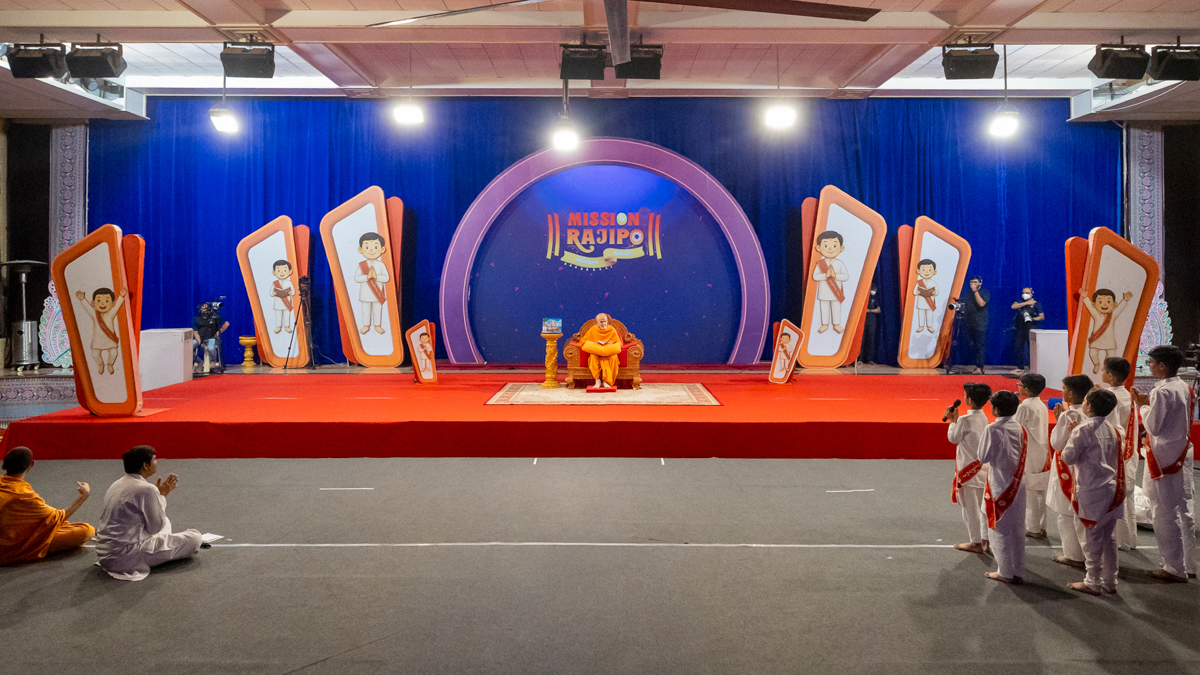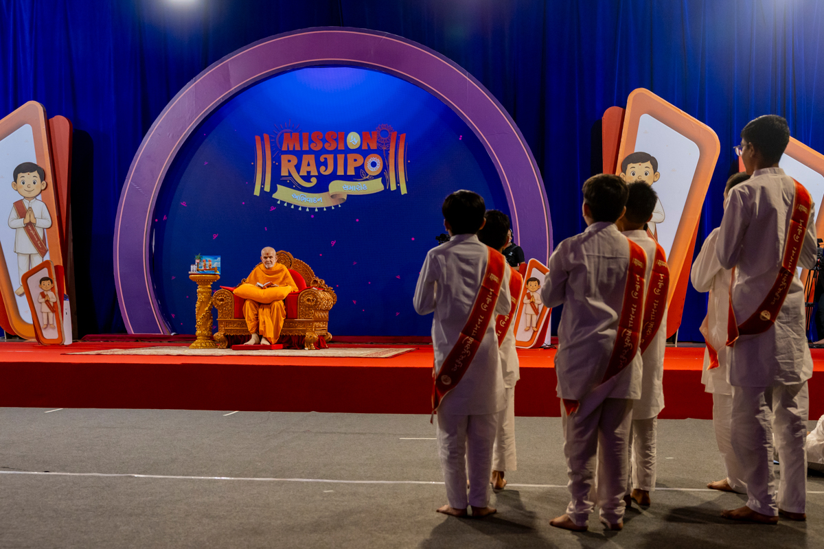 Swamishri indicates that the success of Mission Rajipo is due to the grace of God