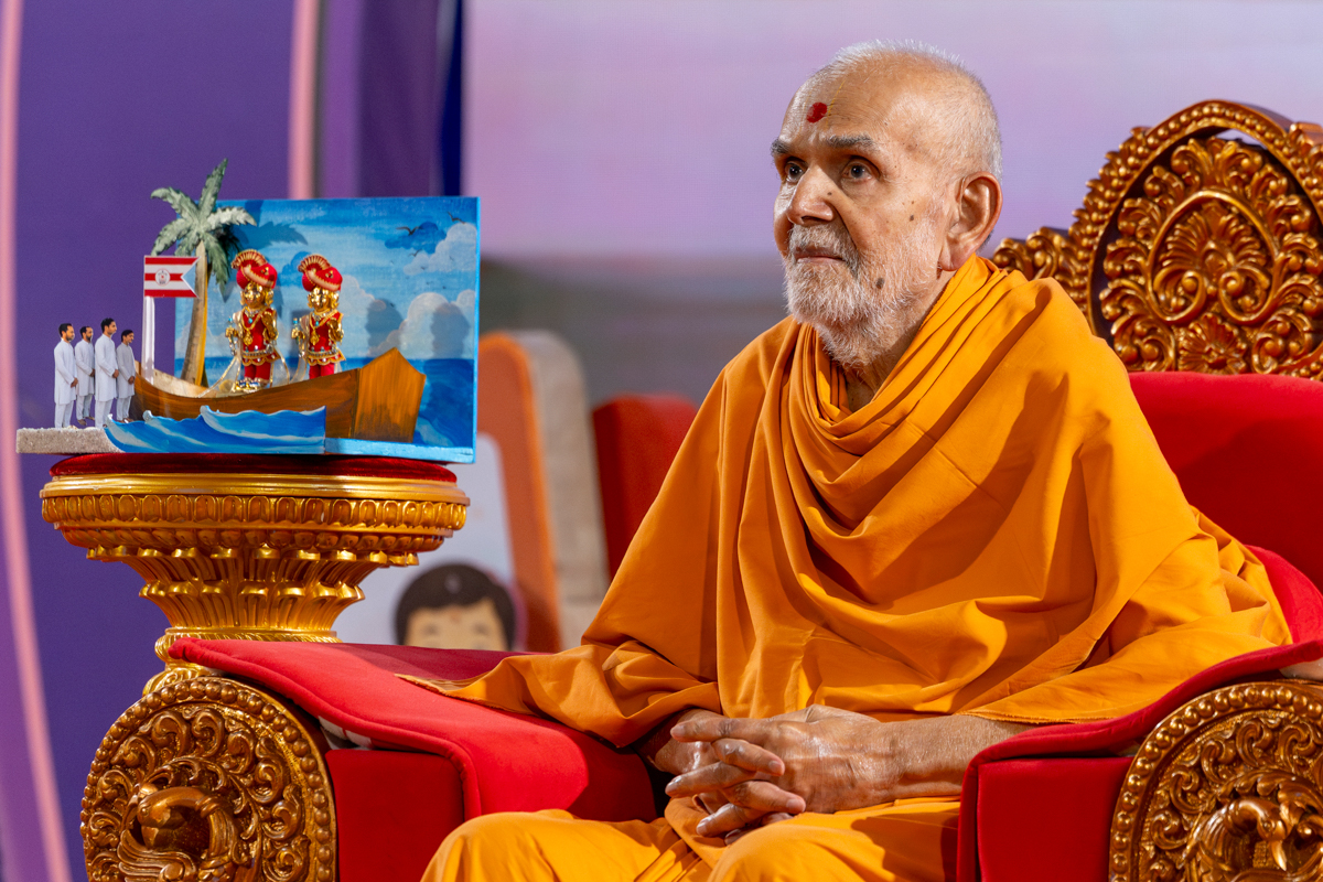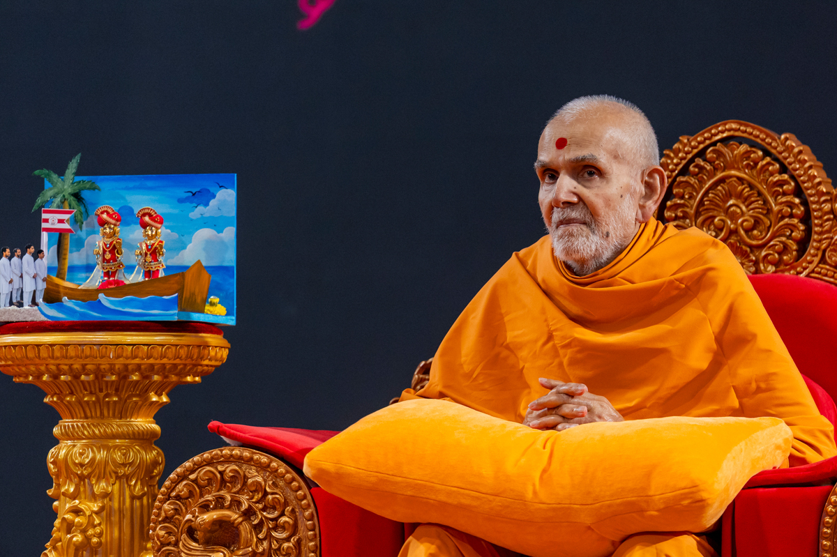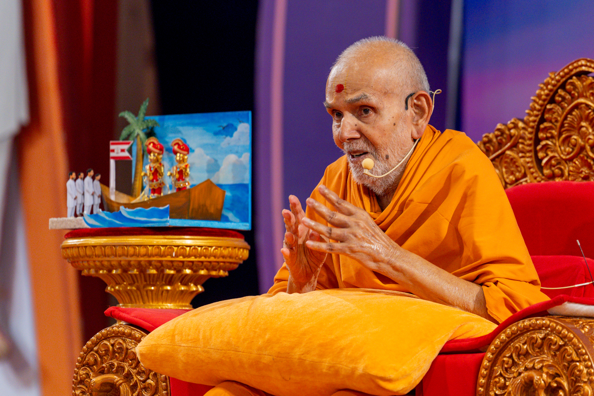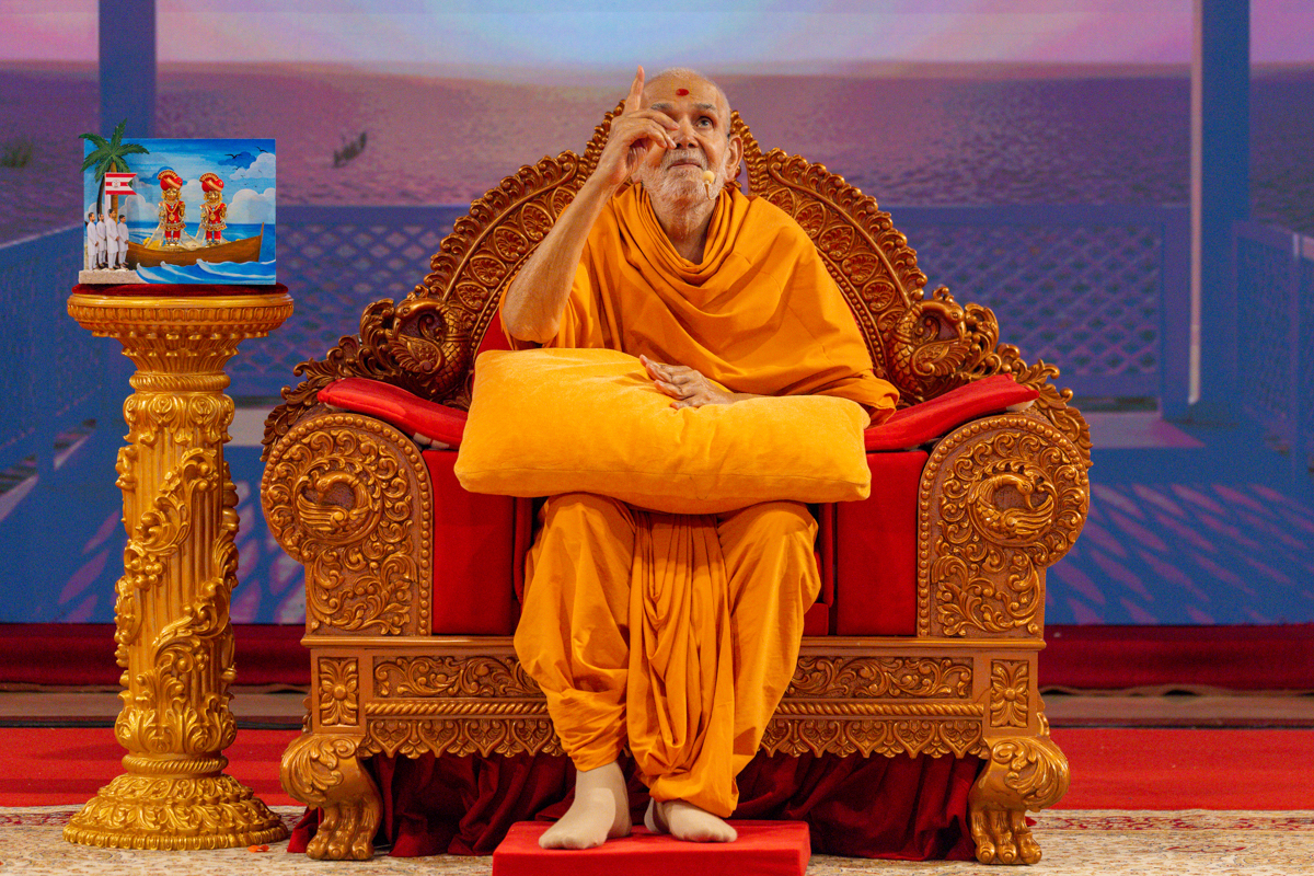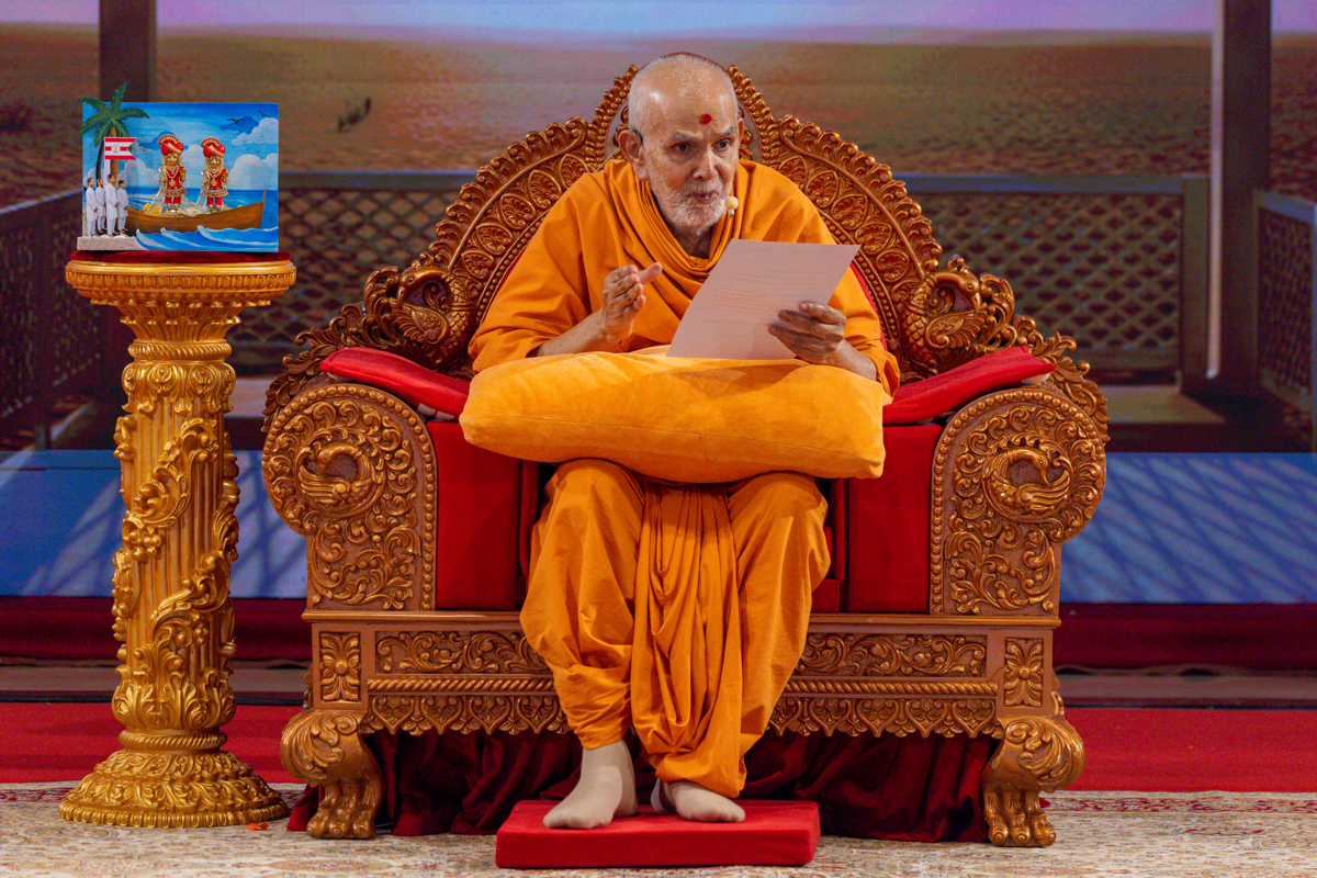 Swamishri indicates that the success of Mission Rajipo is due to the grace of God