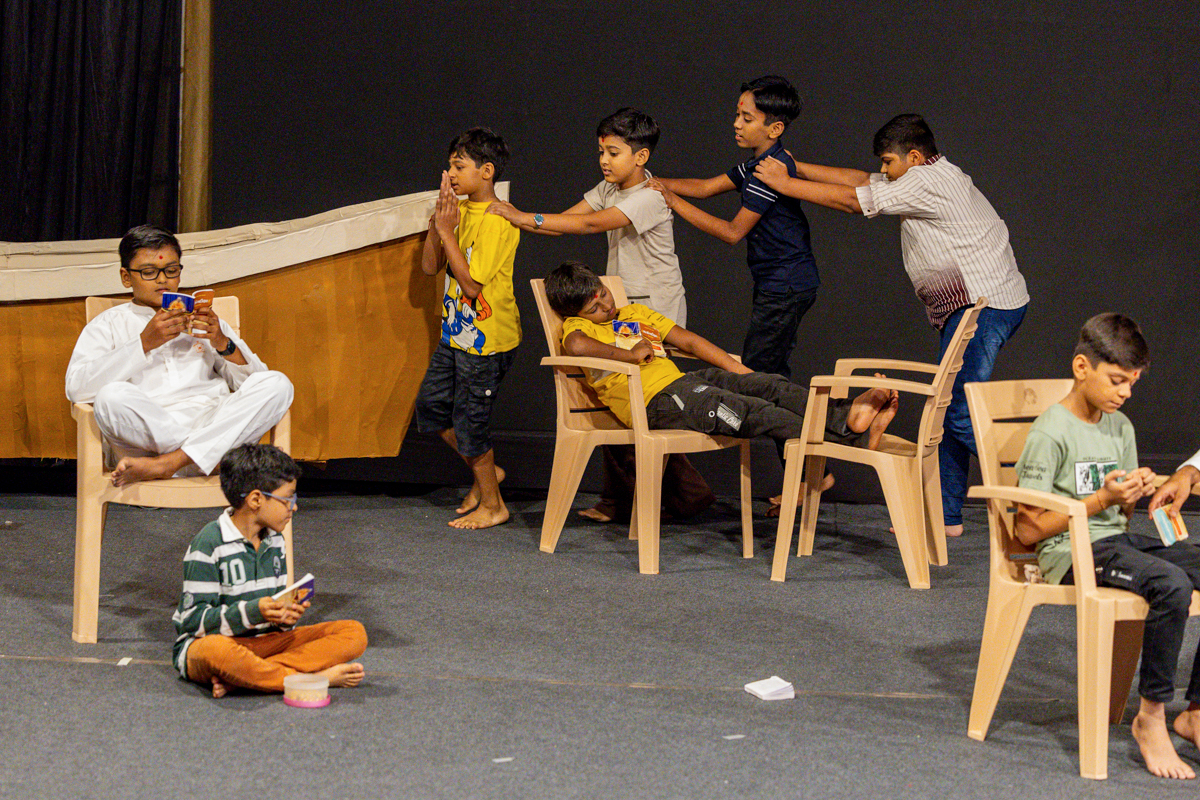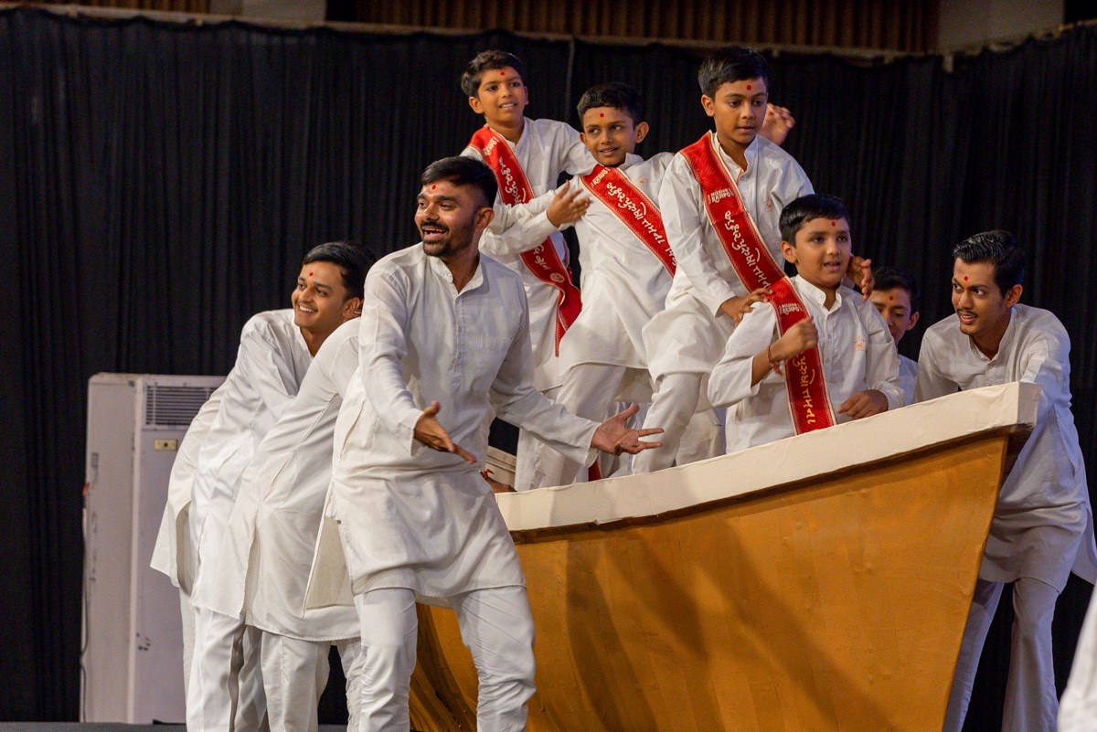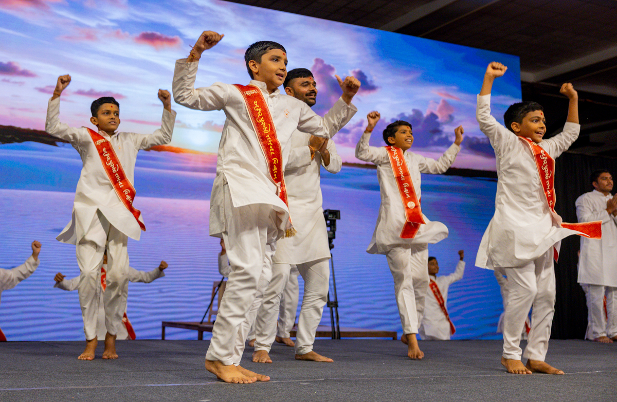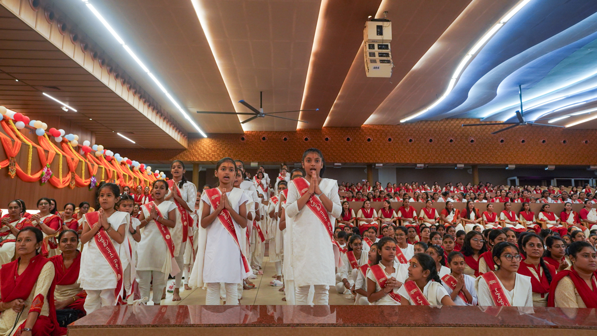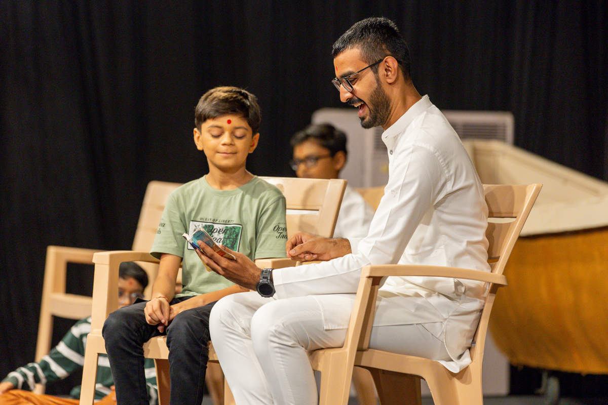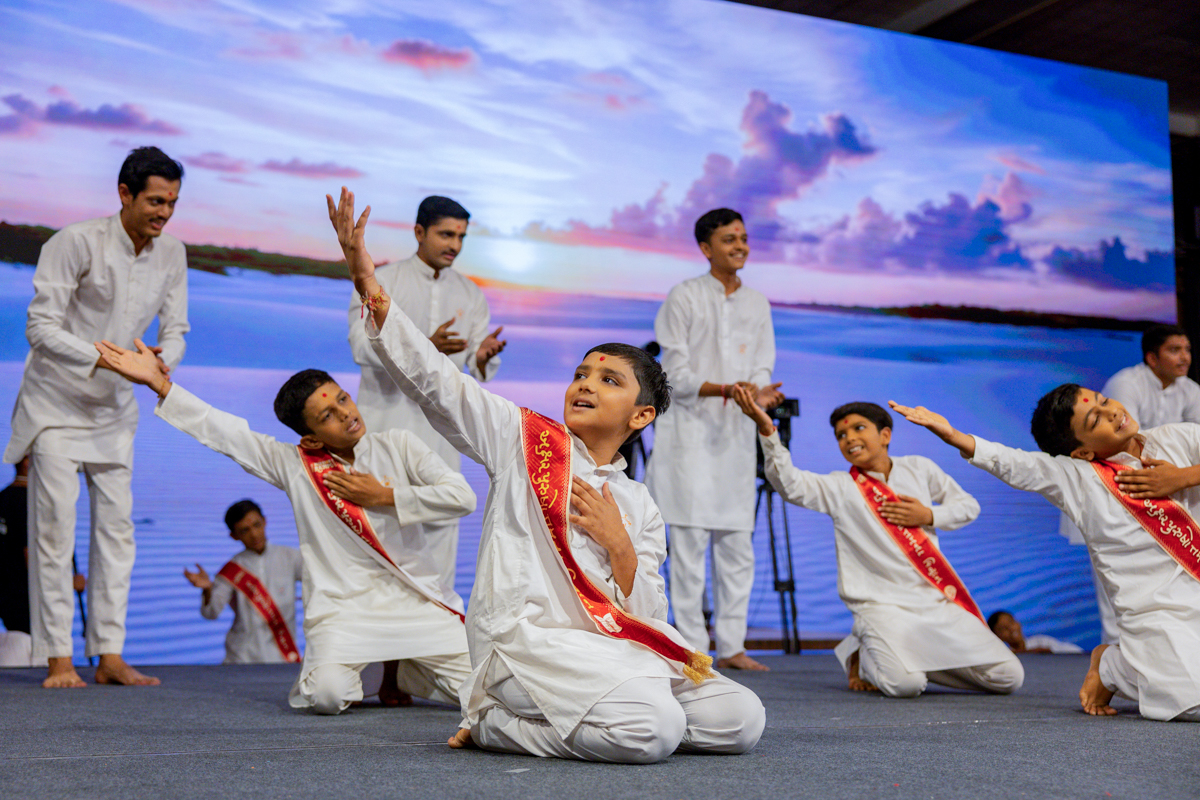 Balaks lead everyone in reciting the sadhana mantra and daily prayer in Swamishri's puja