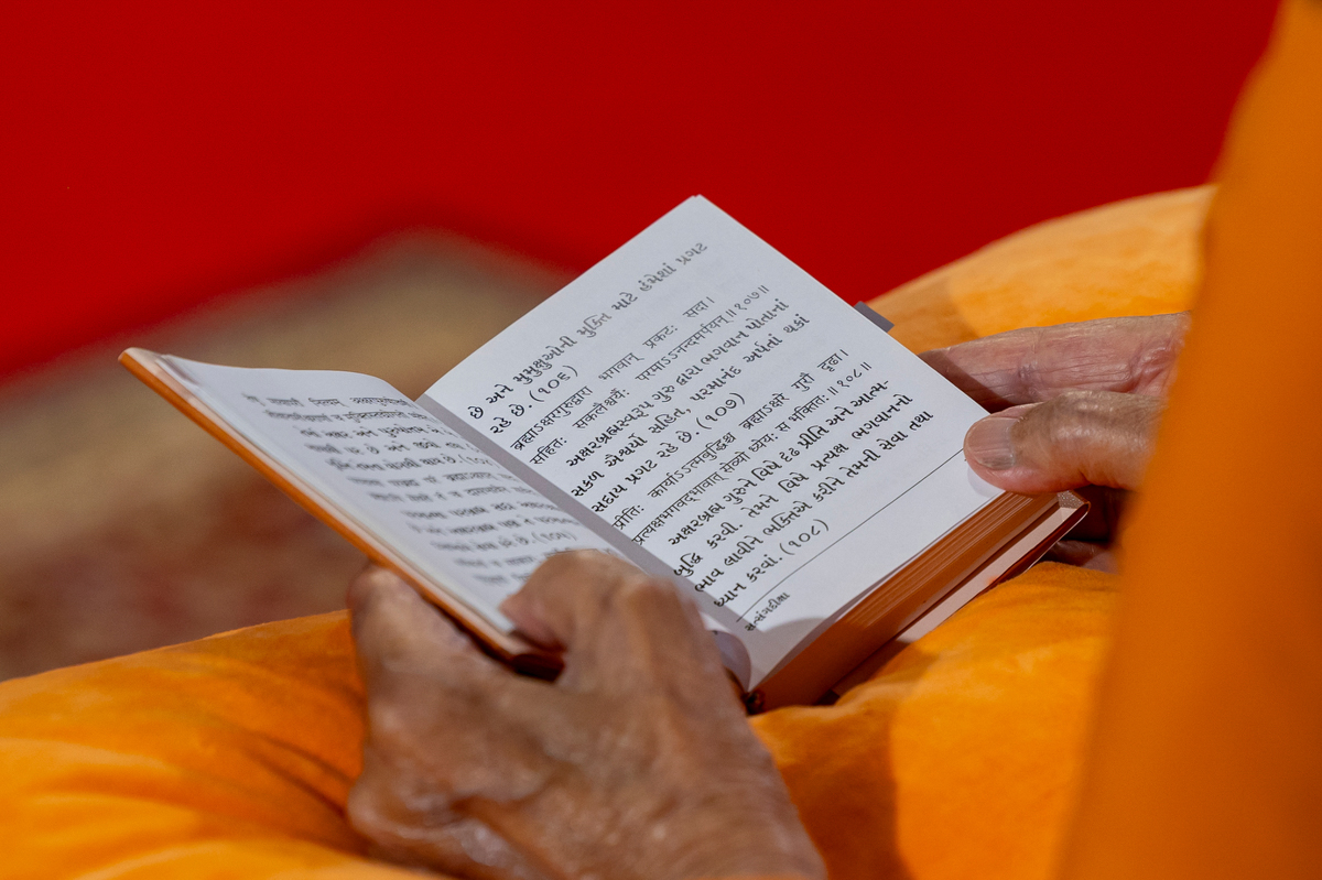 Swamishri reads the Shikshapatri and Satsang Diksha