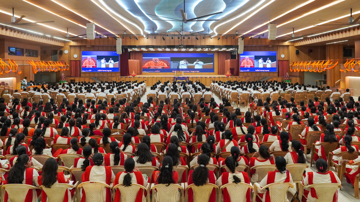 Pujya Ghanshyamcharan Swami and Pujya Viveksagar Swami during the assembly