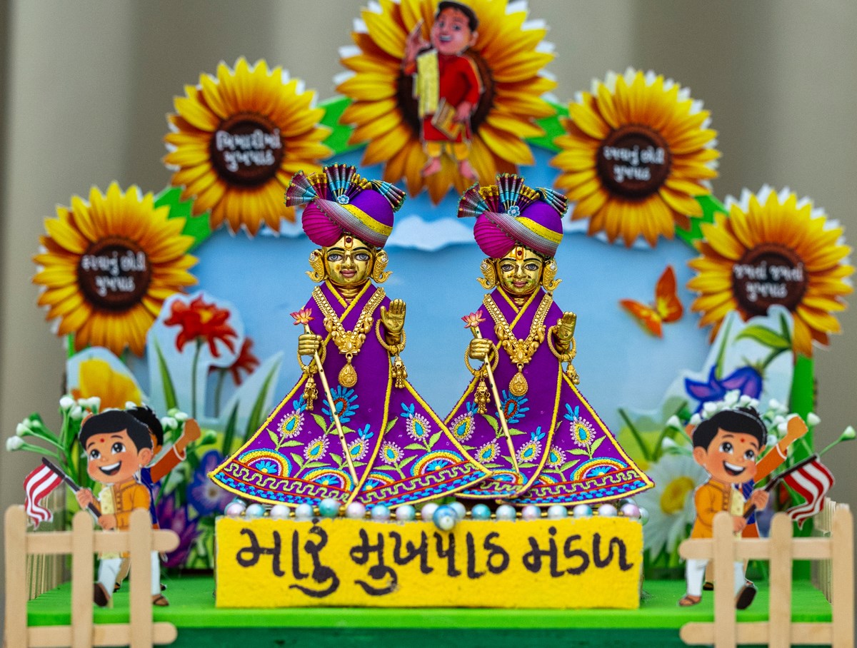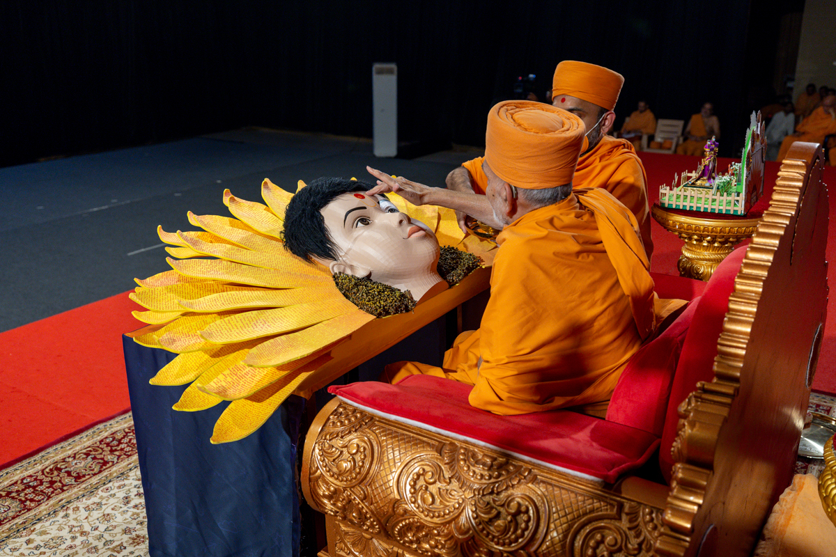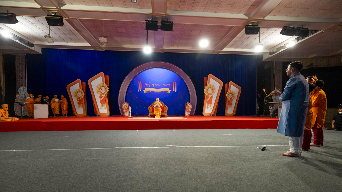 Balaks, balikas and karyakars doing Swamishri's puja darshan