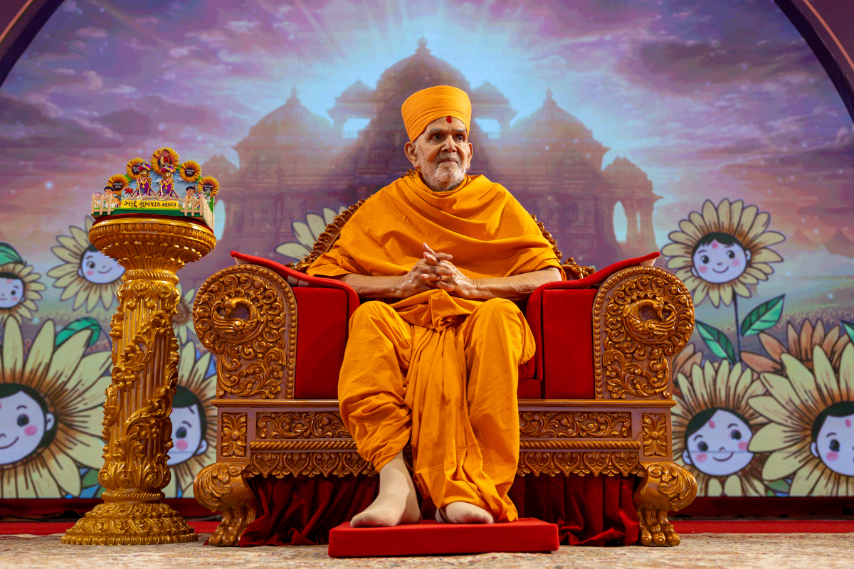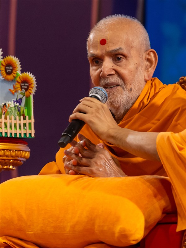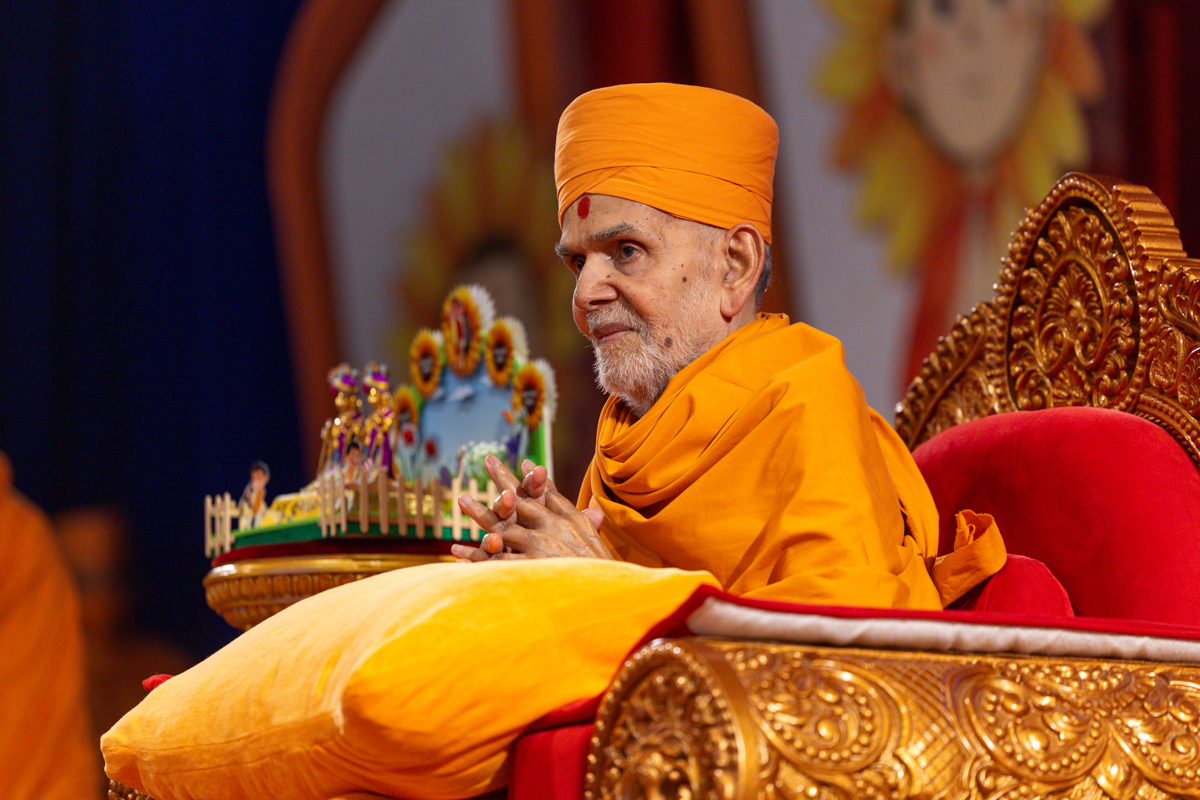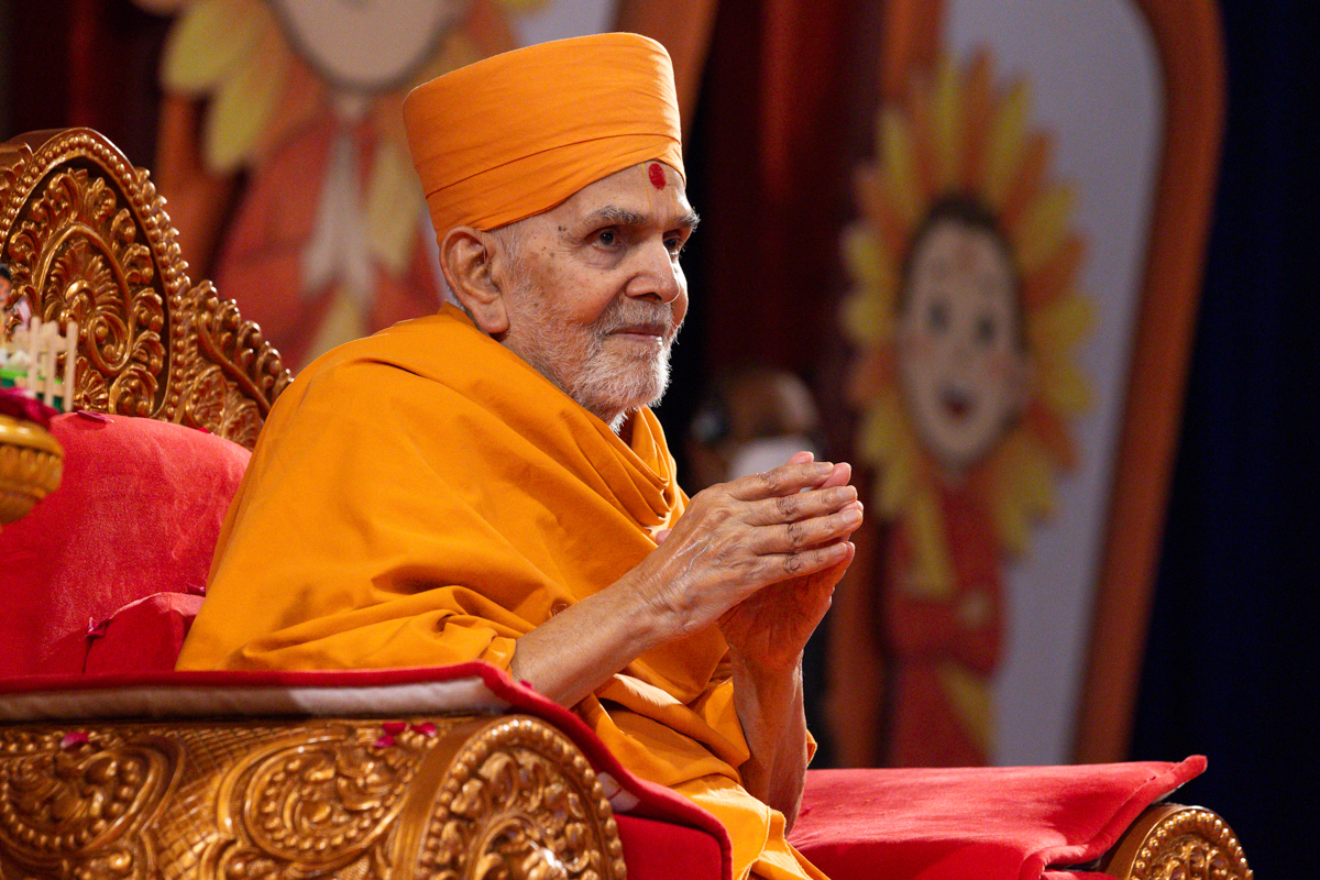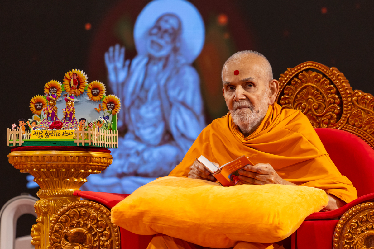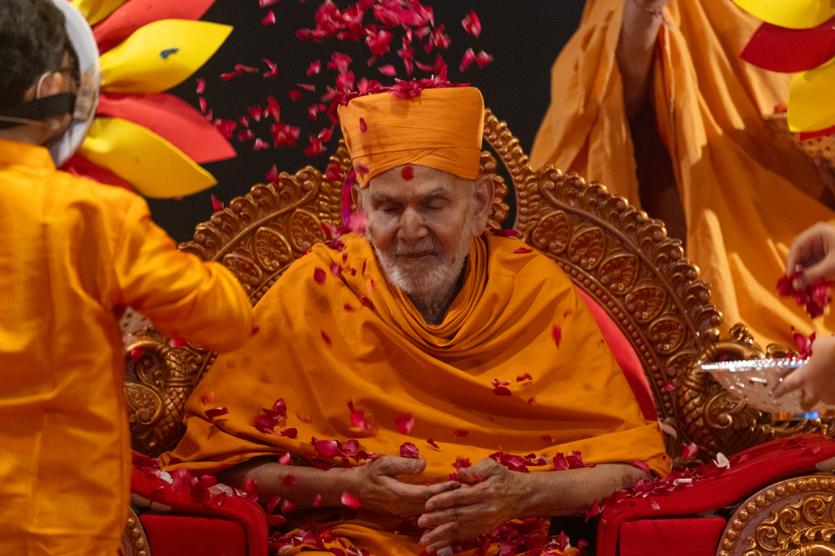 Swamishri offers shiro to balaks, balikas and karyakars via video conference