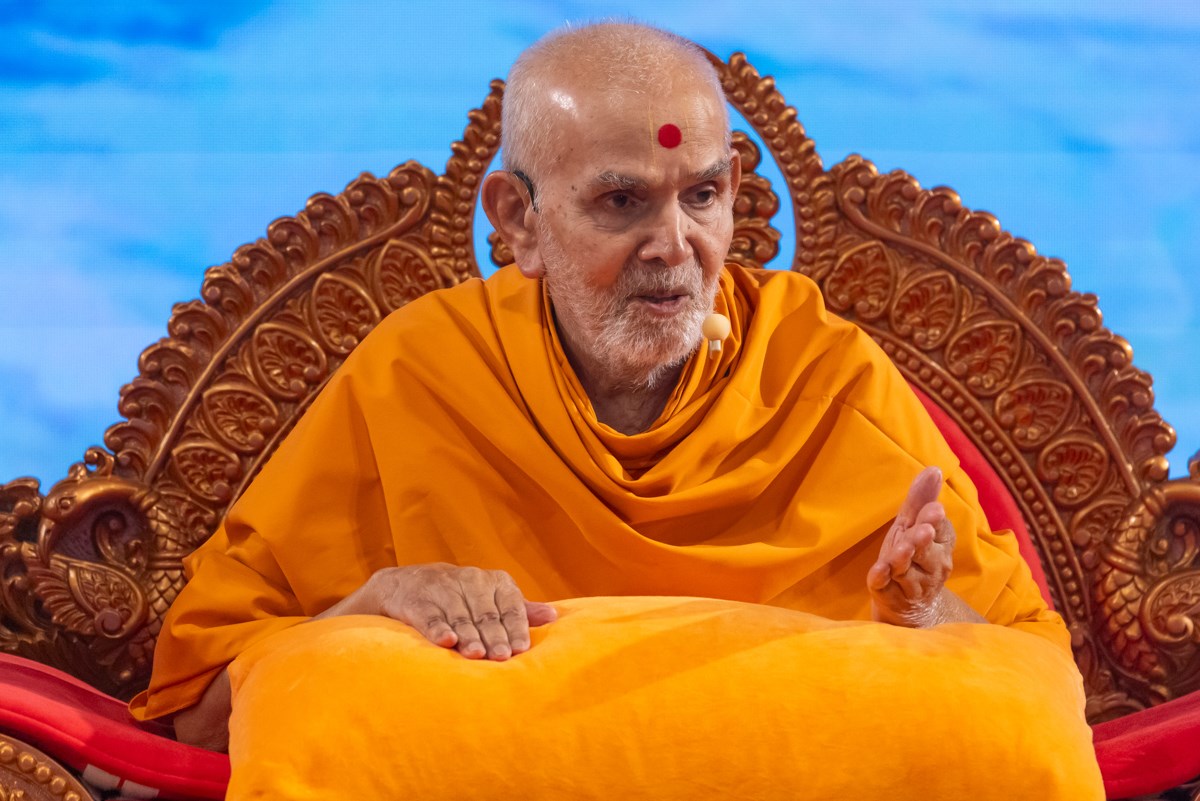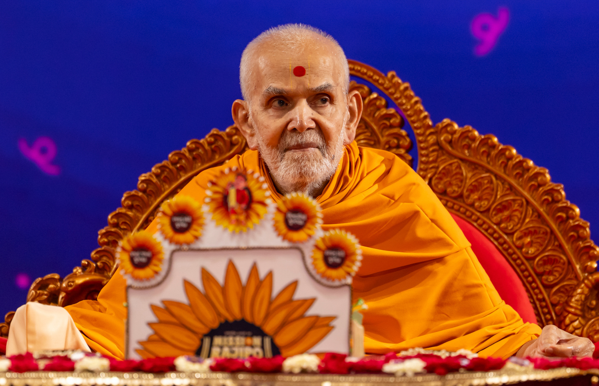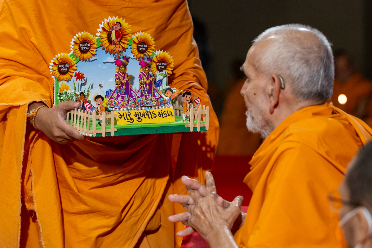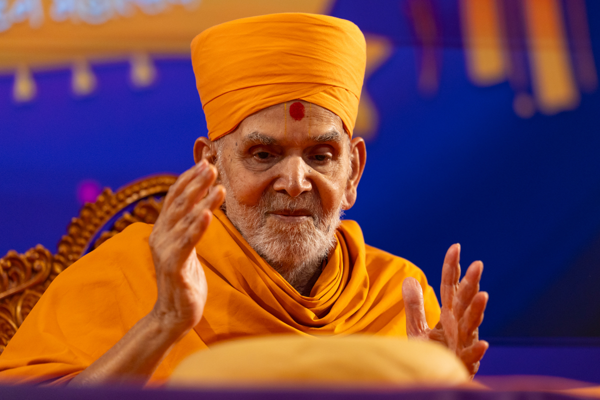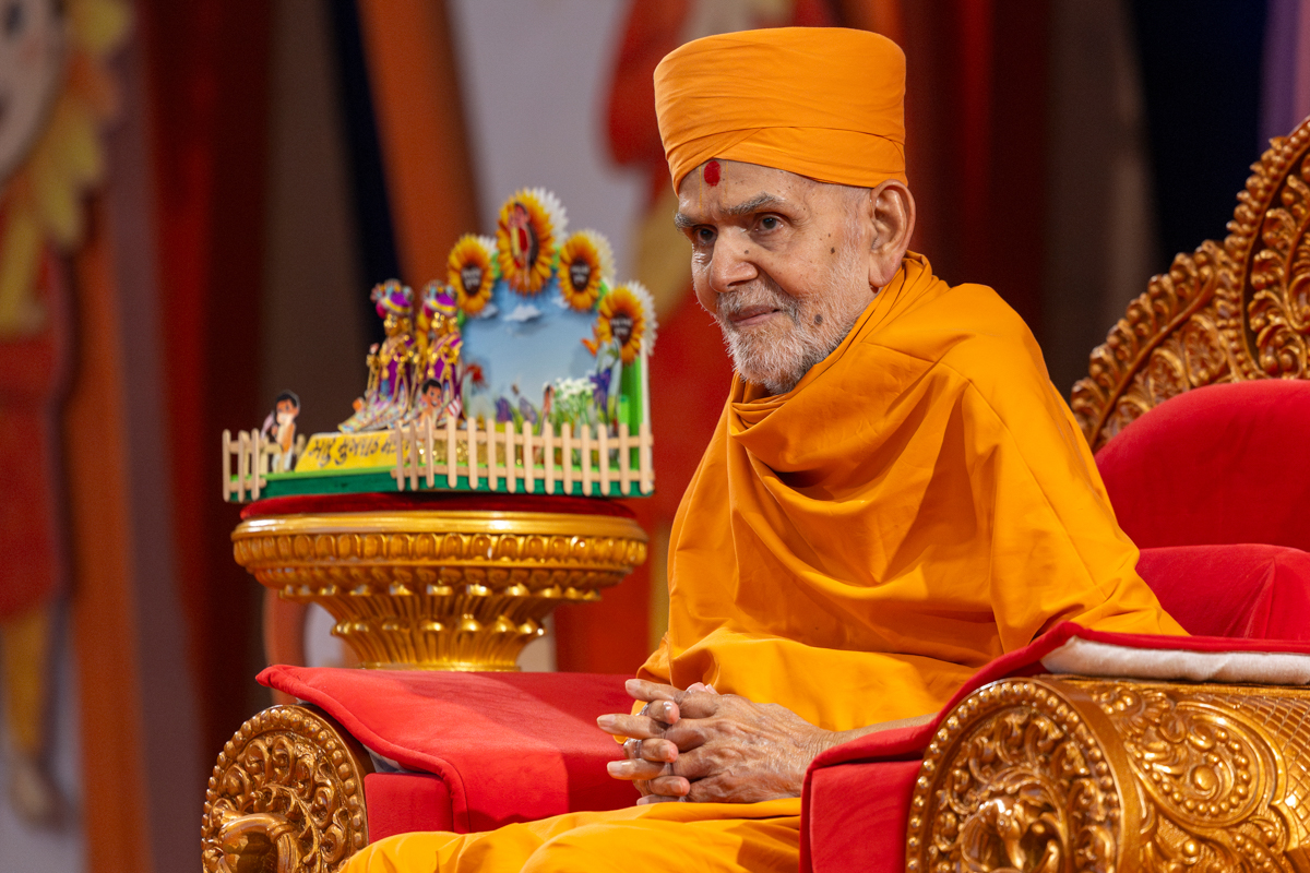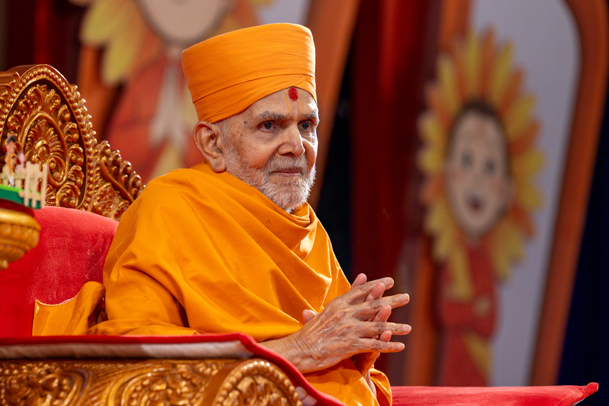 Swamishri offers shiro to balaks, balikas and karyakars via video conference