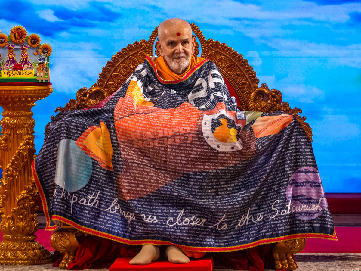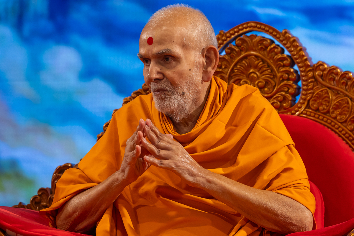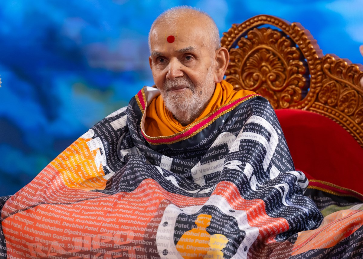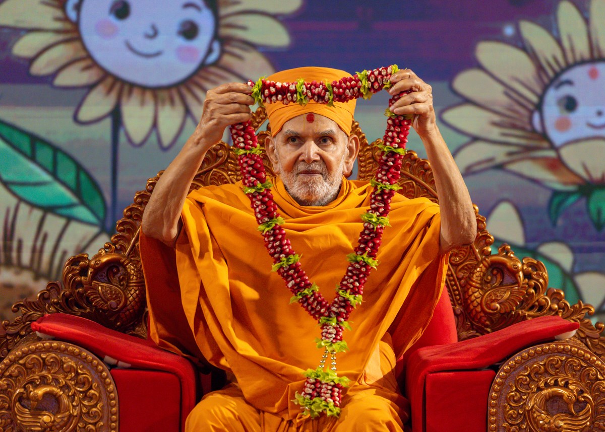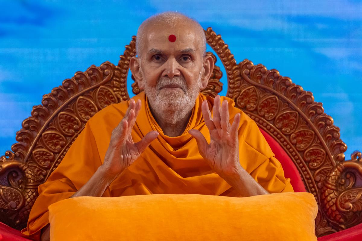 Swamishri offers shiro to balaks, balikas and karyakars via video conference