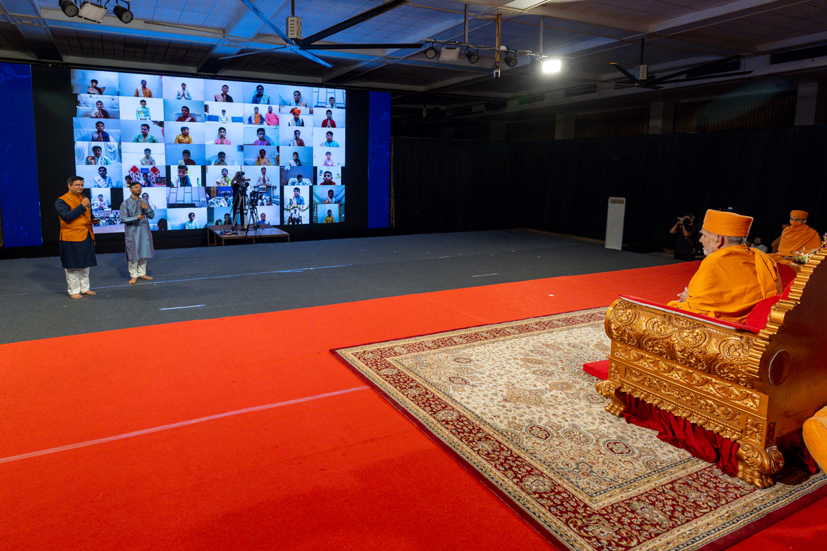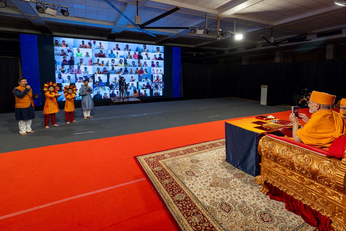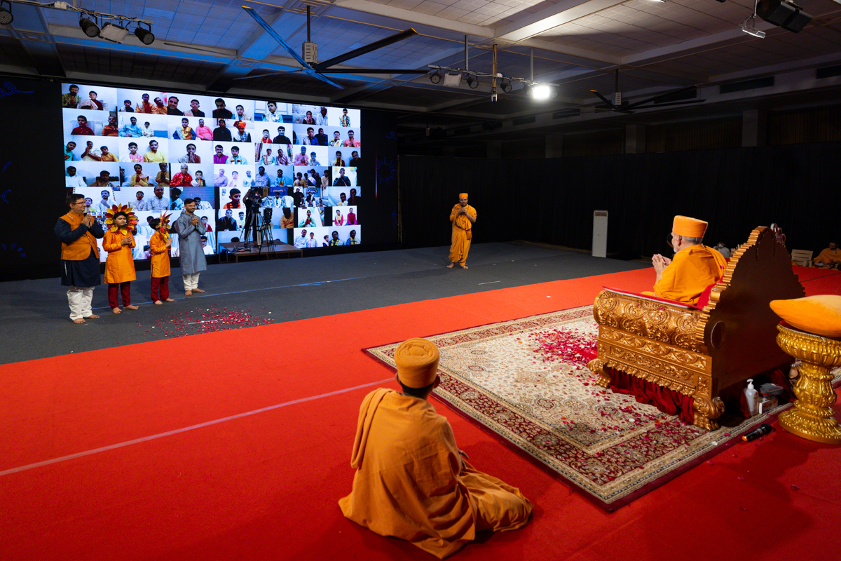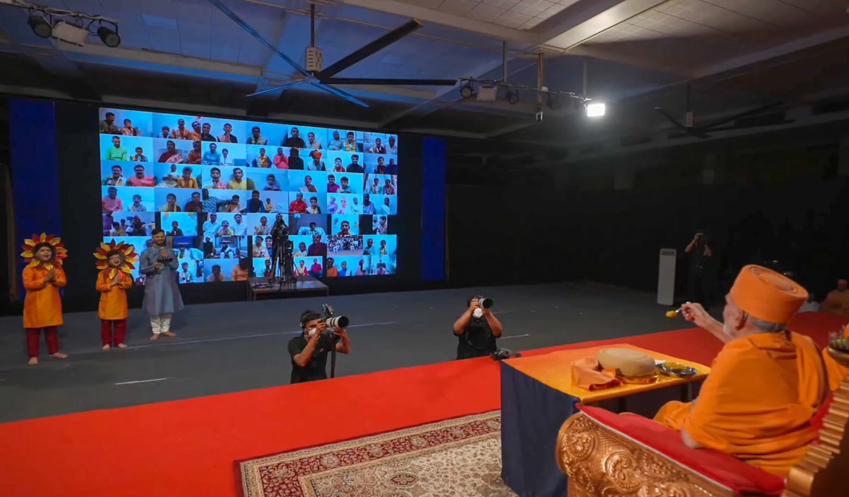 Balaks, balikas and karyakars doing darshan of Swamishri via video conference