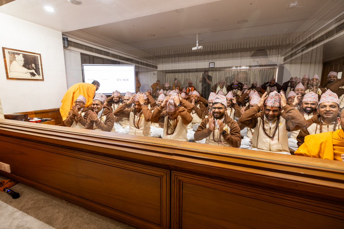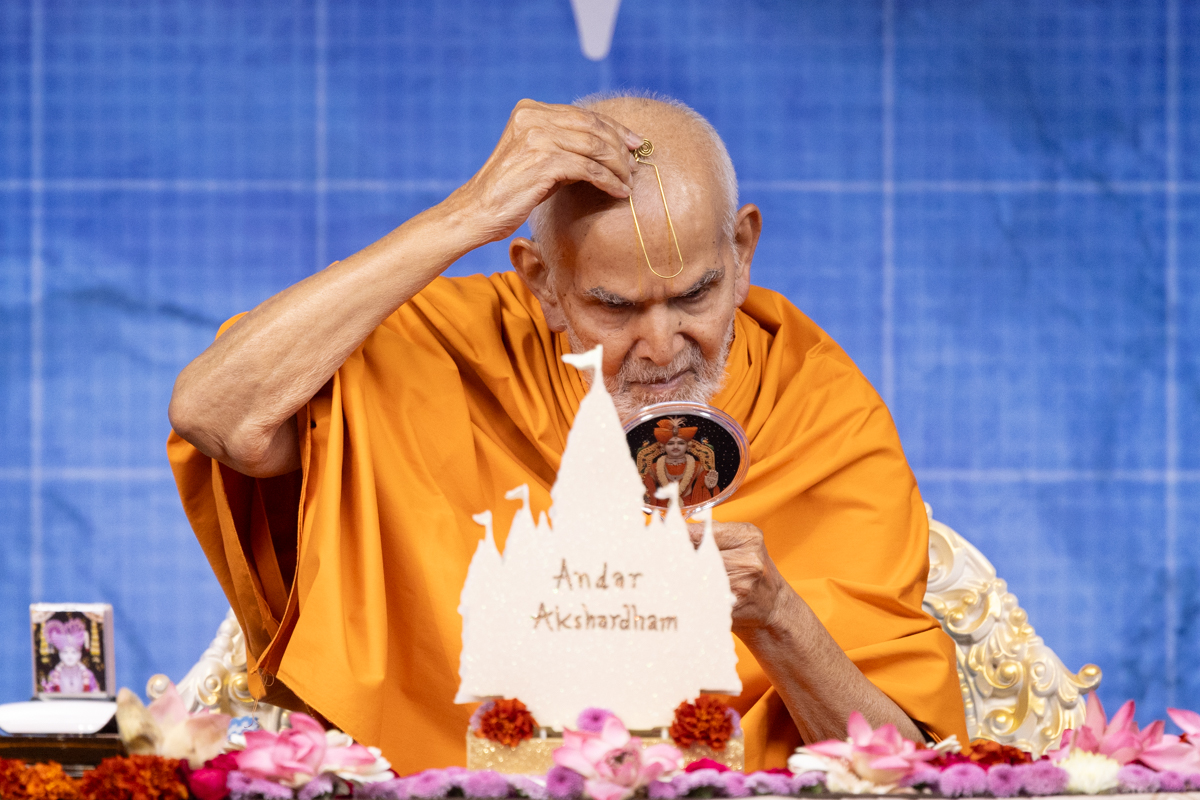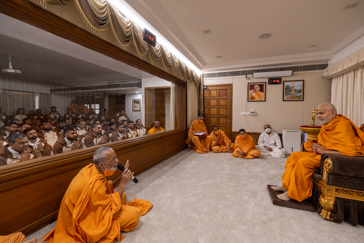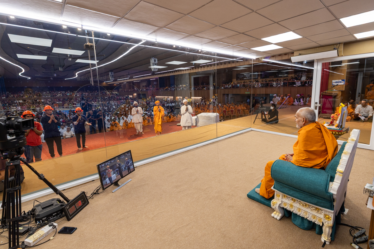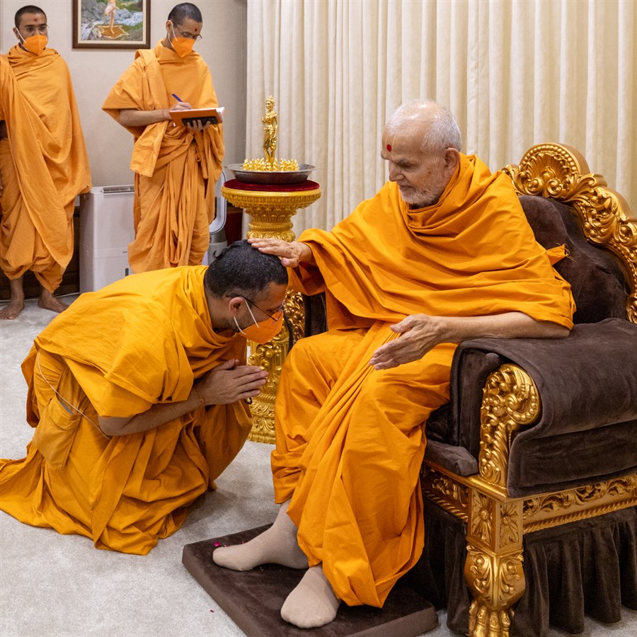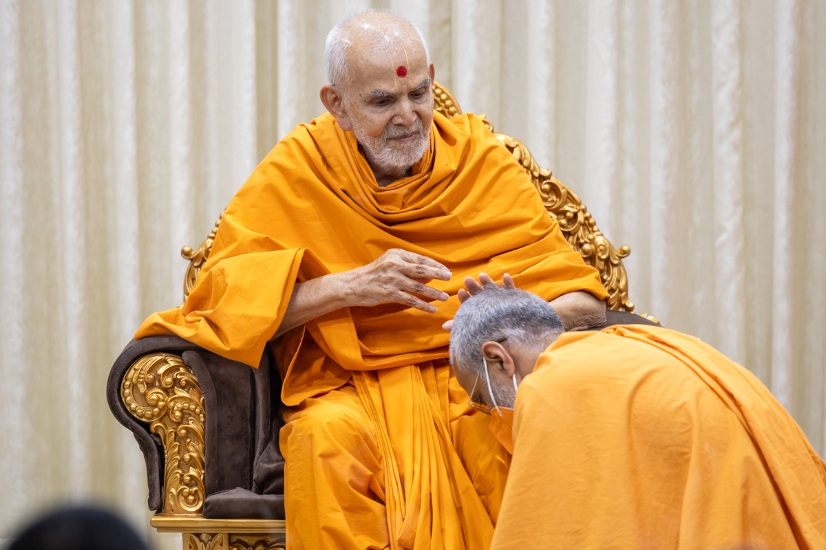 Pujya Ishwarcharan Swami doing darshan of Swamishri