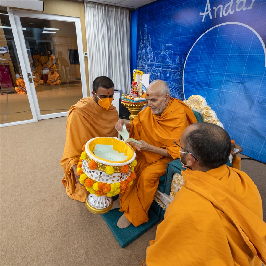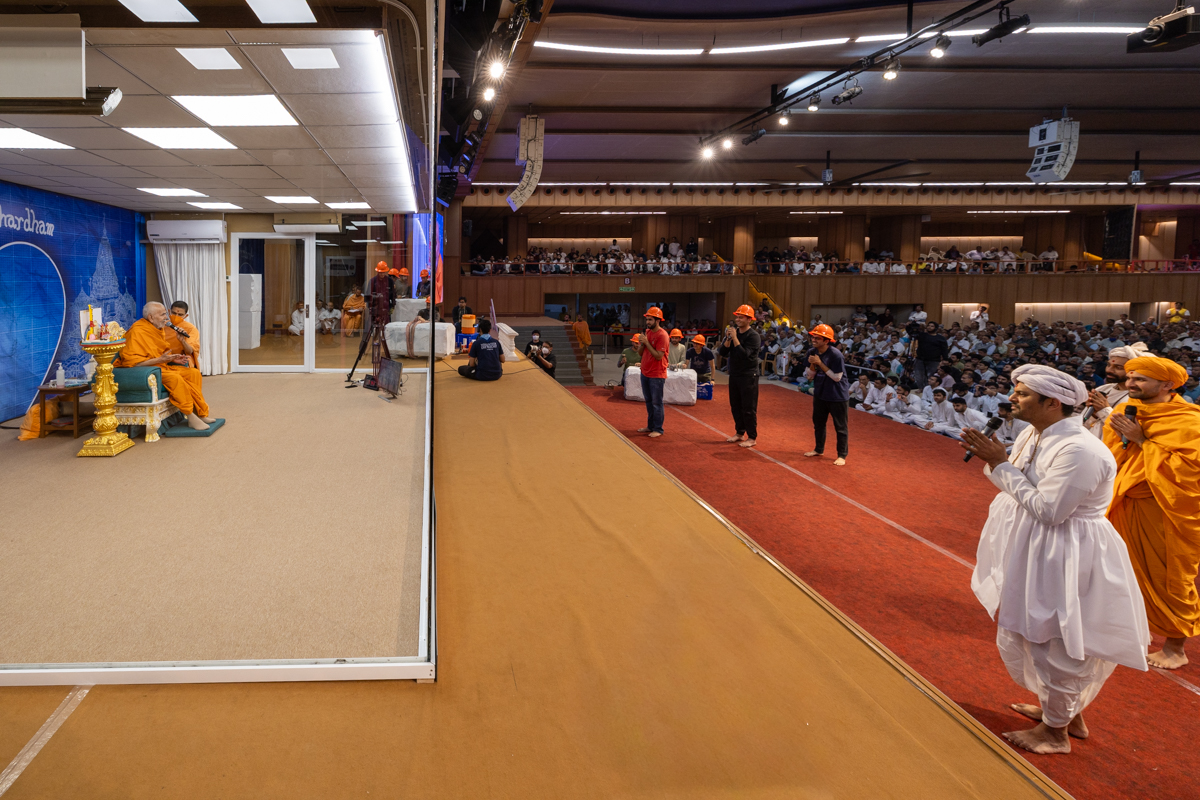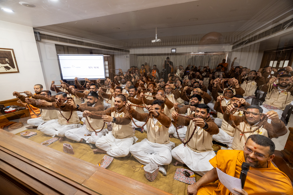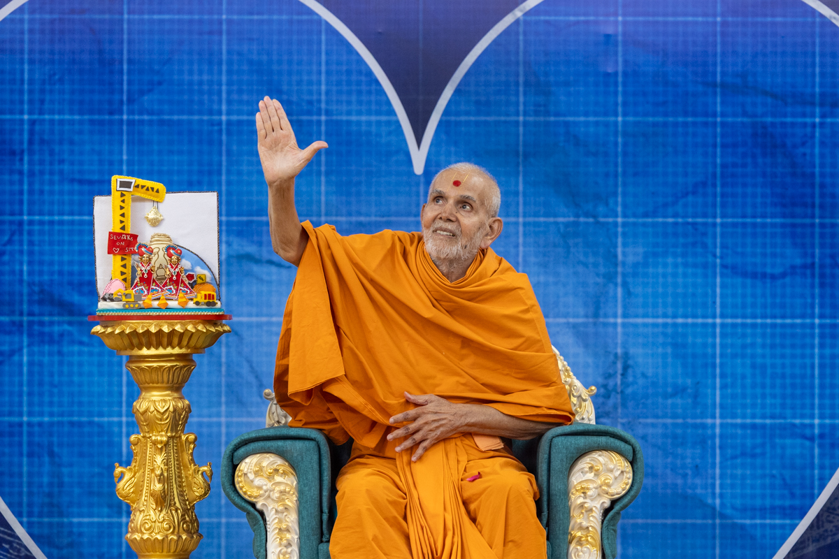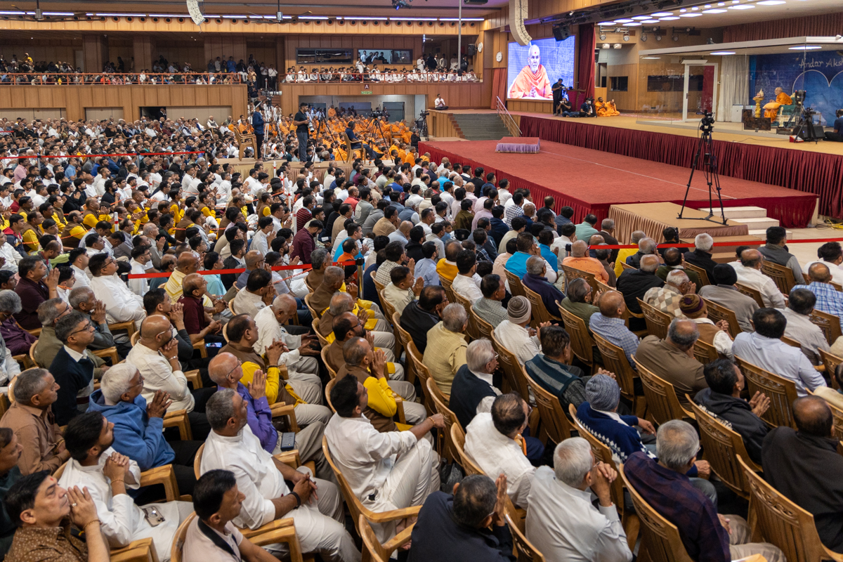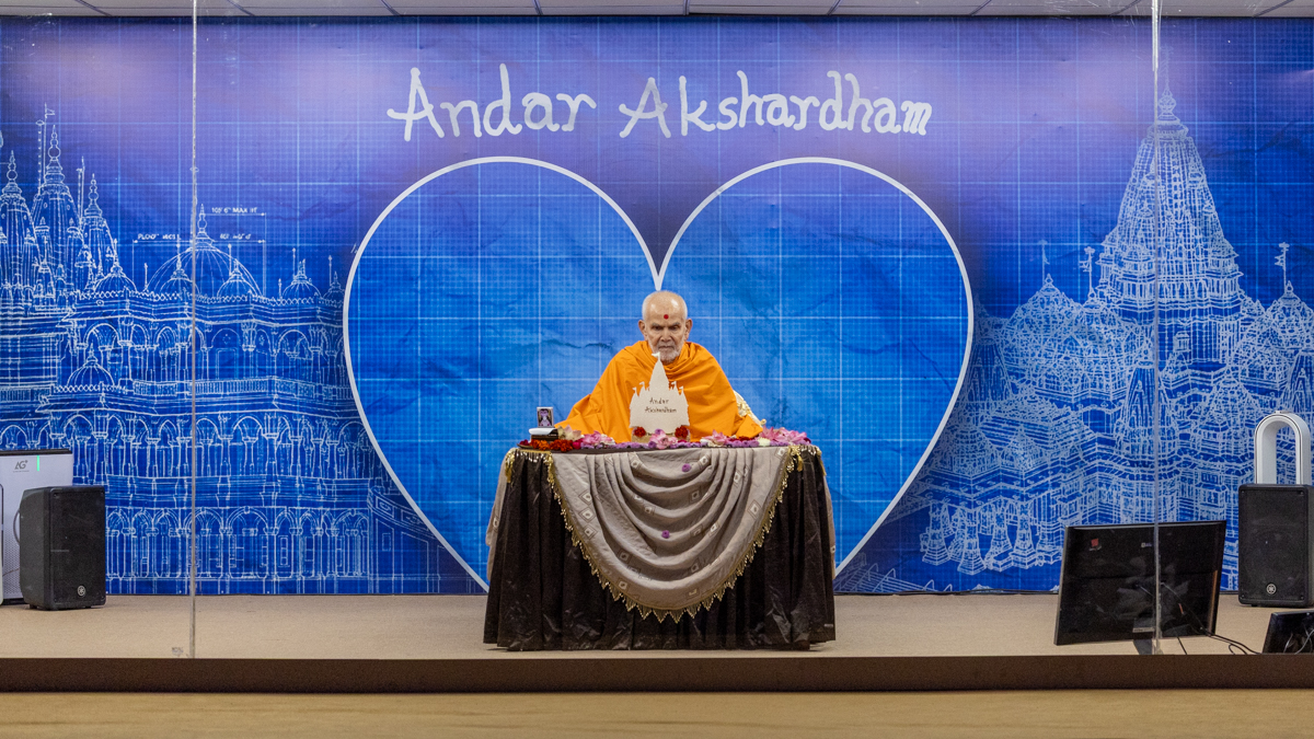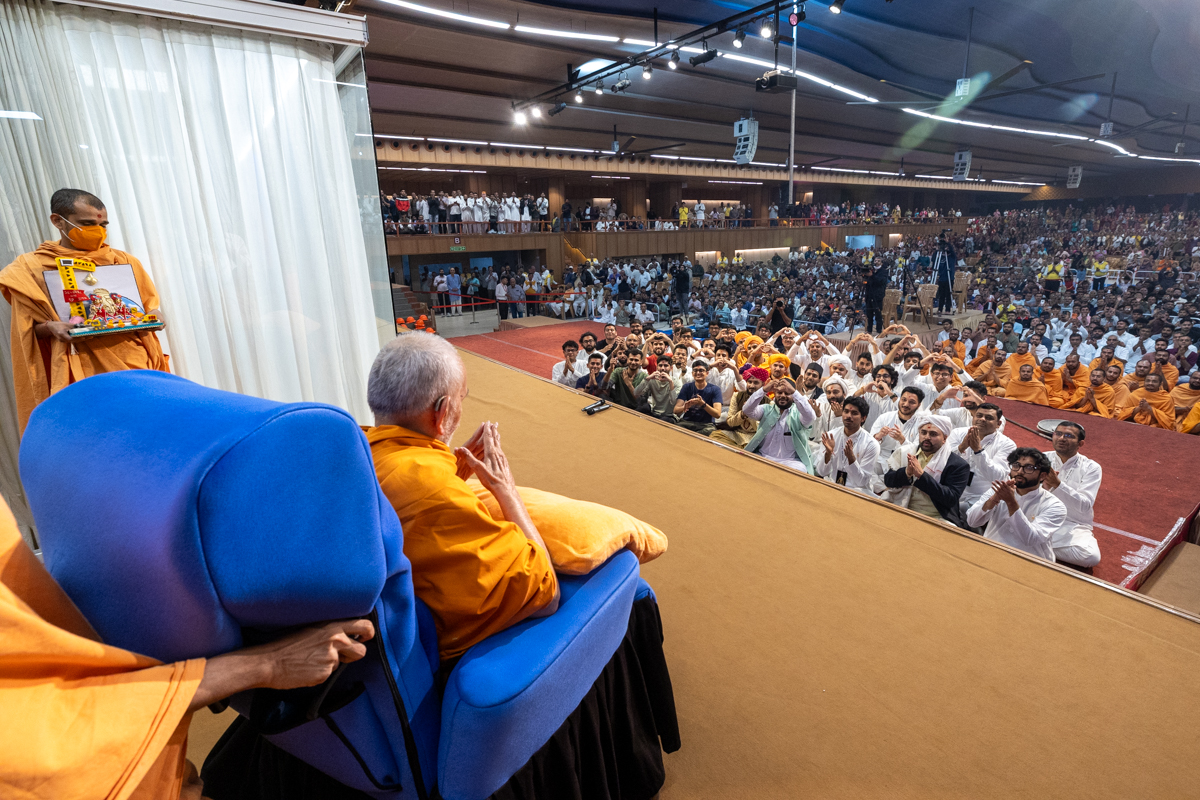 Pujya Ishwarcharan Swami doing darshan of Swamishri