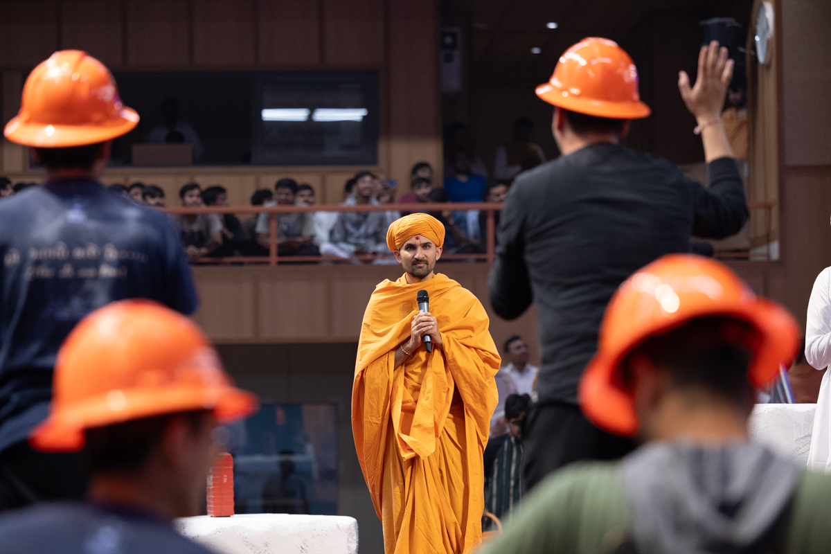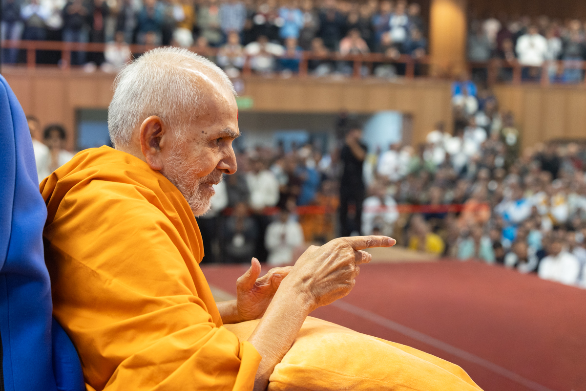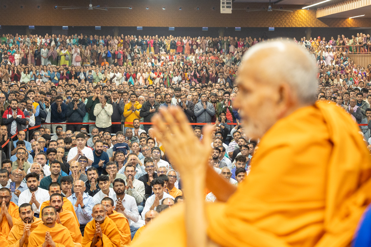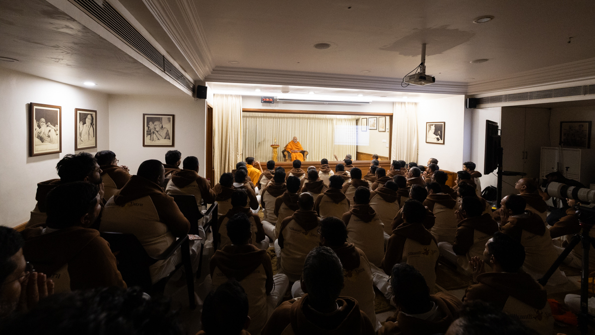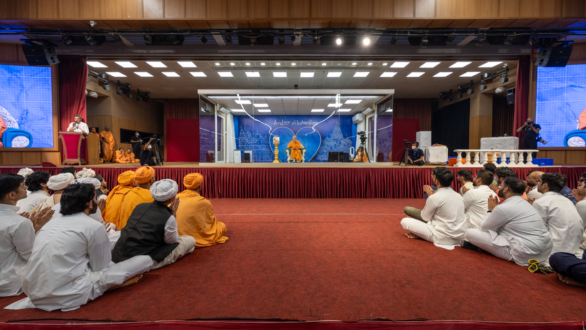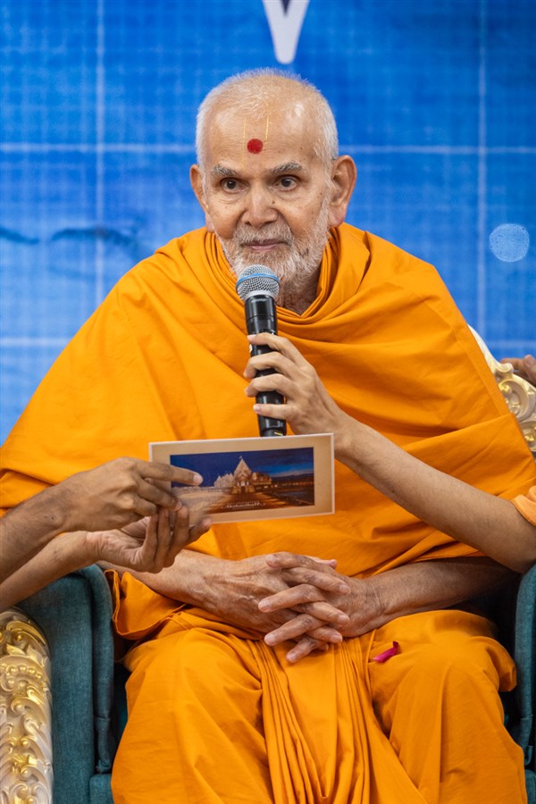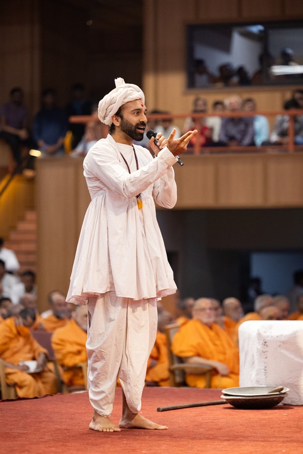 Pujya Ishwarcharan Swami doing darshan of Swamishri