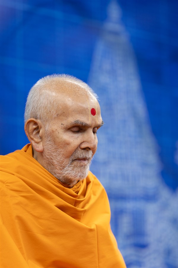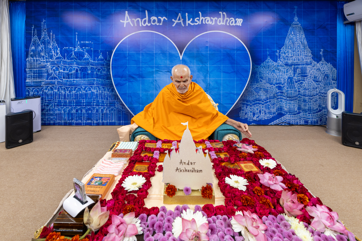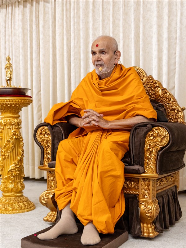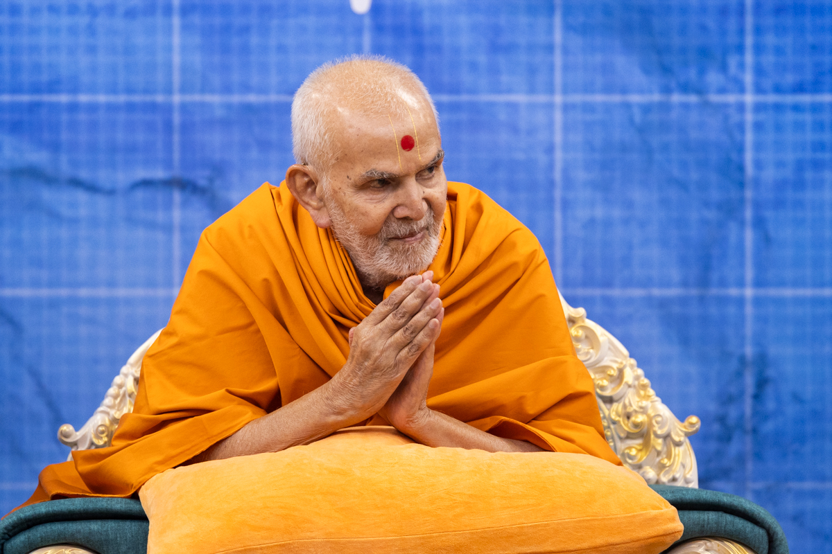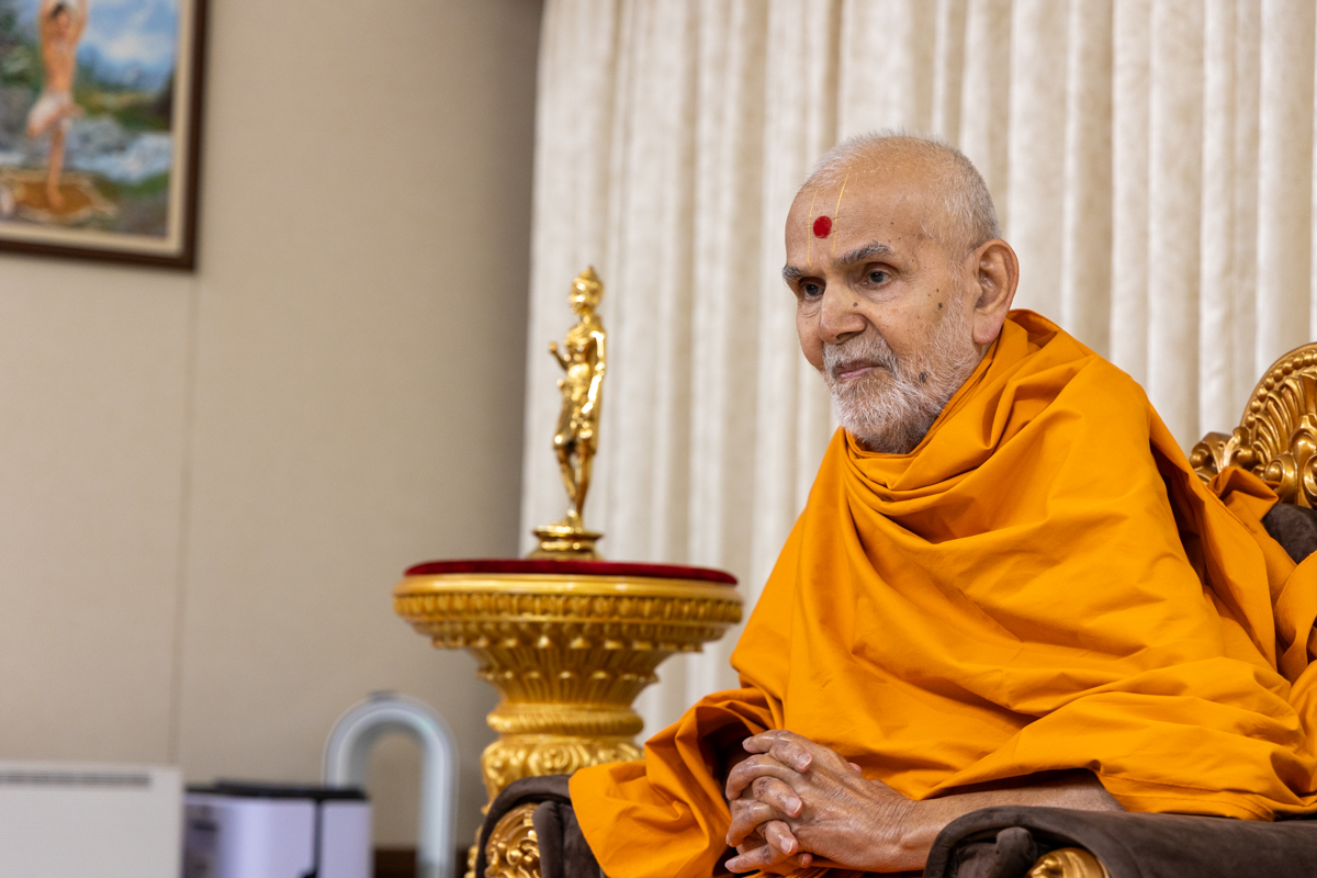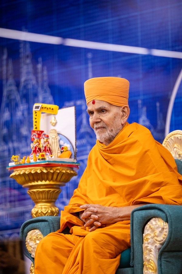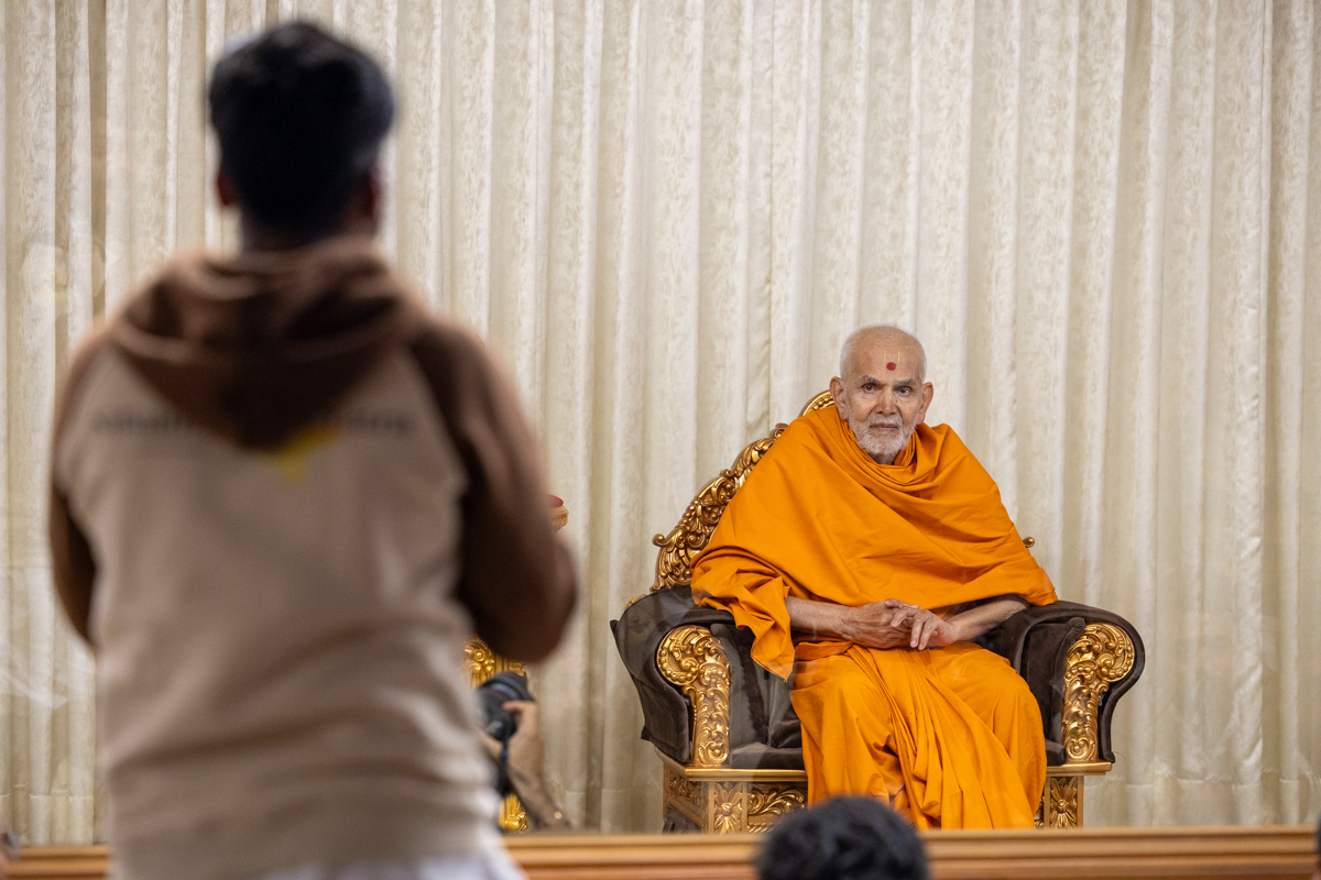 Param Pujya Mahant Swami Maharaj arrives to perform his daily puja
