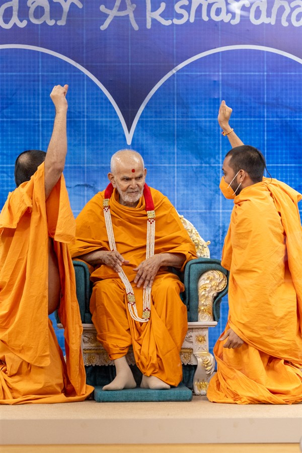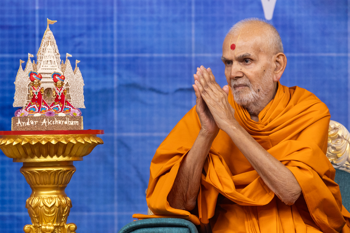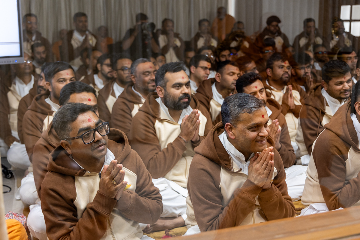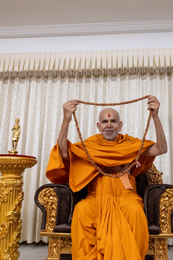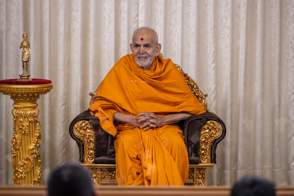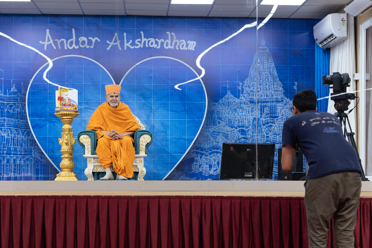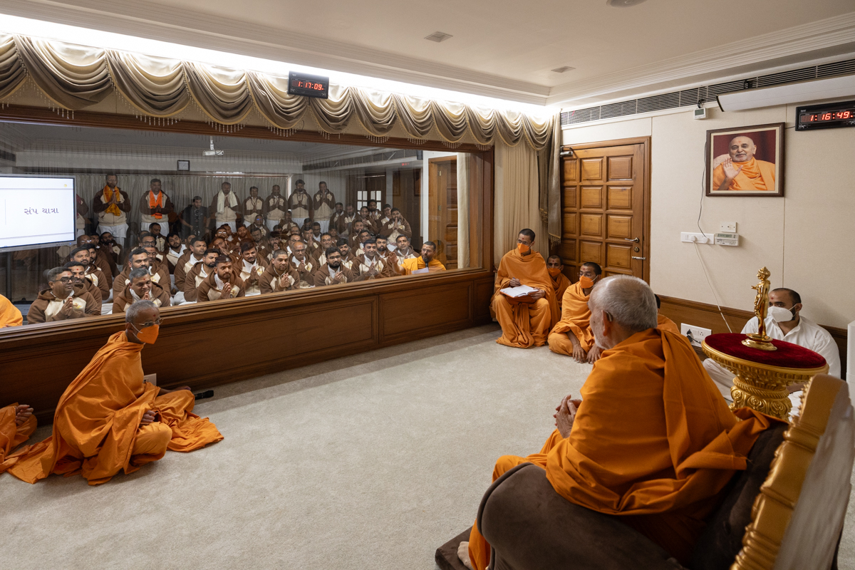 Param Pujya Mahant Swami Maharaj arrives to perform his daily puja