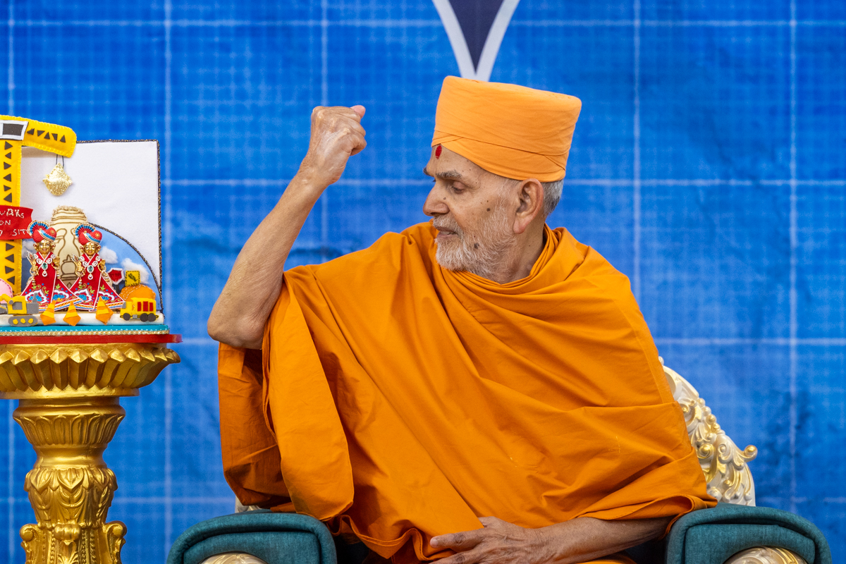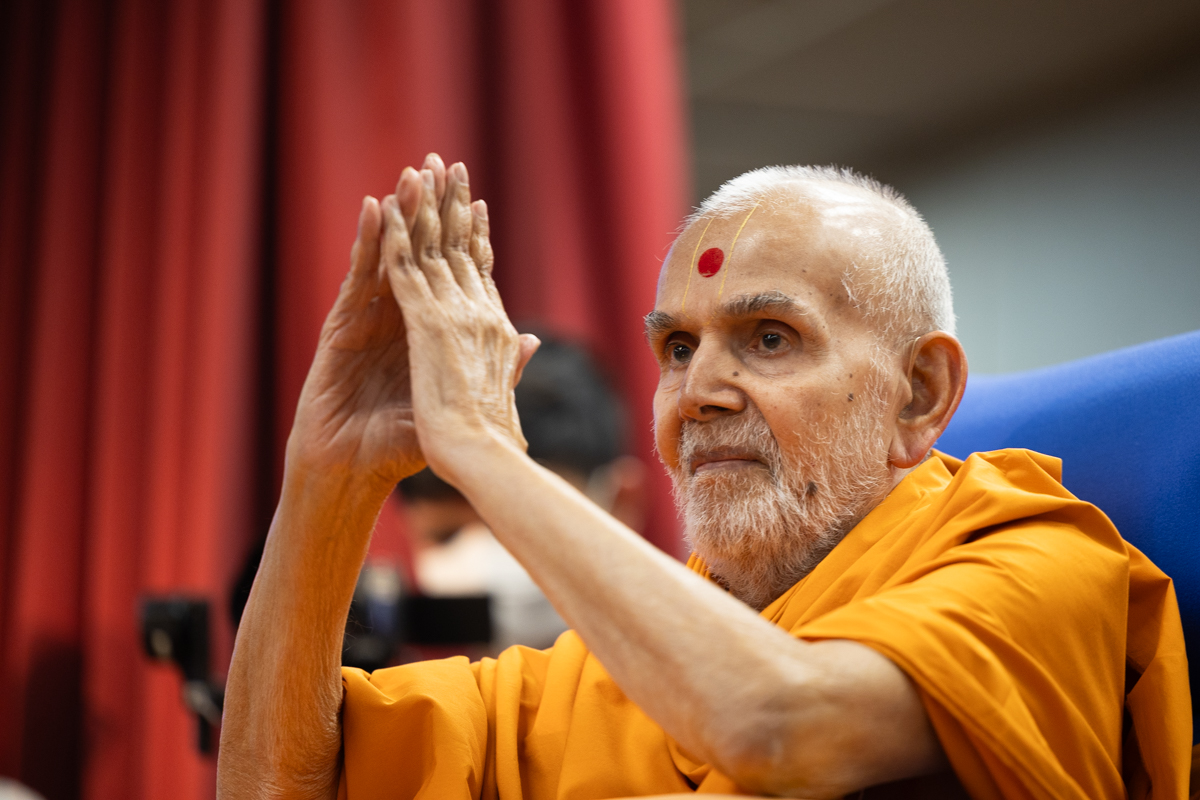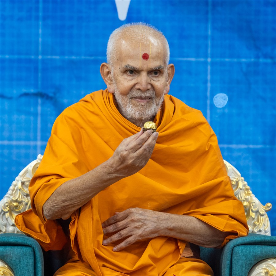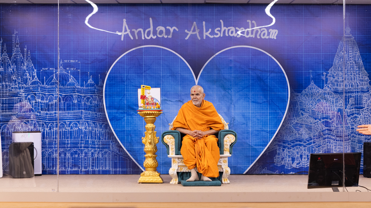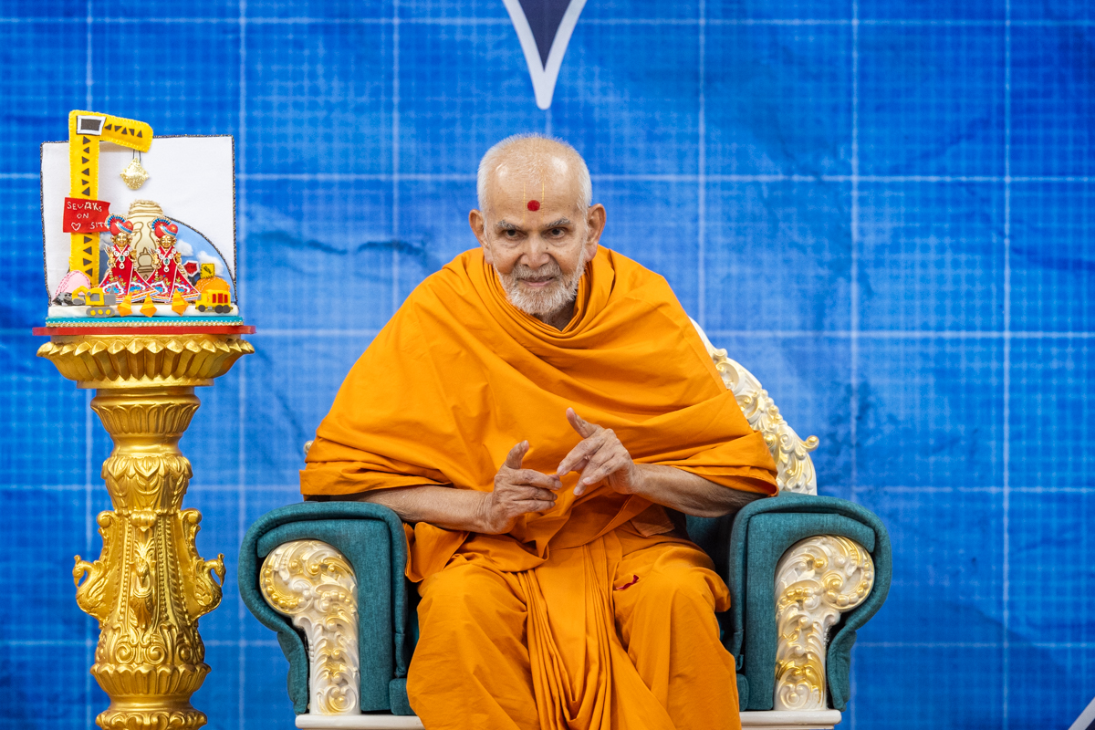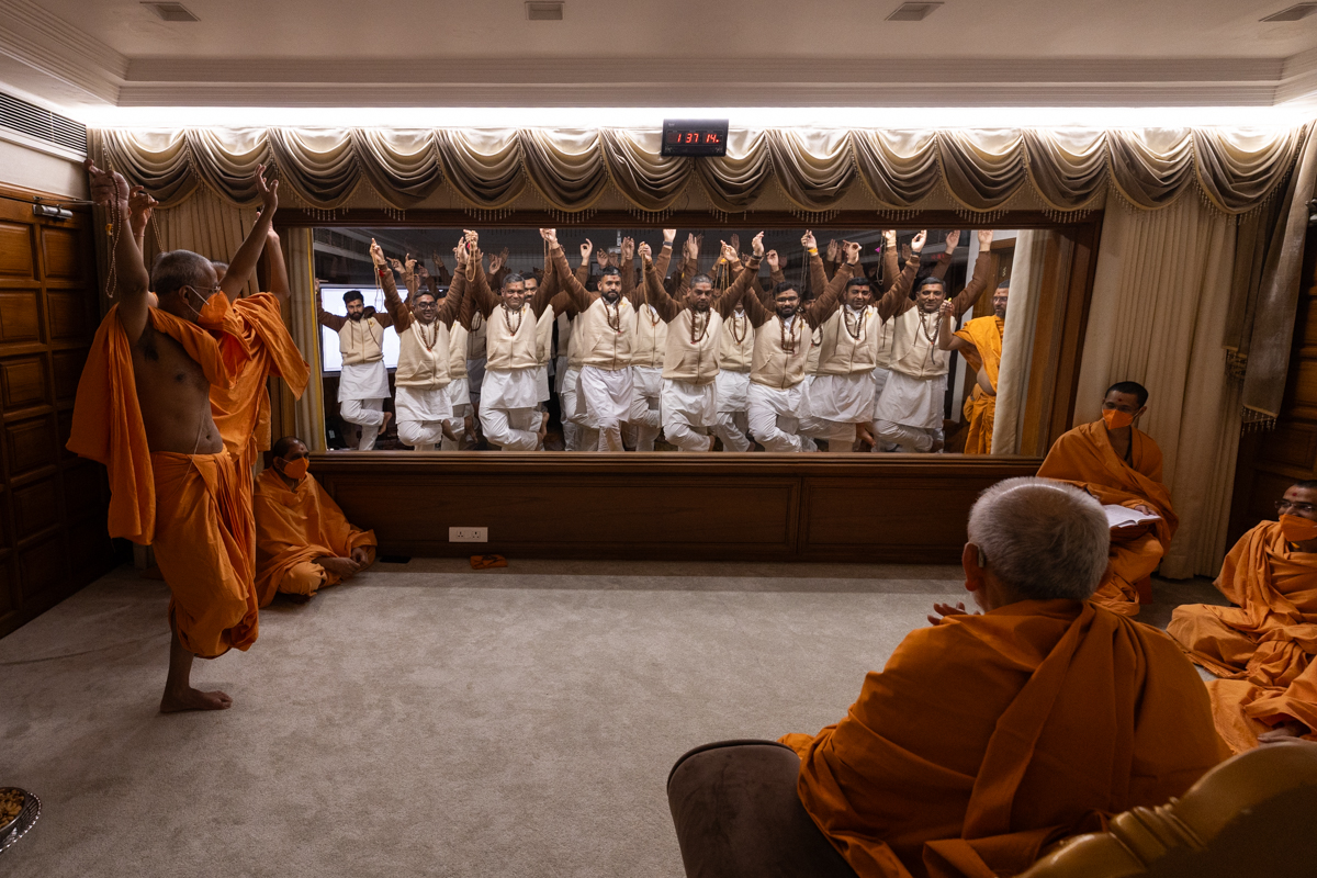 Param Pujya Mahant Swami Maharaj arrives to perform his daily puja