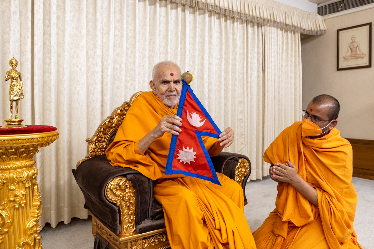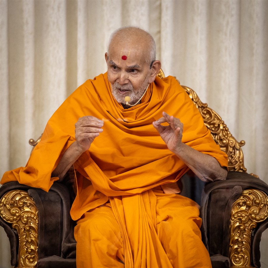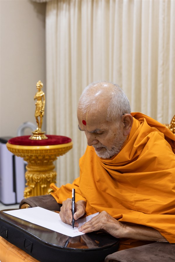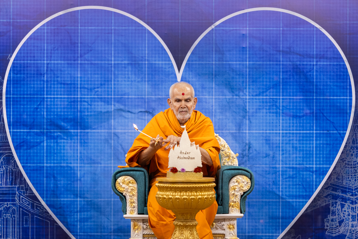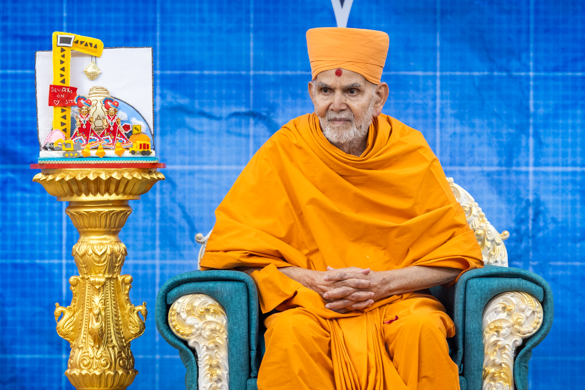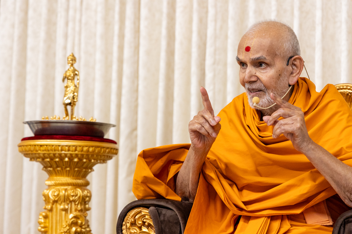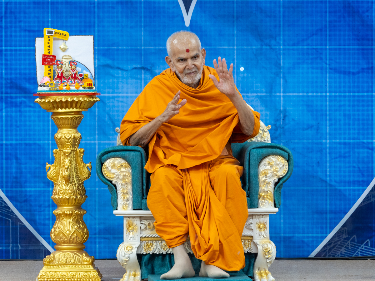 Param Pujya Mahant Swami Maharaj arrives to perform his daily puja