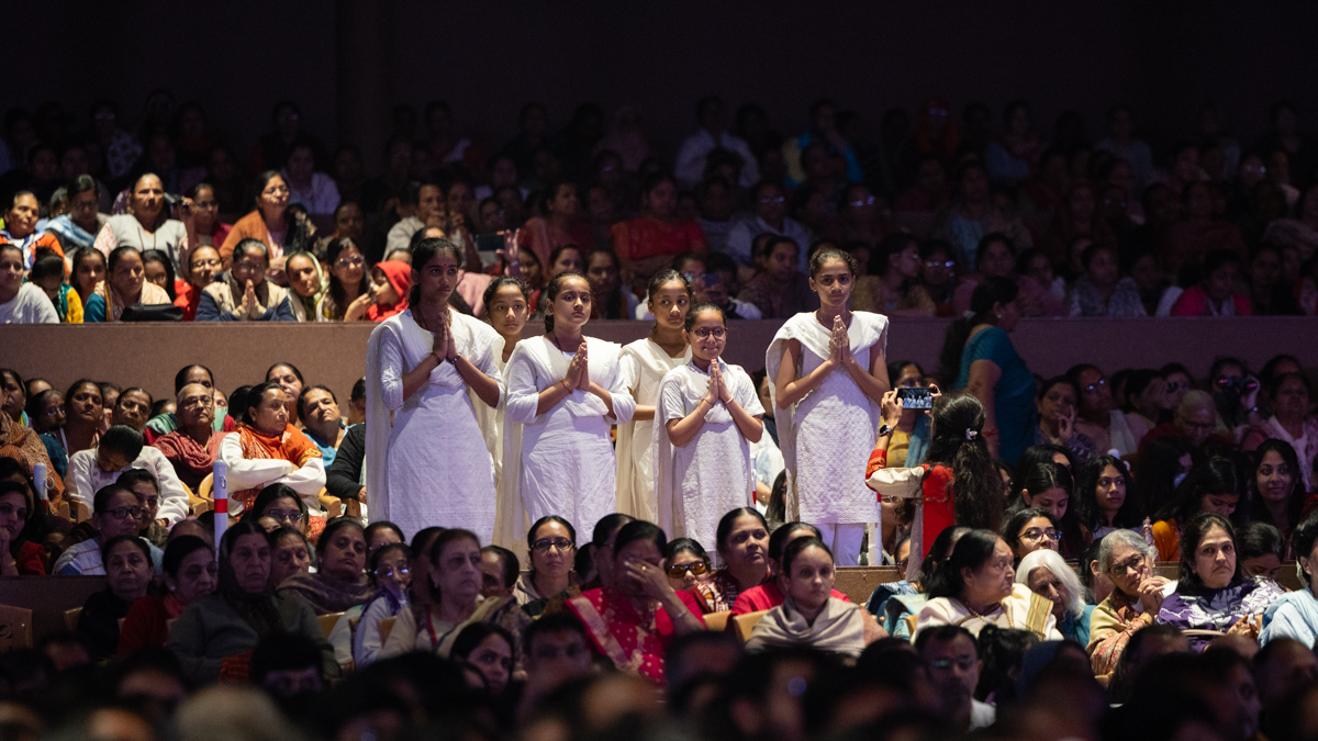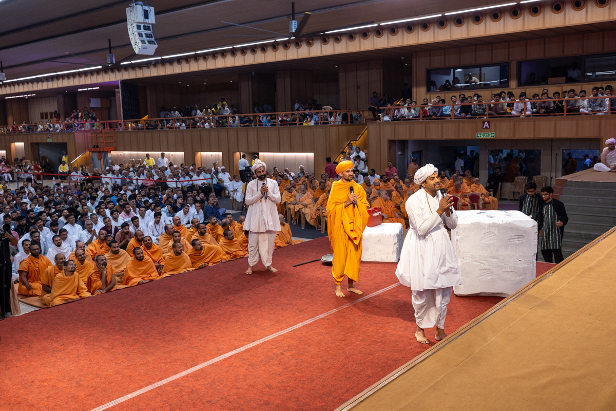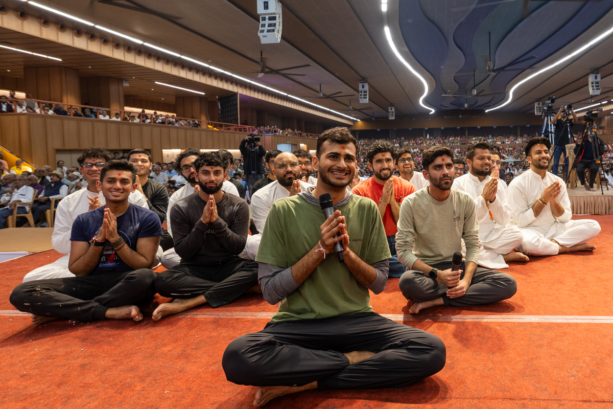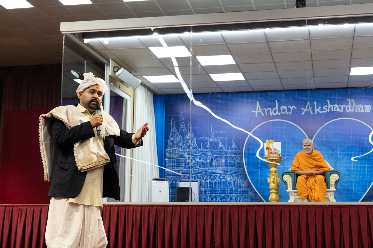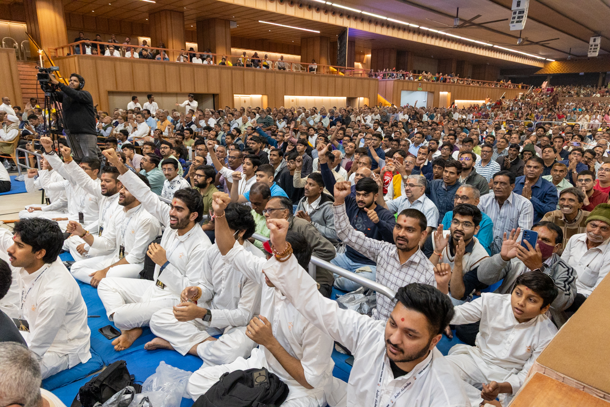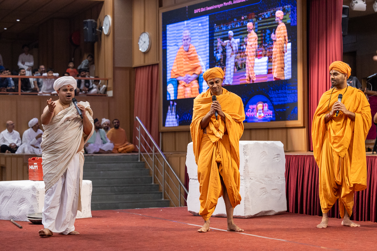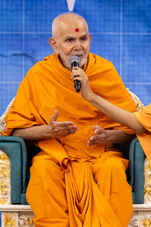 Balaks lead everyone in reciting the sadhana mantra and daily prayer in Swamishri's puja