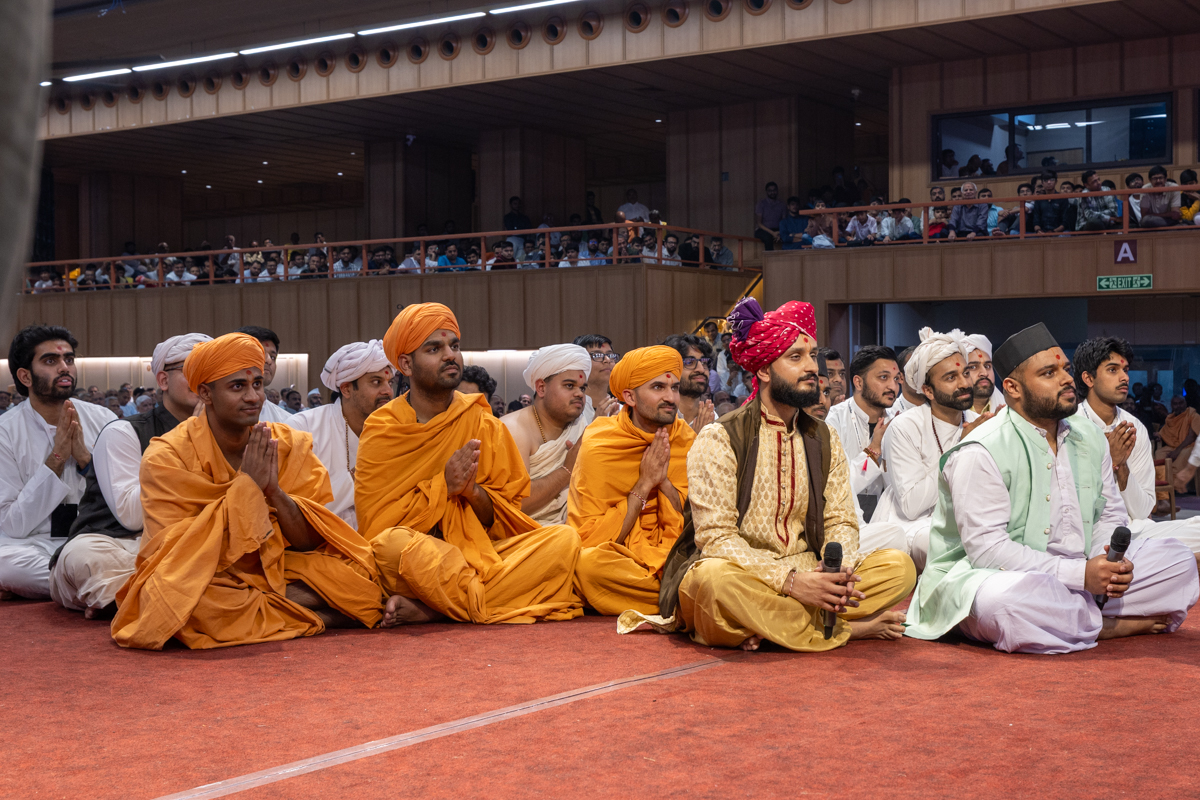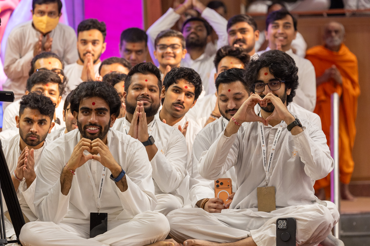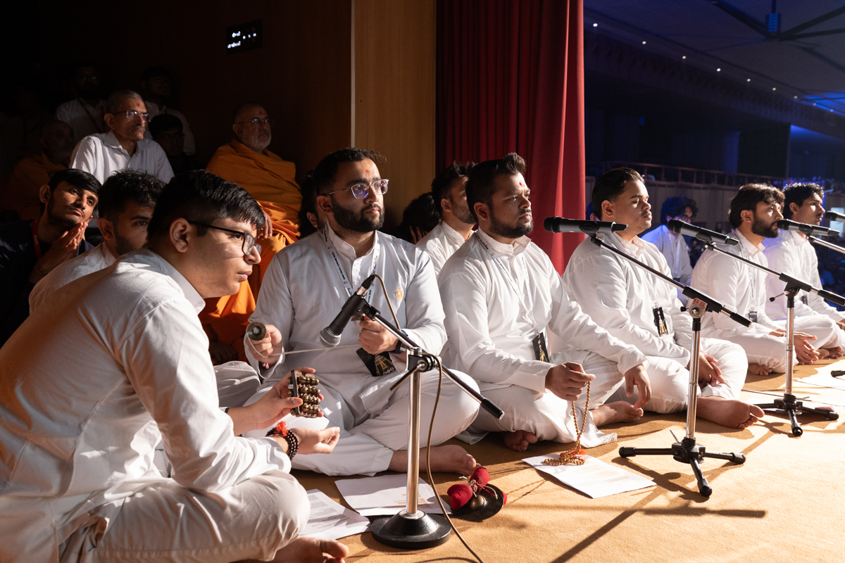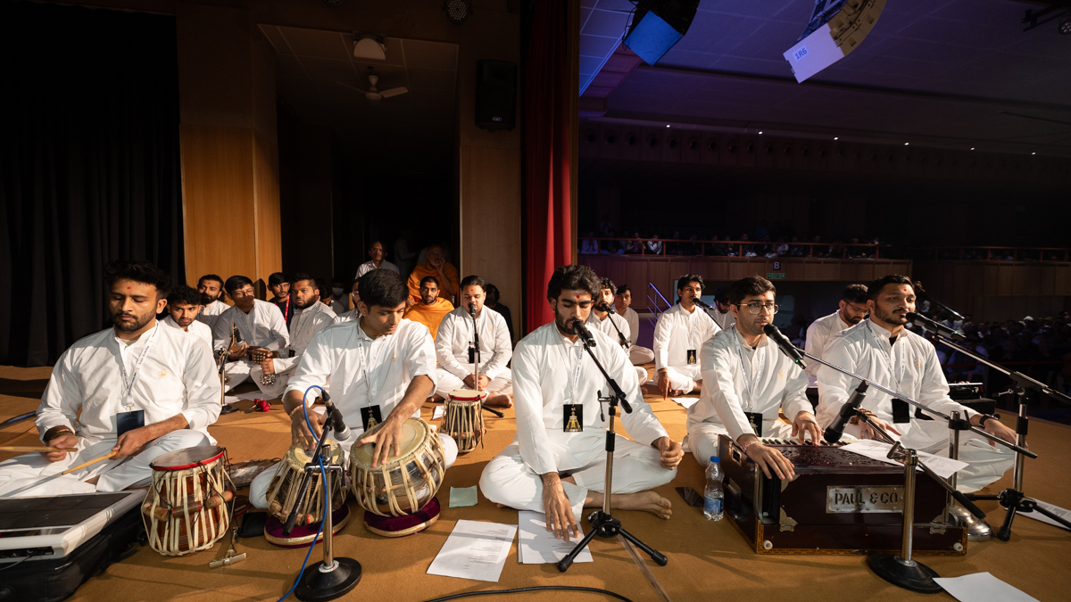 Yuvaks from North America sing kirtans in Swamishri's daily puja