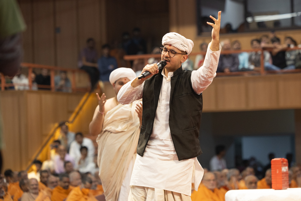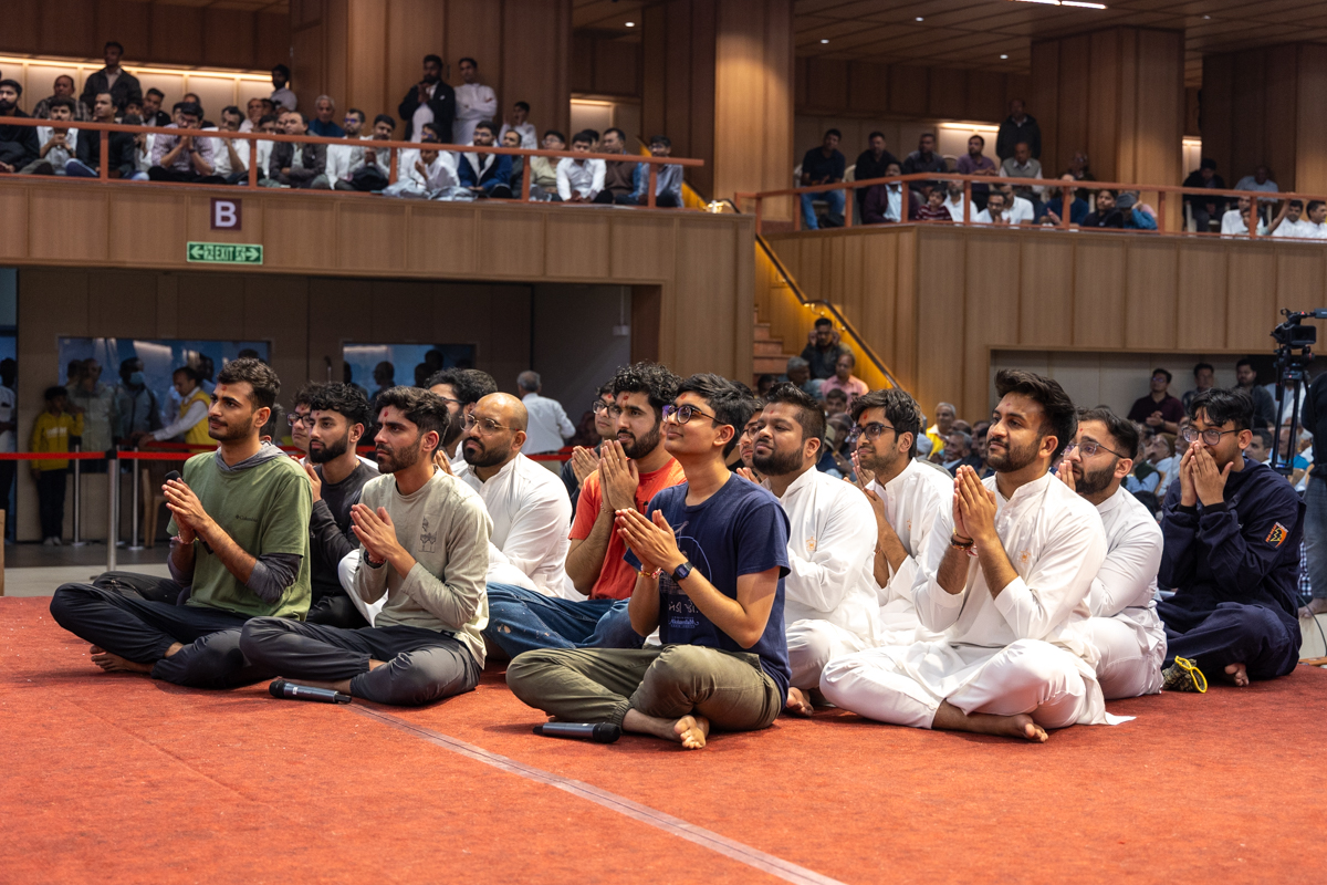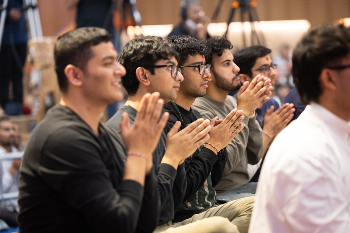 Yuvaks from North America sing kirtans in Swamishri's daily puja