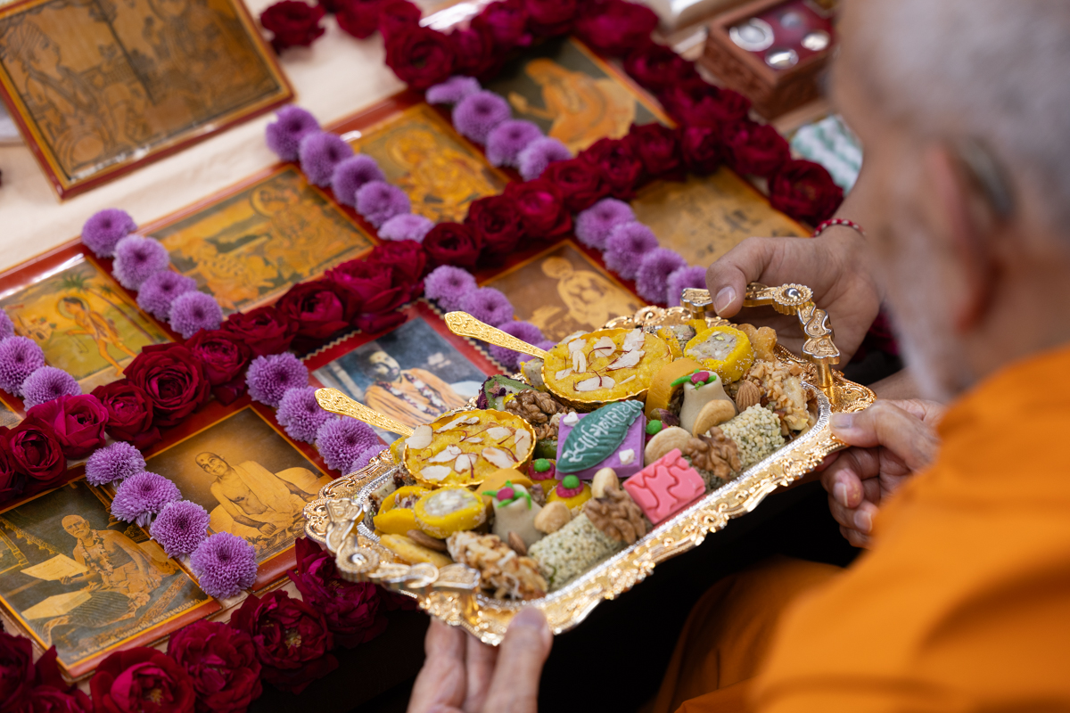 Thal is offered to Shri Harikrishna Maharaj and Shri Gunatitanand Swami Maharaj