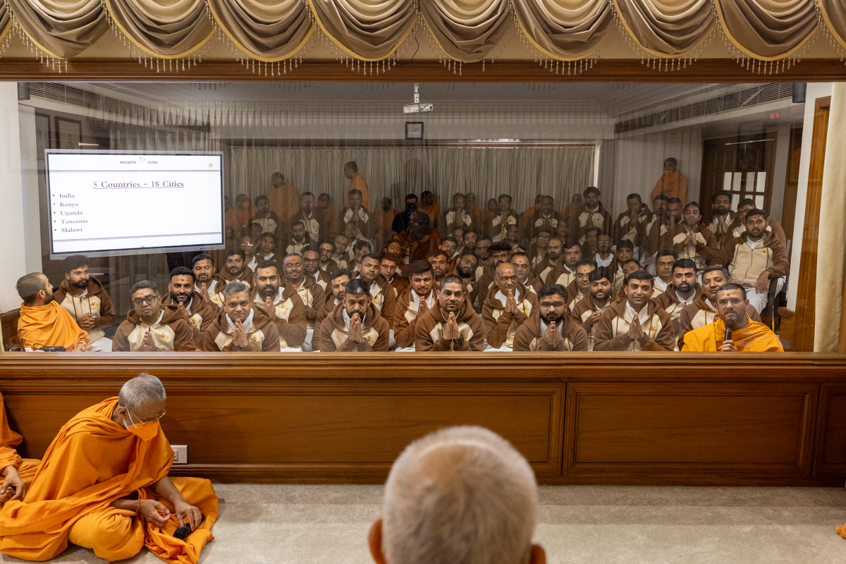 Yuvaks from Africa, doing darshan of Swamishri after their Nepal Yatra
