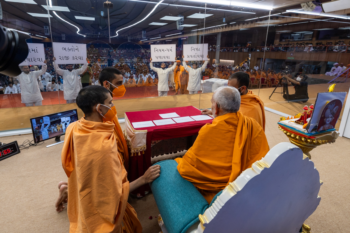 Swamishri reads the Shikshapatri and Satsang Diksha