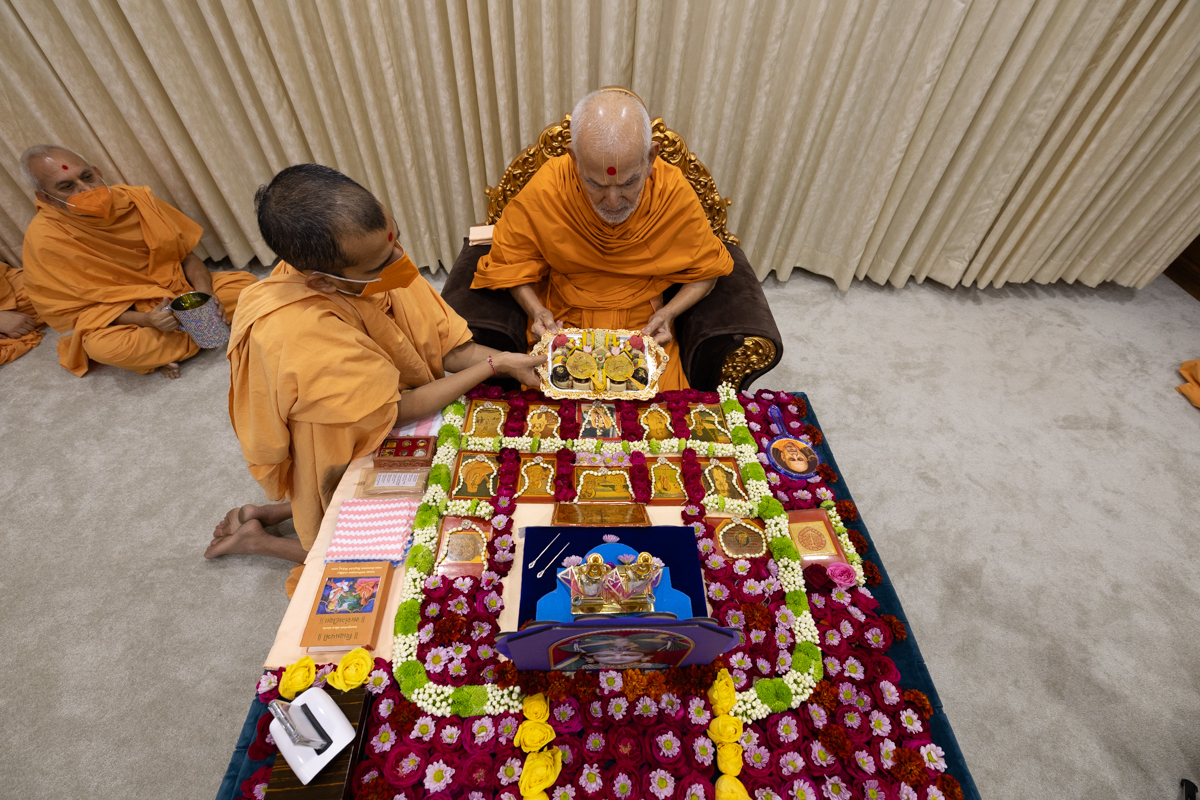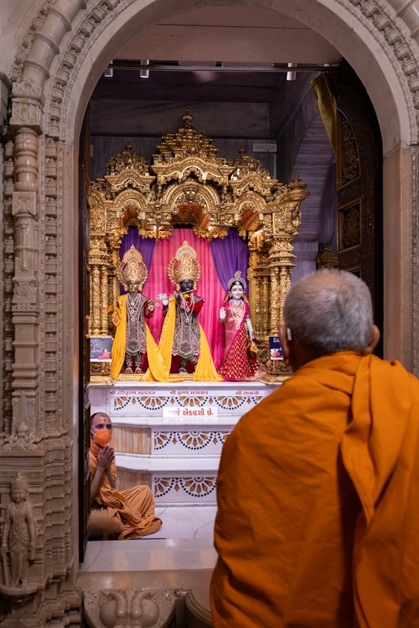 Swamis doing Swamishri's puja darshan