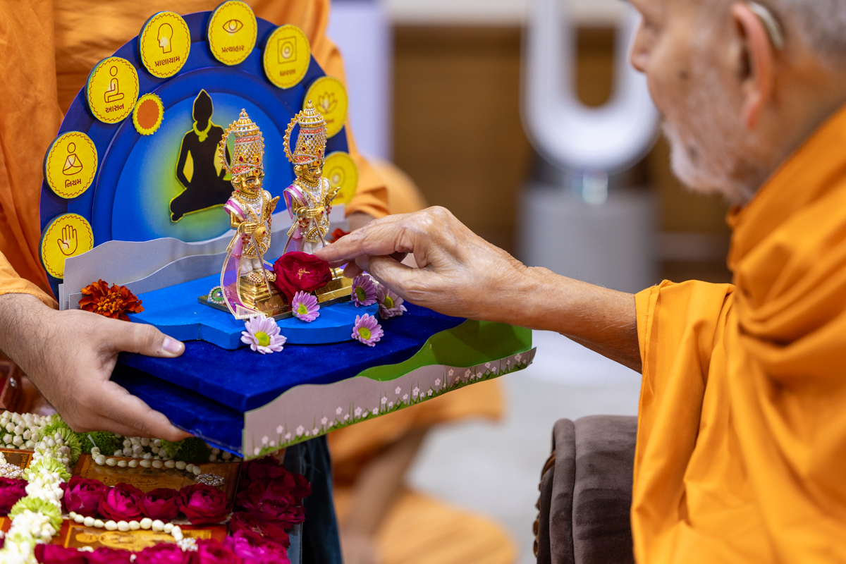 Swamishri engrossed in darshan of Shri Sukhshaiya