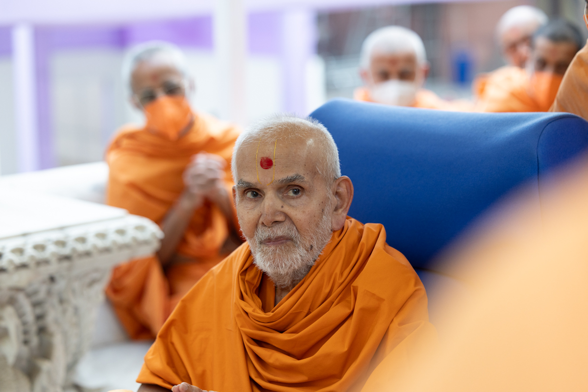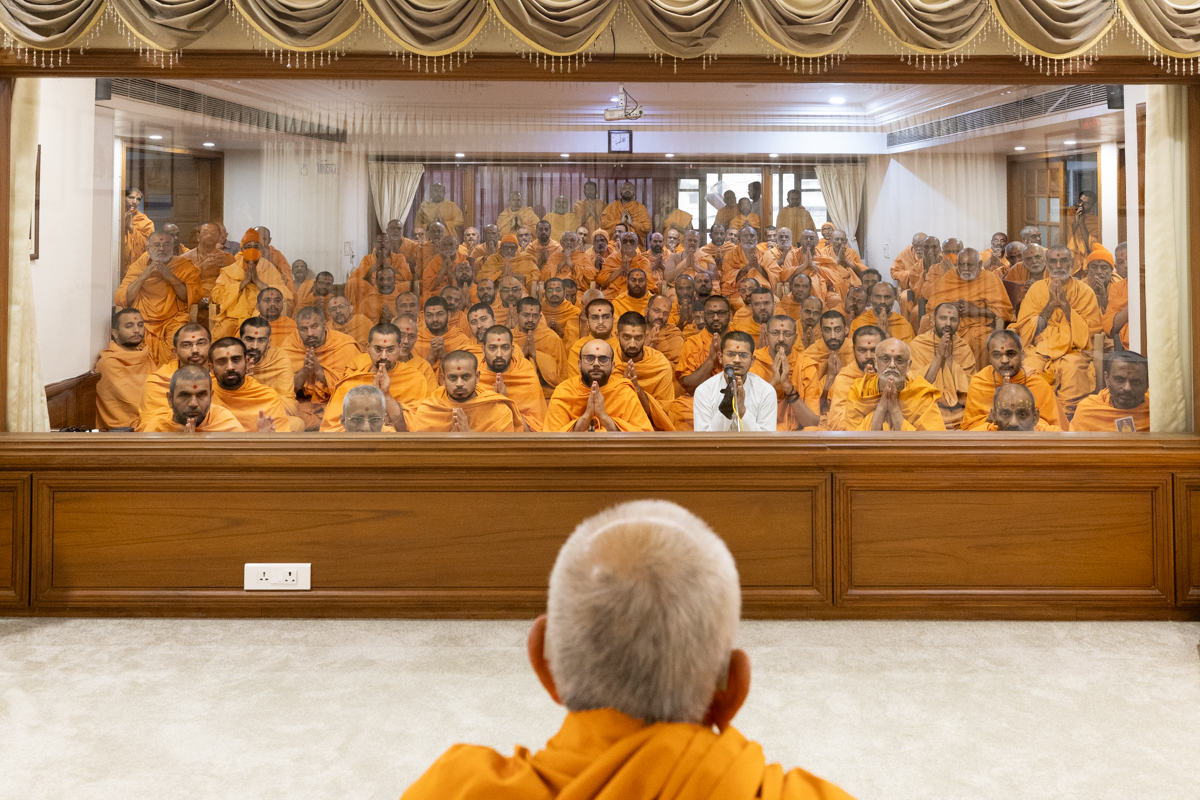 Swamishri blesses the morning assembly