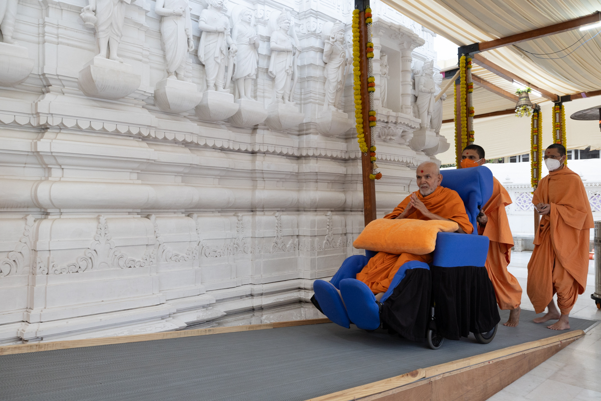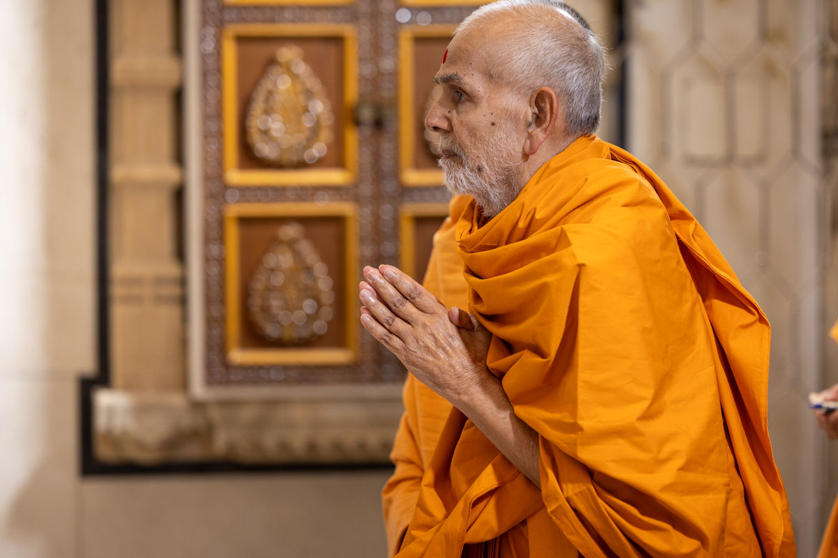 Swamishri arrives for Thakorji's darshan