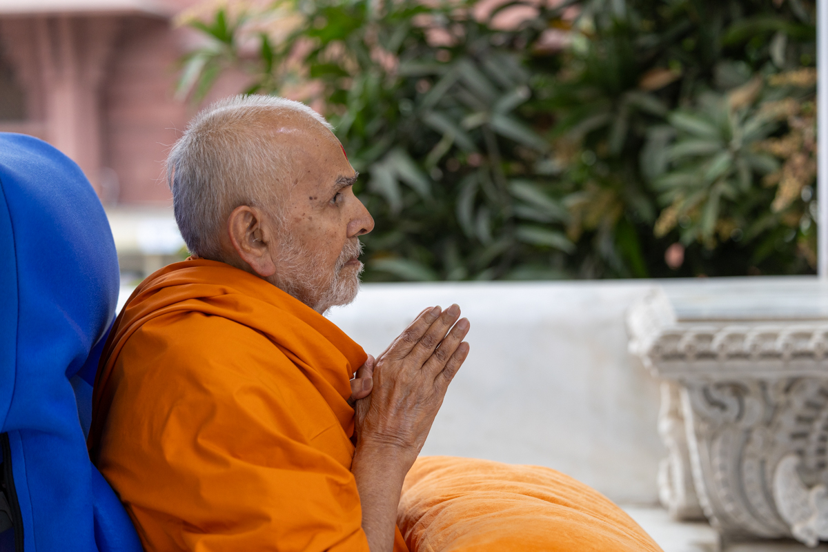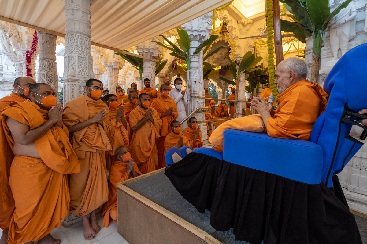 Swamishri greets all with folded hands
