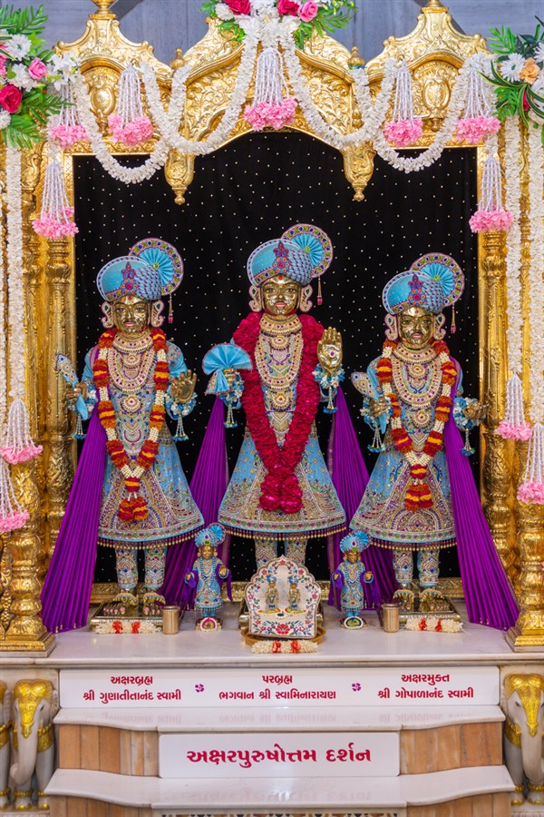 Bhagwan Swaminarayan, Aksharbrahma Gunatitanand Swami and Shri Gopalanand Swami, BAPS Shri Swaminarayan Mandir, Sarangpur