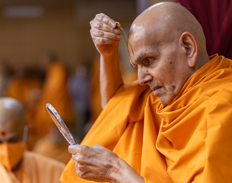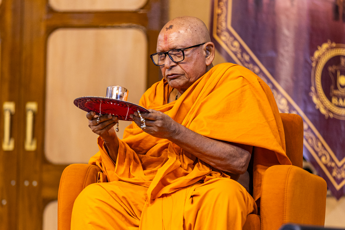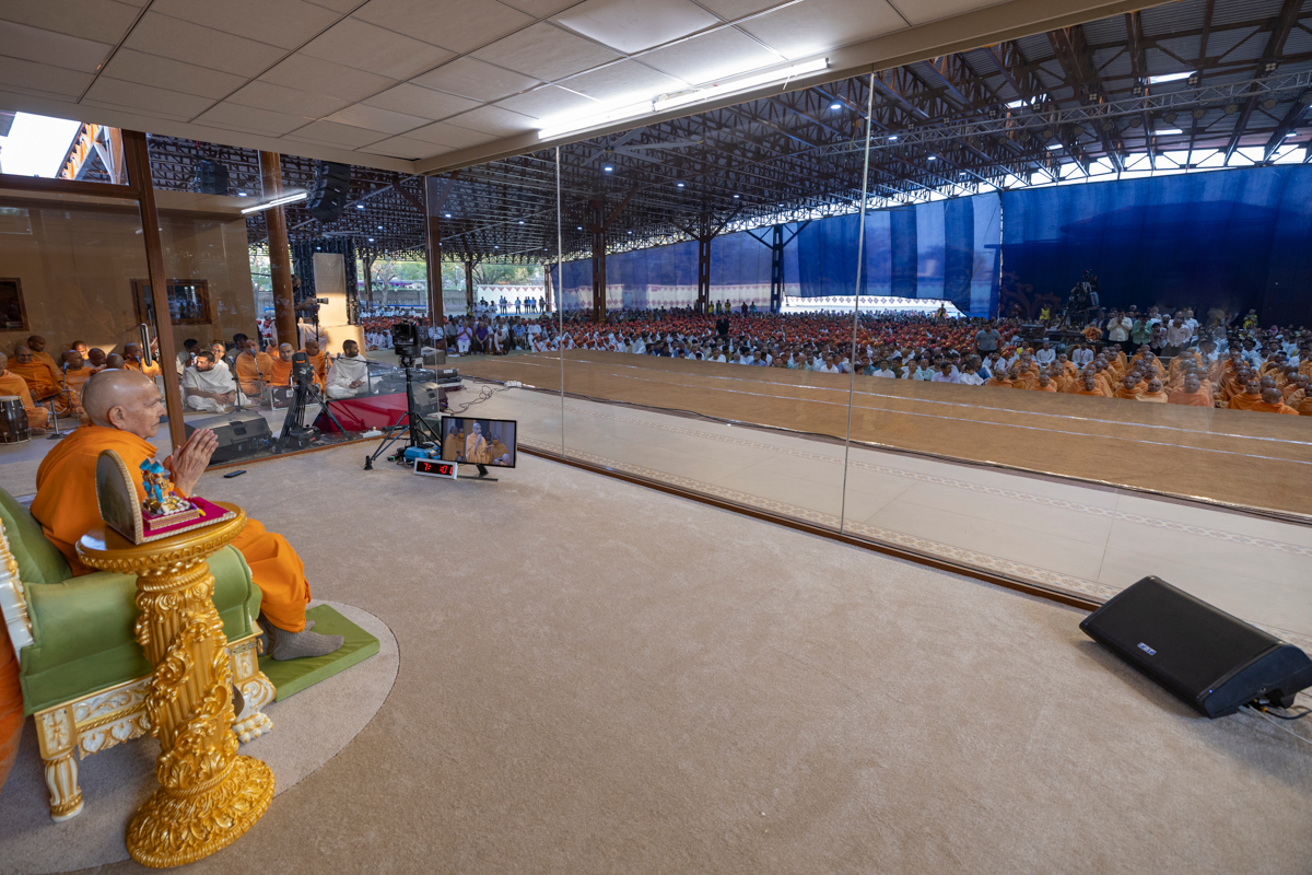 Swamishri blesses during the afternoon assembly