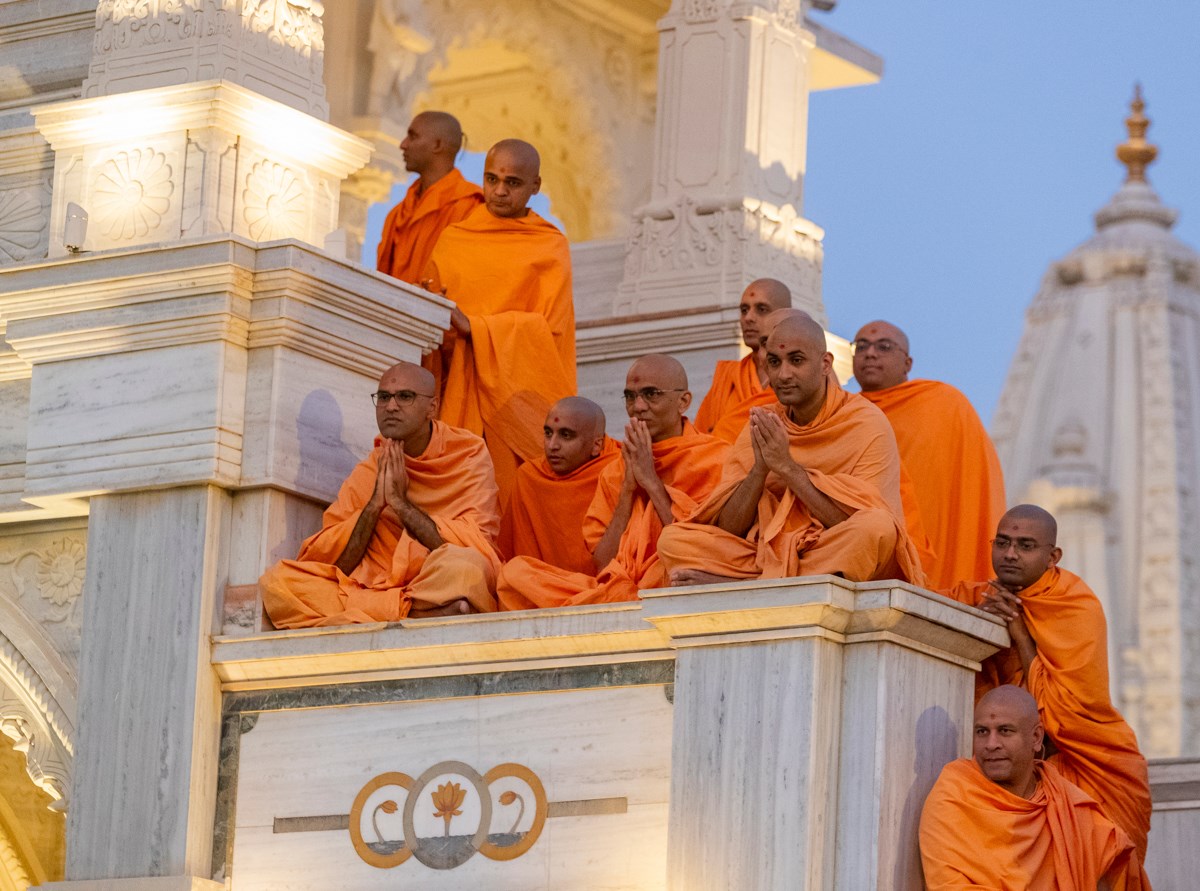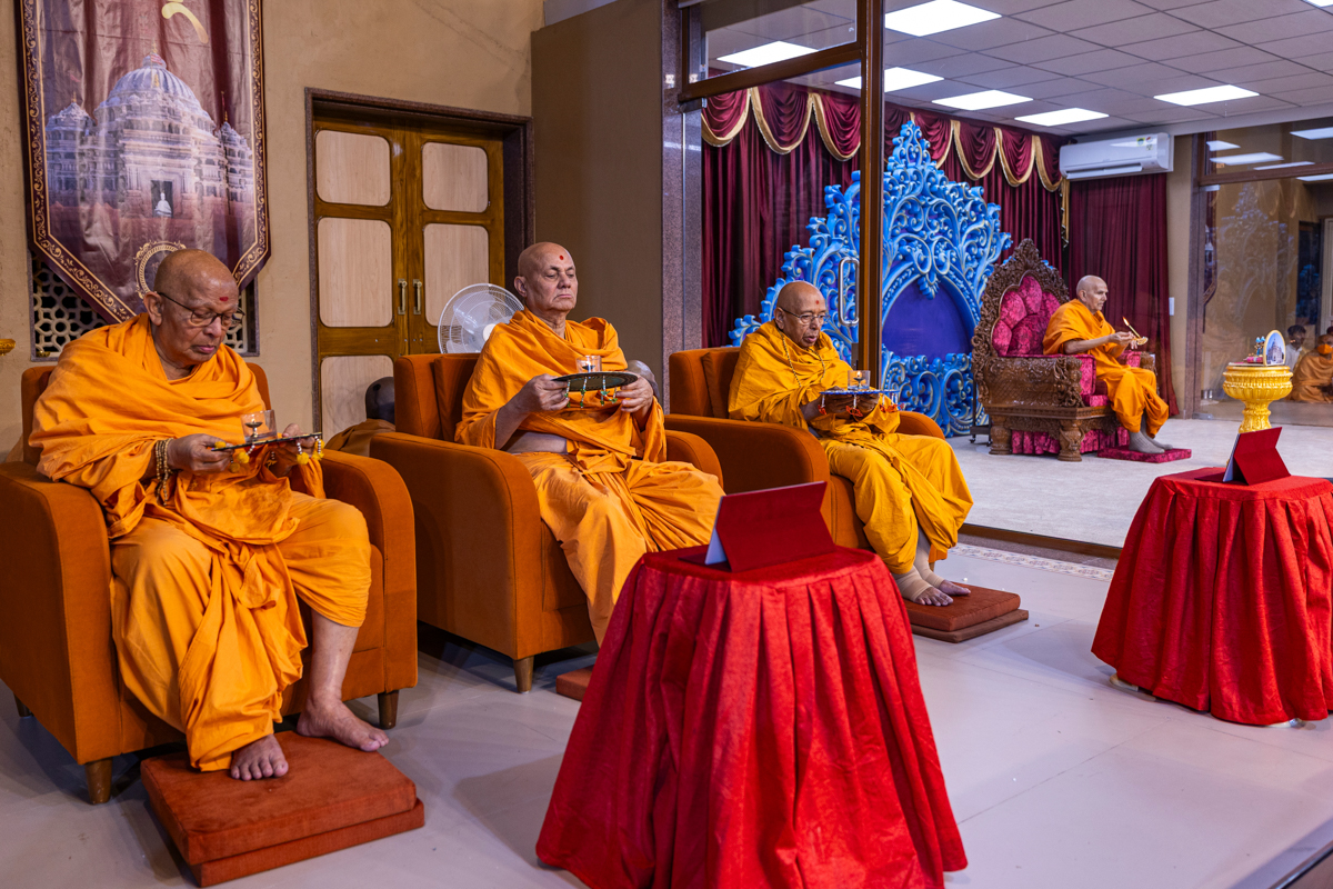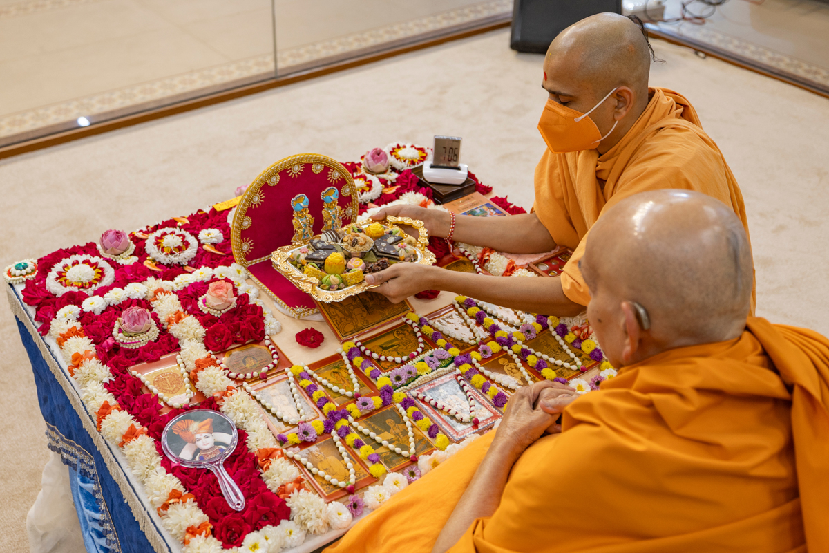 Swamis doing Swamishri's puja darshan