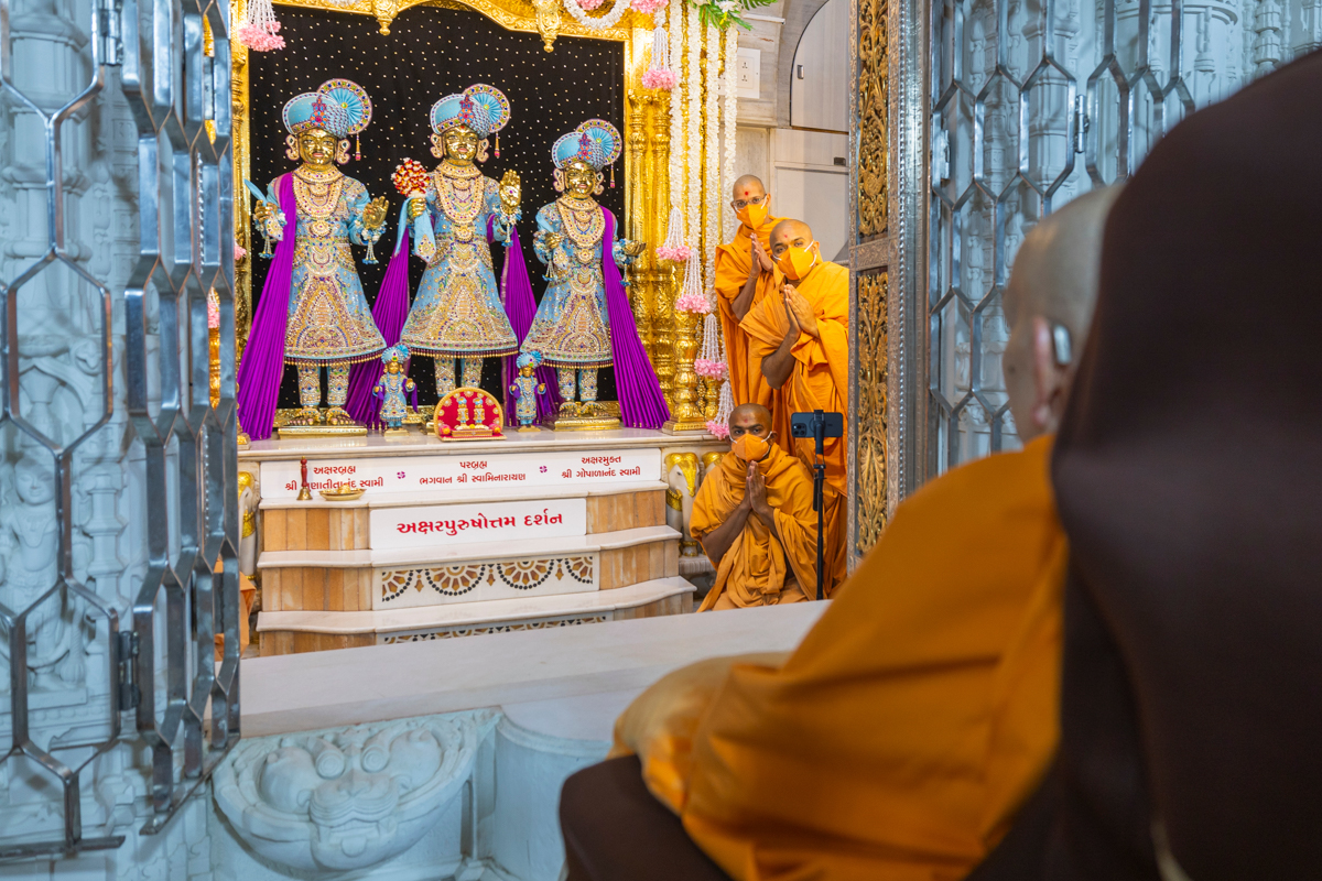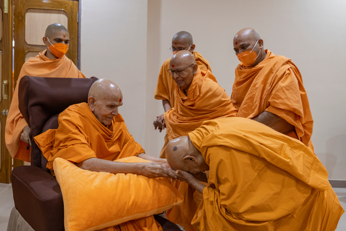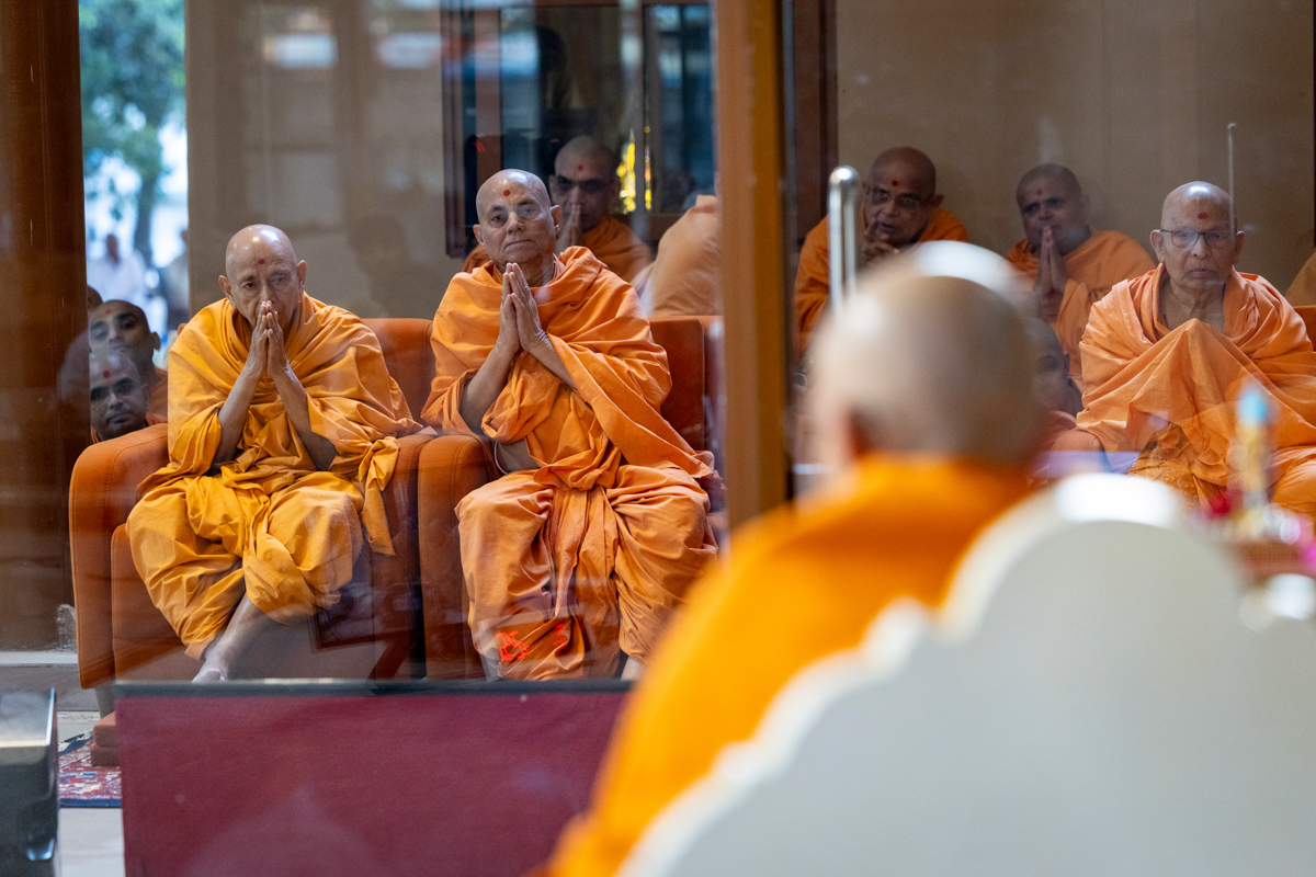 Senior swamis doing darshan of Swamishri