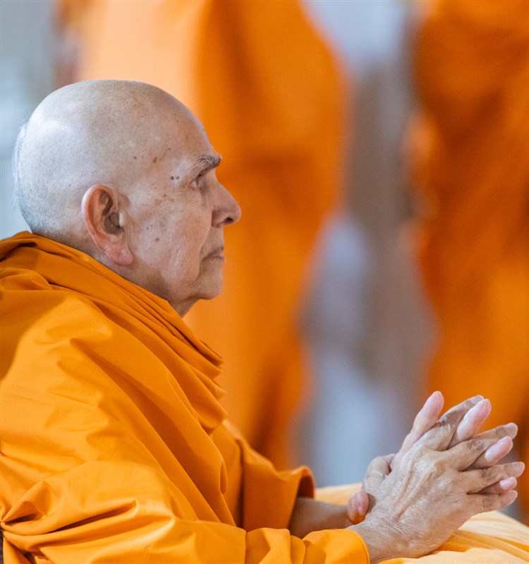 Swamishri meditates in his daily puja
