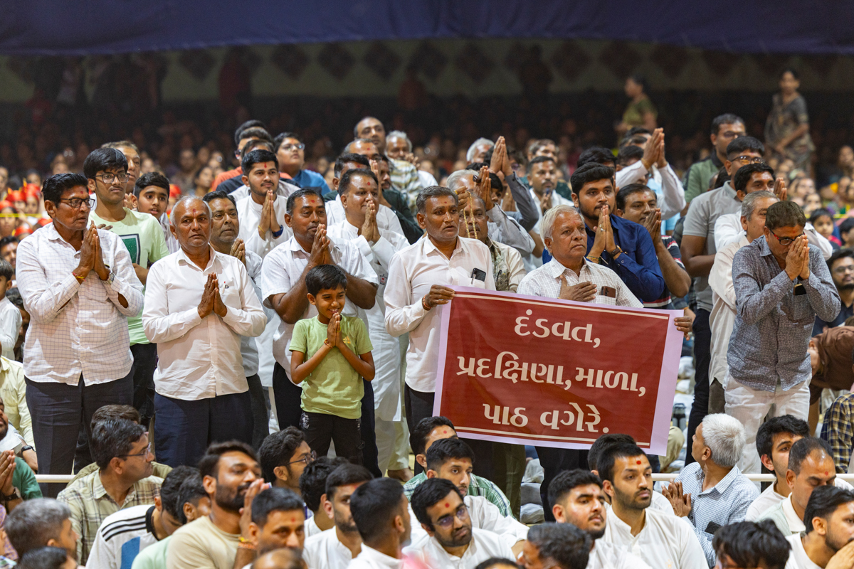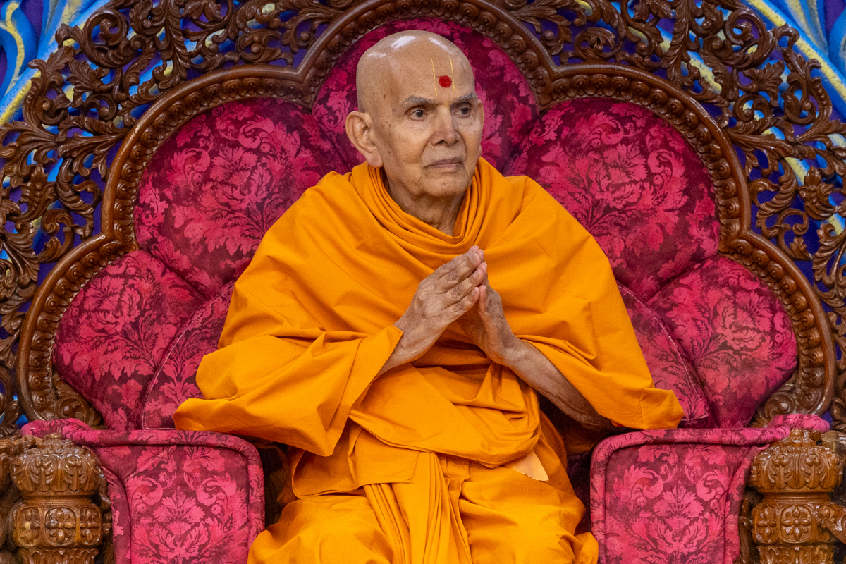Swamishri greets all with folded hands