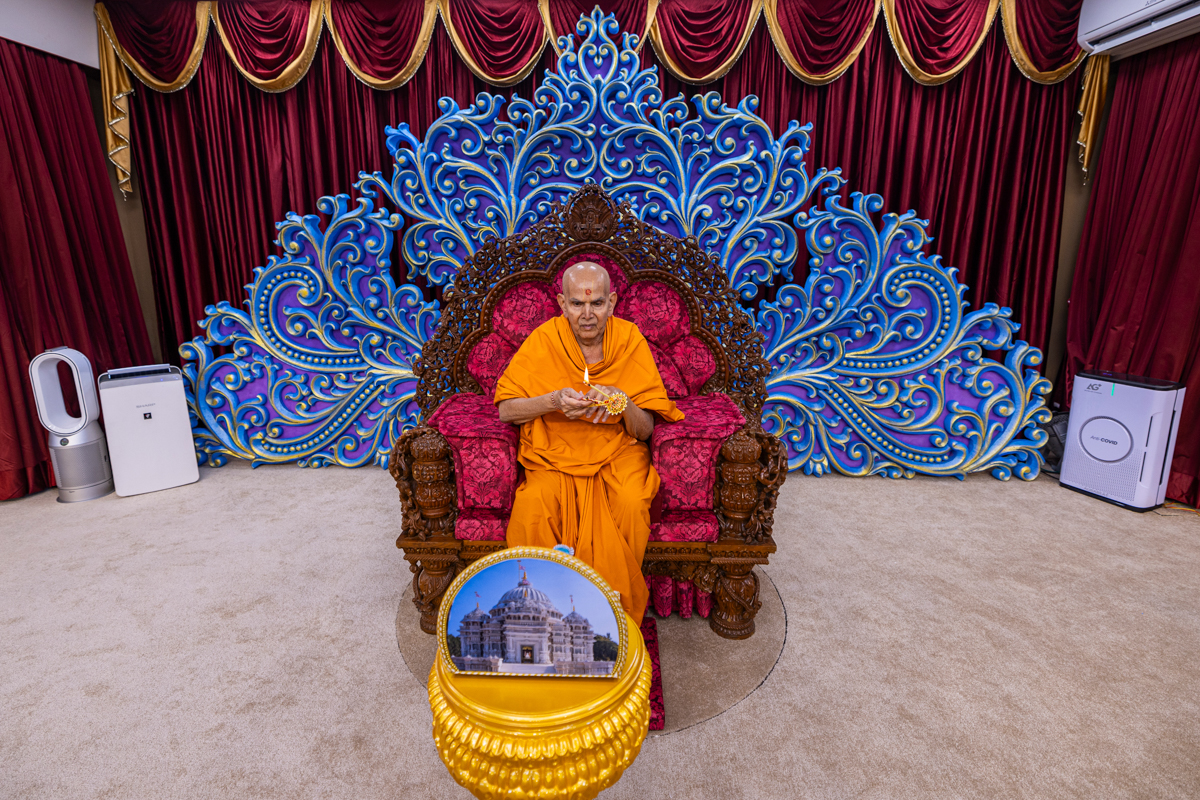Swamishri performs the morning arti