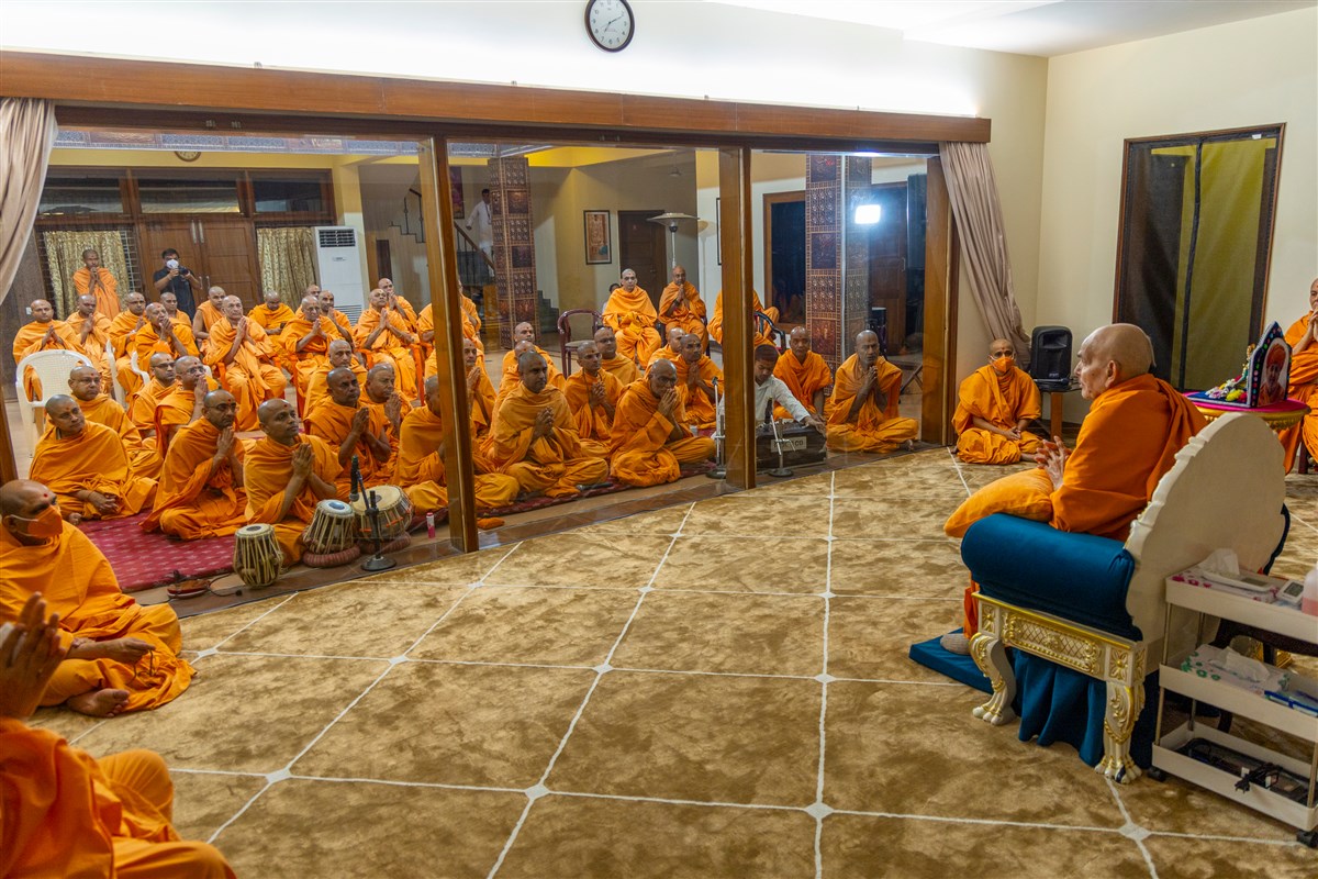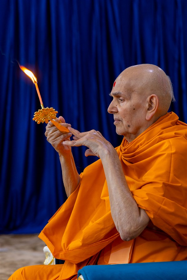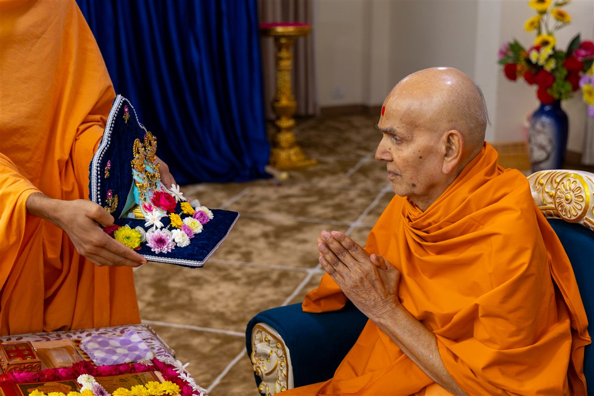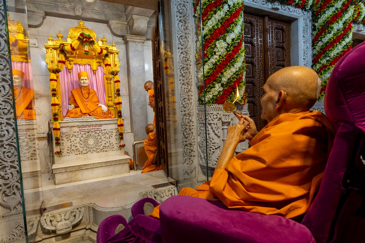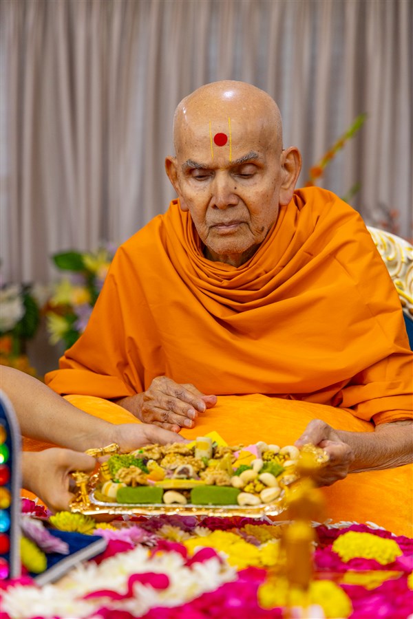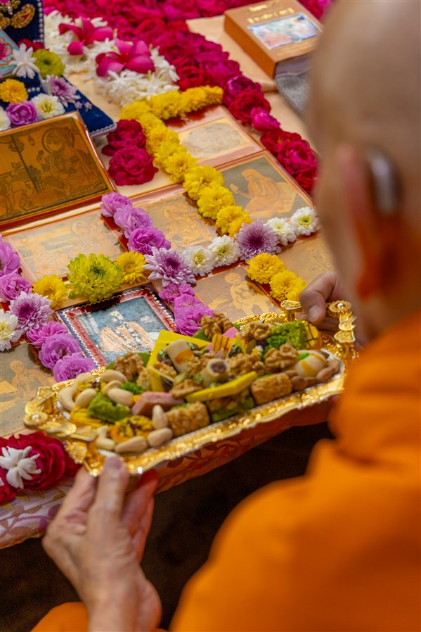 Swamishri offers thal to Brahmaswarup Pramukh Swami Maharaj