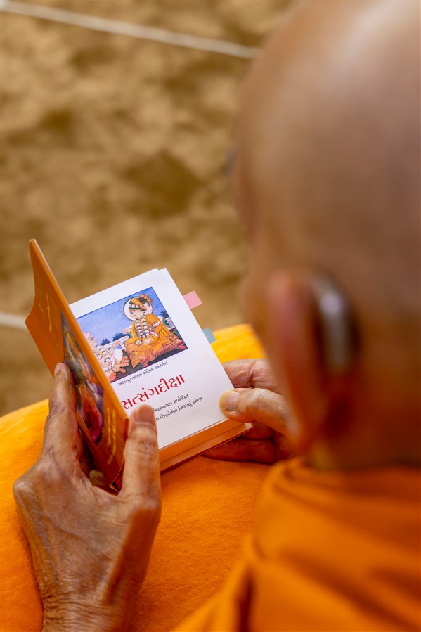 Swamishri reads the Shikshapatri and Satsang Diksha