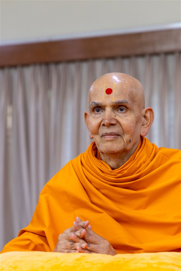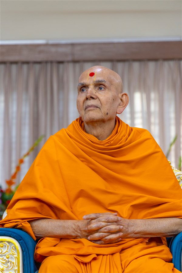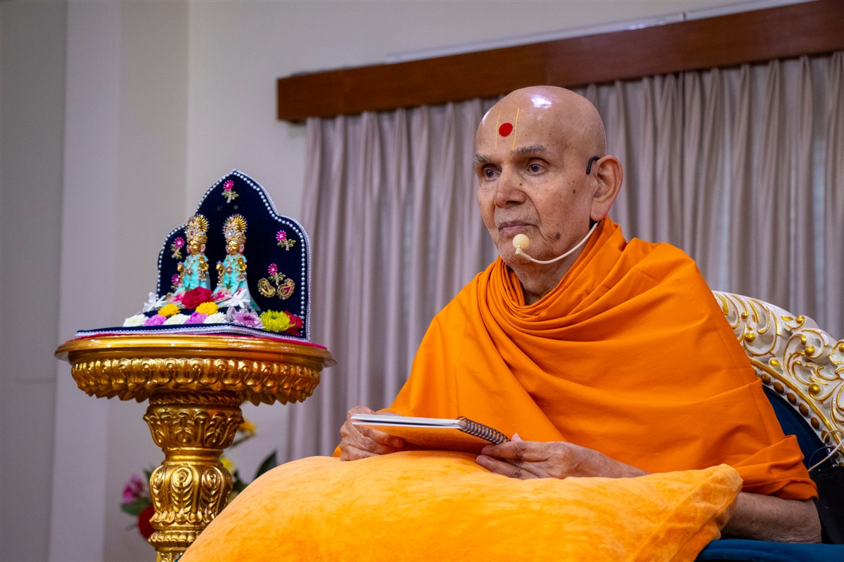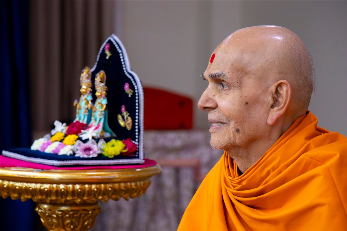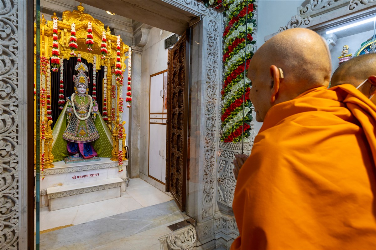 Swamishri engrossed in darshan of Shri Ghanshyam Maharaj