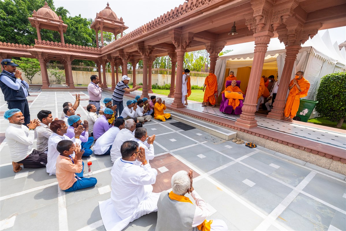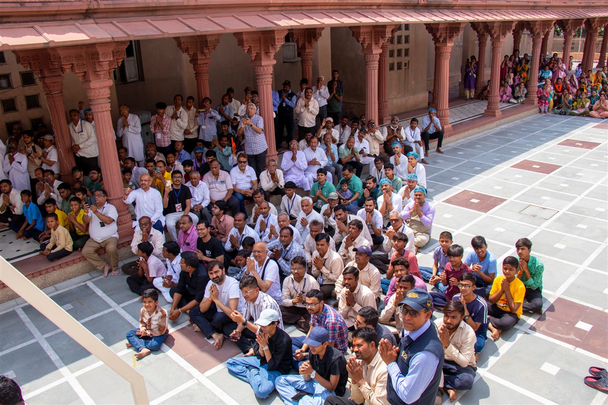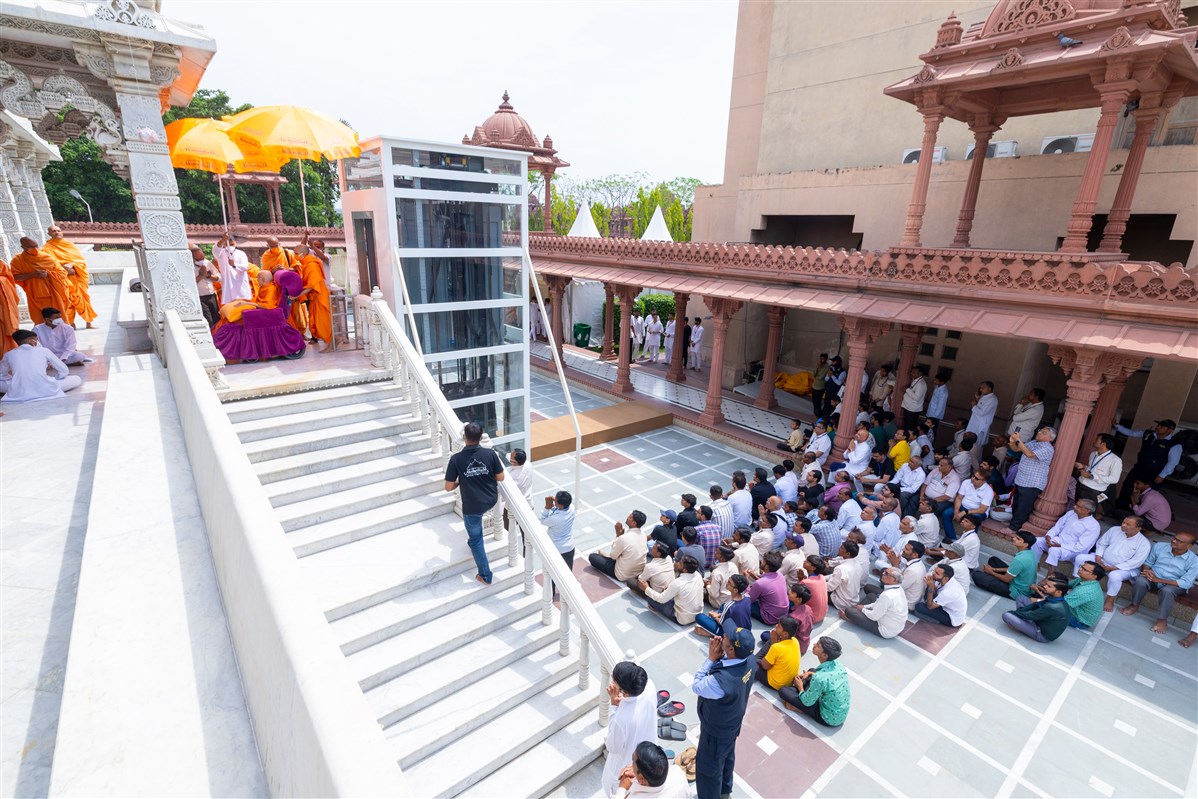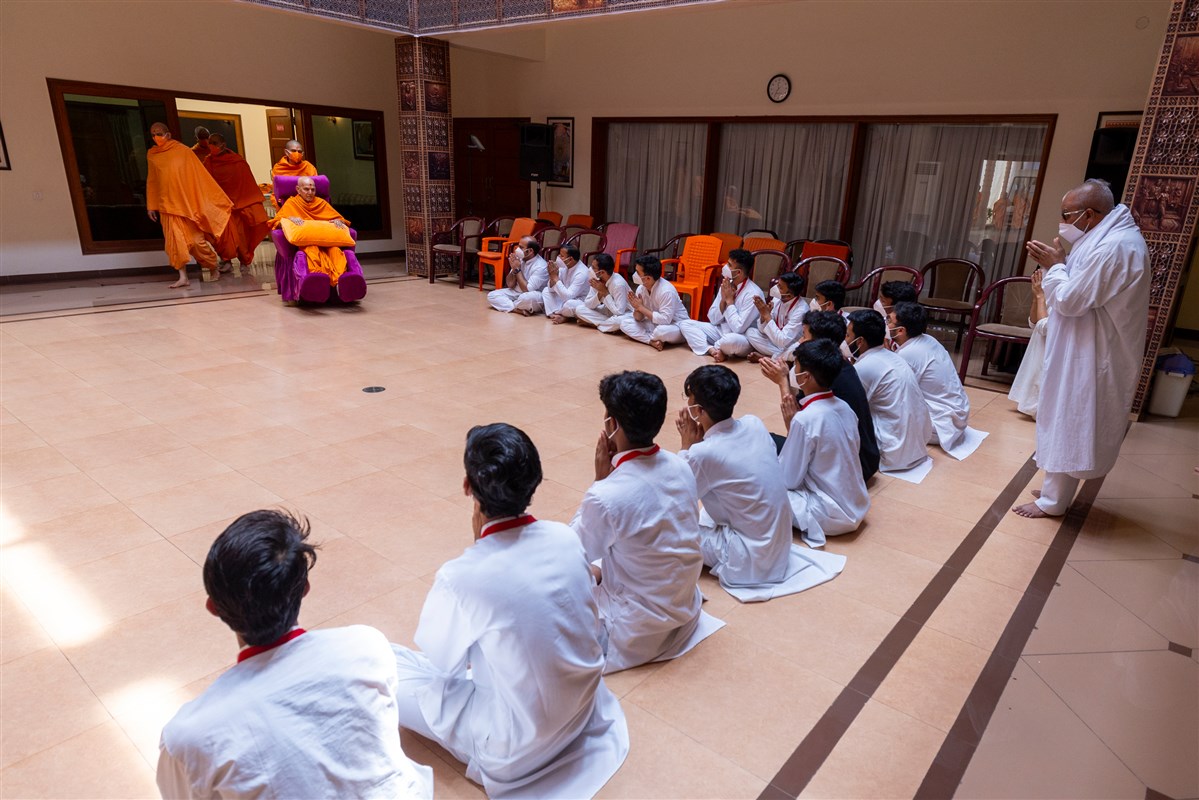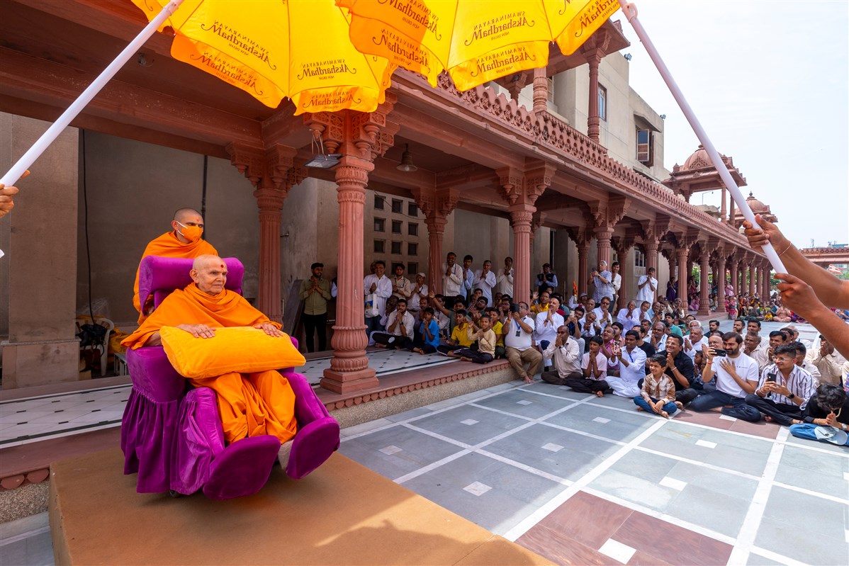 Swamishri arrives for darshan of Bhagwan Swaminarayan, Aksharbrahma Gunatitanand Swami