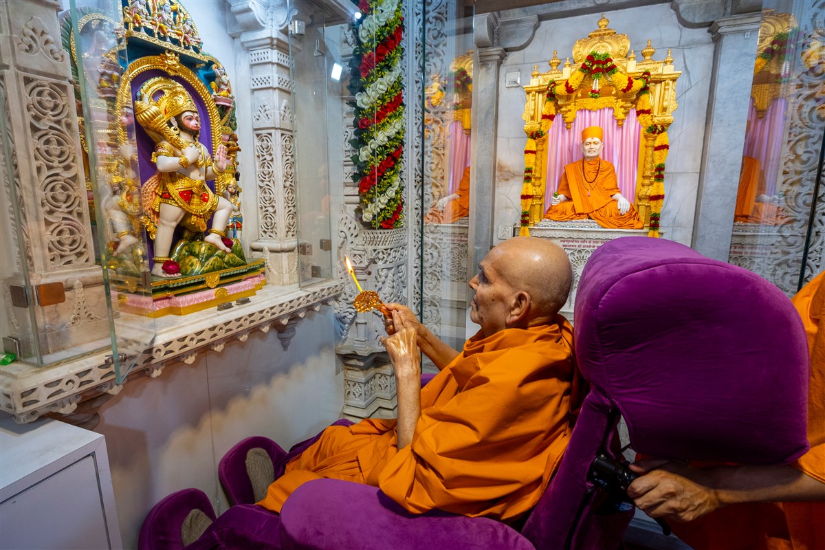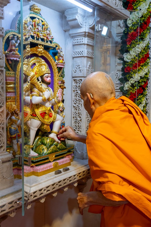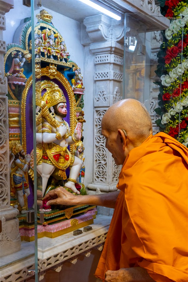 Swamishri performs pujan of Shri Hanumanji on Shri Hanuman Jayanti
