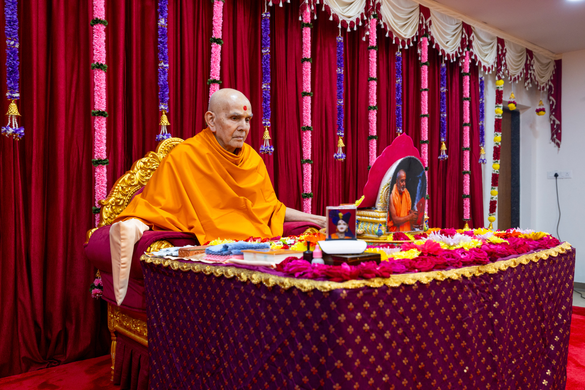 Swamishri arrives to perform pujan