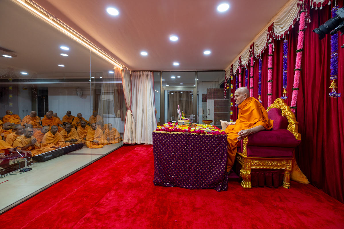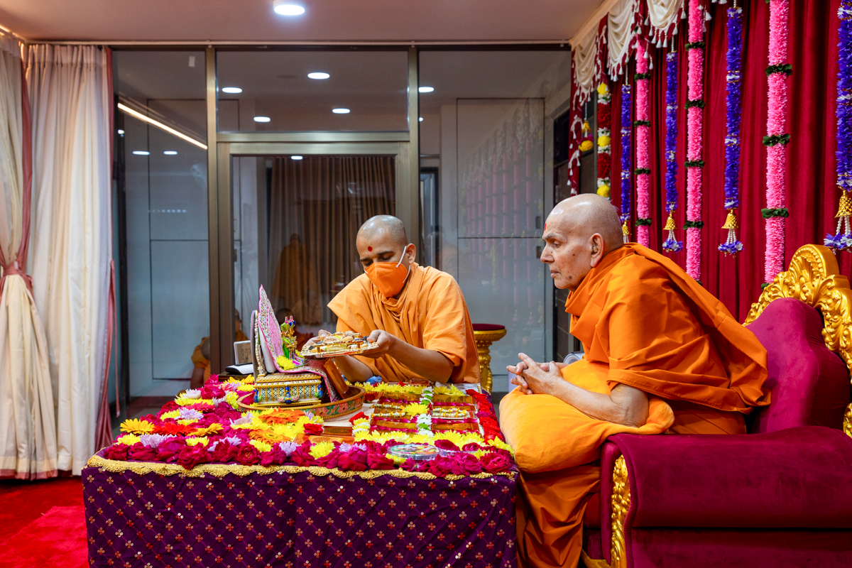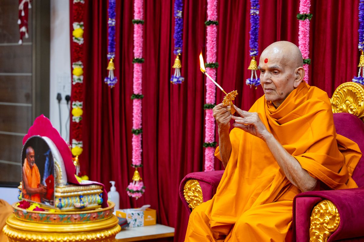 Swamishri performs the morning arti